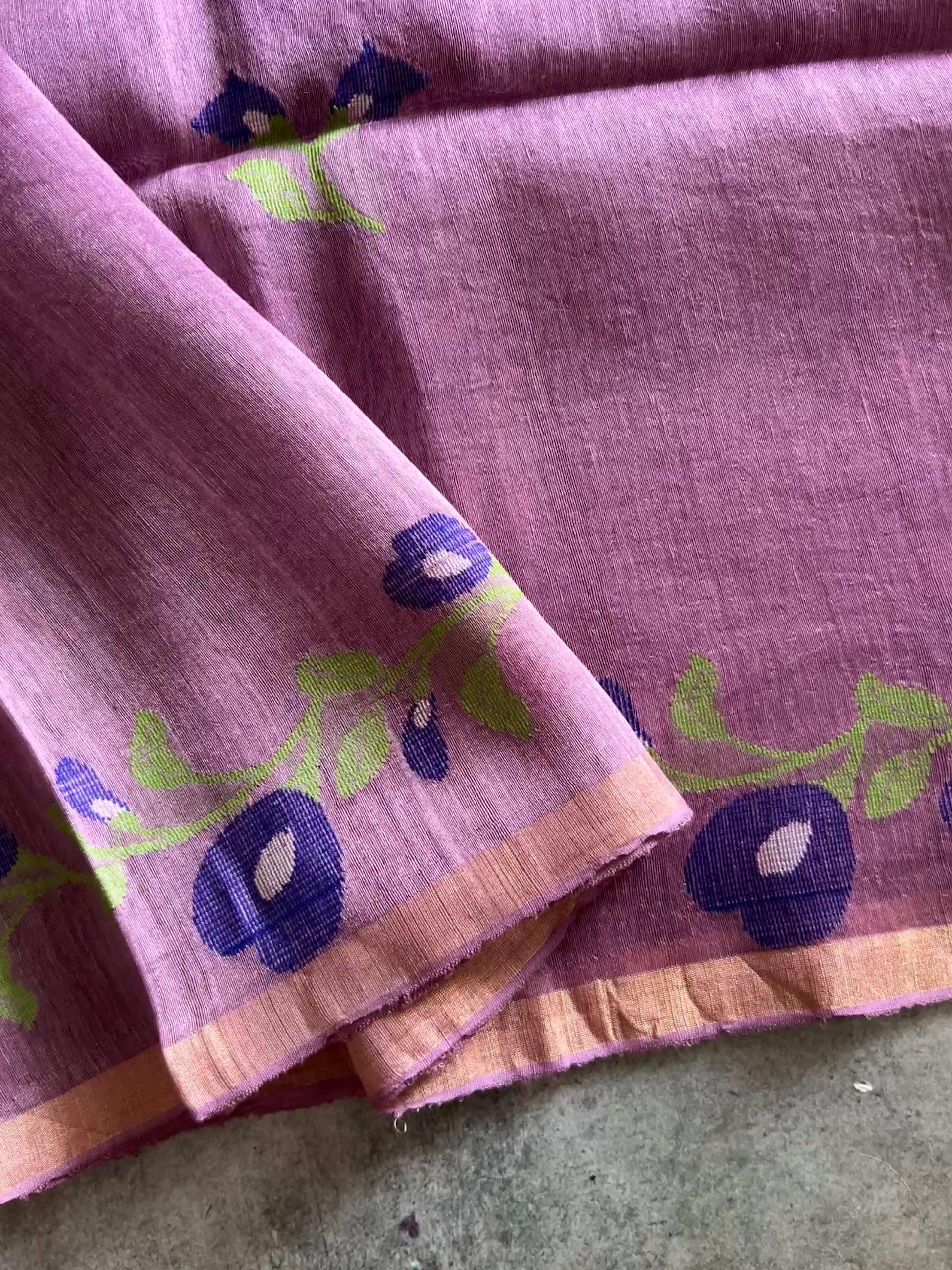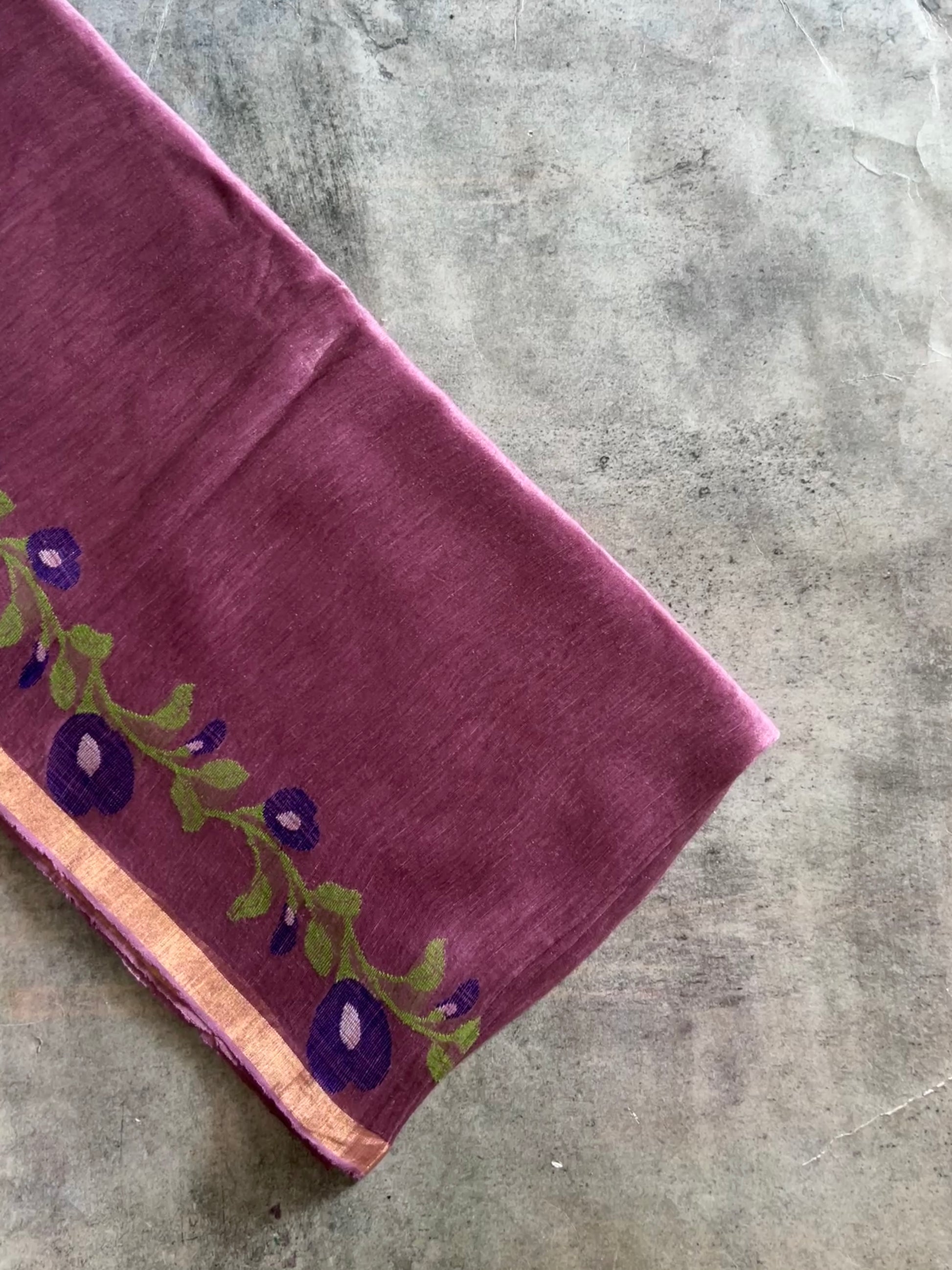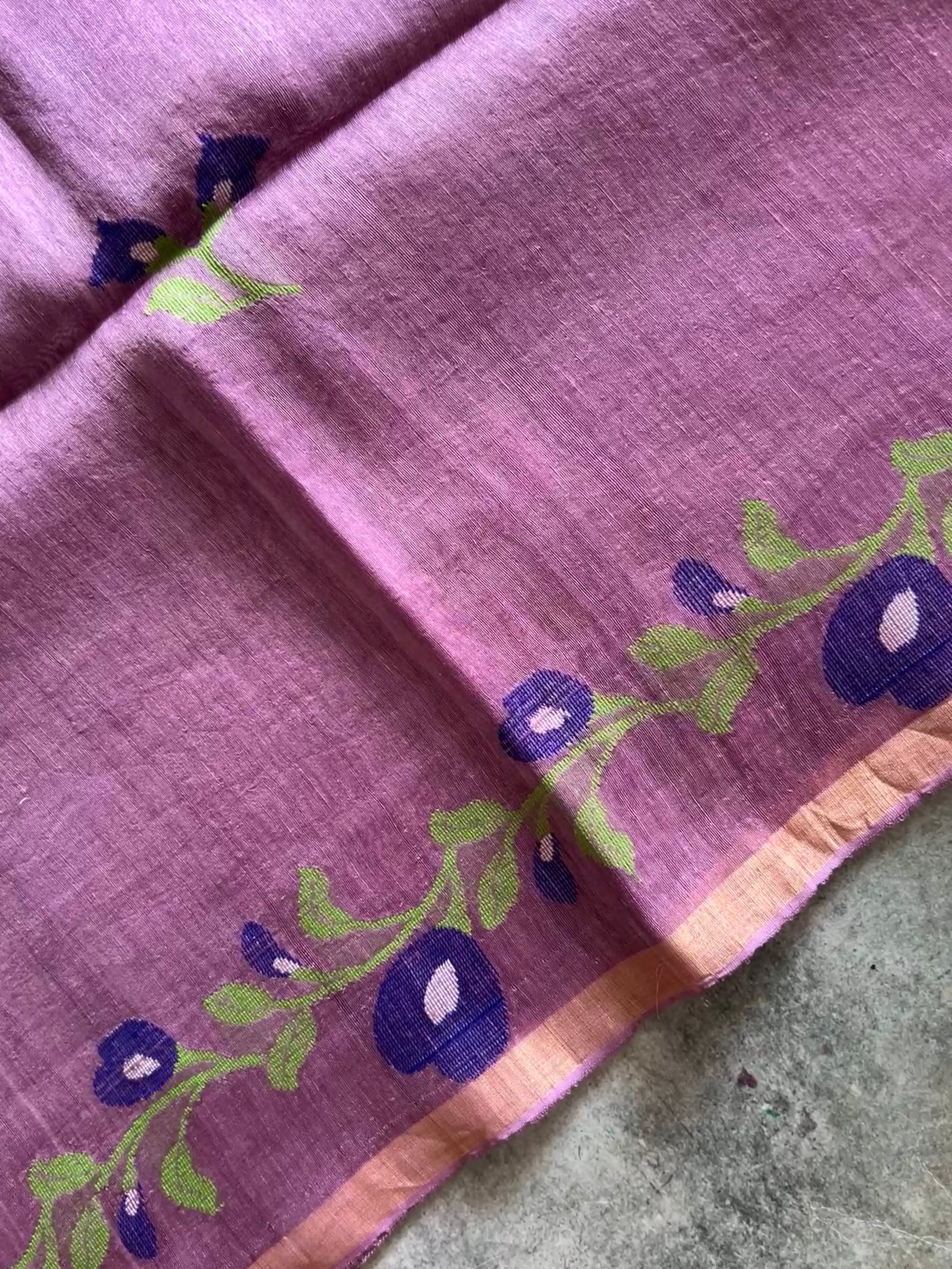 Pure linen silk adorned with Jamdhani weave is a true embodiment of elegance and tradition. The floral motifs delicately woven into the body lend a timeless charm, showcasing the artistry of handloom craftsmanship.Together, the blend of airy linen silk and intricate Jamdhani floral designs creates a piece that's both luxurious and effortlessly graceful.