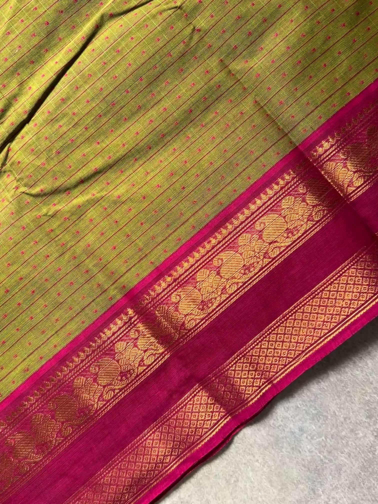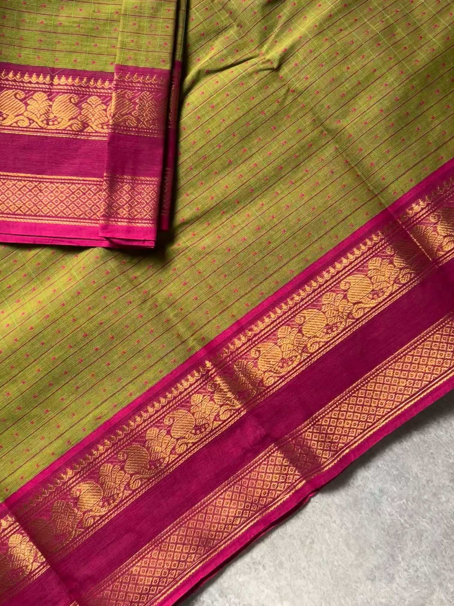 Chettinad cotton is a marvel of simplicity and elegance. Its beauty lies in its fine craftsmanship, intricate weaves, and vibrant colors that capture the essence of South Indian culture. The lightweight and breathable fabric not only exude grace but also offer comfort, making it perfect for the warm climates of the region. Each piece tells a story of tradition and heritage, reflecting the timeless allure of Chettinad cotton.
