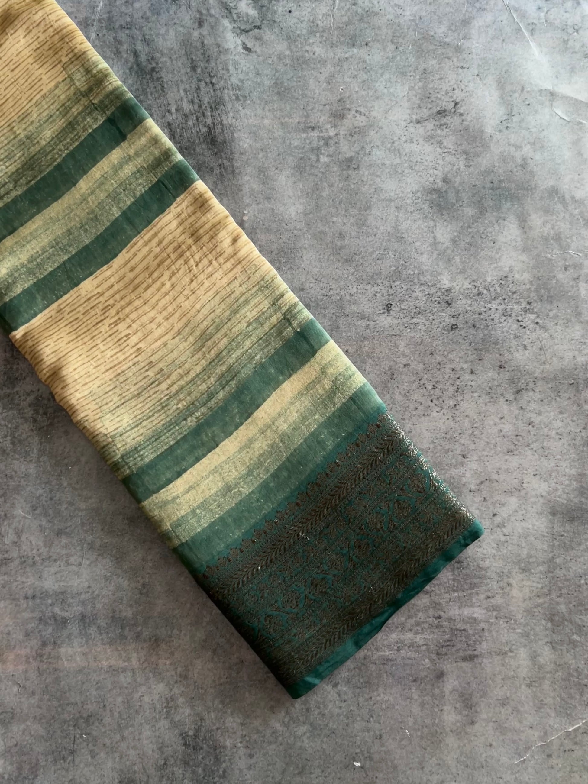 Chanderi butter silk epitomizes elegance and sophistication with its sheer, lightweight texture and natural sheen. This luxurious fabric seamlessly blends traditional charm with contemporary style, making it a timeless choice for any wardrobe. Its breathability and comfort further enhance its appeal, making Chanderi butter silk not just a fabric, but a work of art.