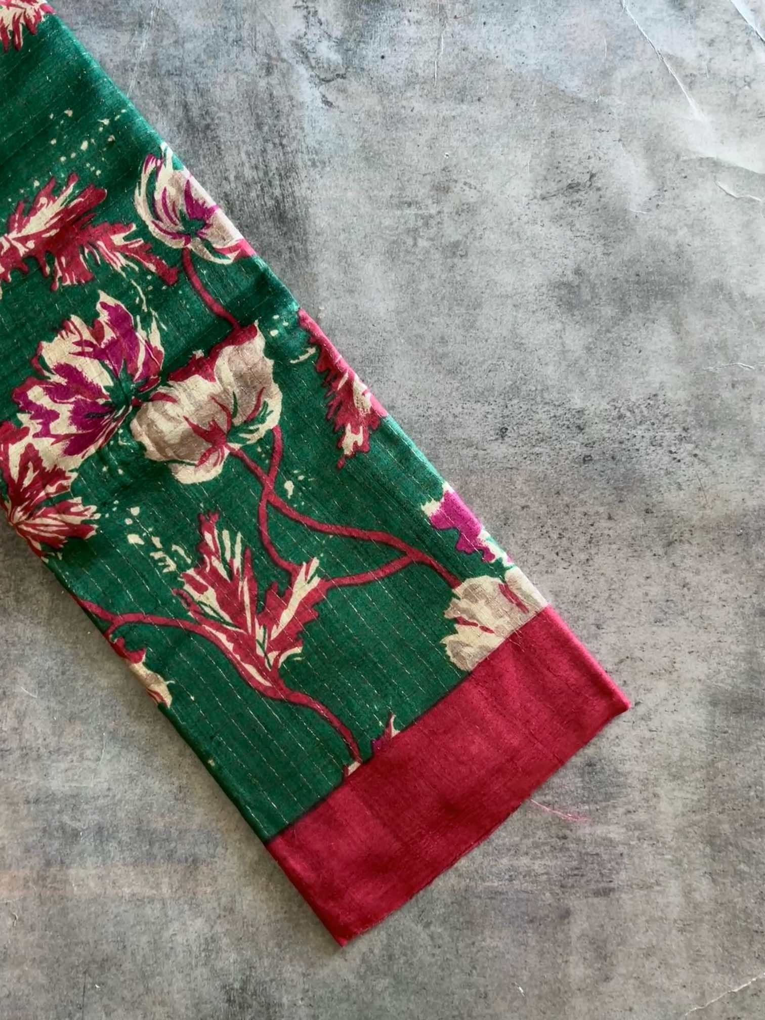 Tussar silk sarees are handwoven pieces of wonder getting you ethnified with the modern twist. This fabric shines on the outside and makes you cozy from the inside with its soft breathable nature. So, Ideal to keep yourself in your comfort zone at the long gatherings.