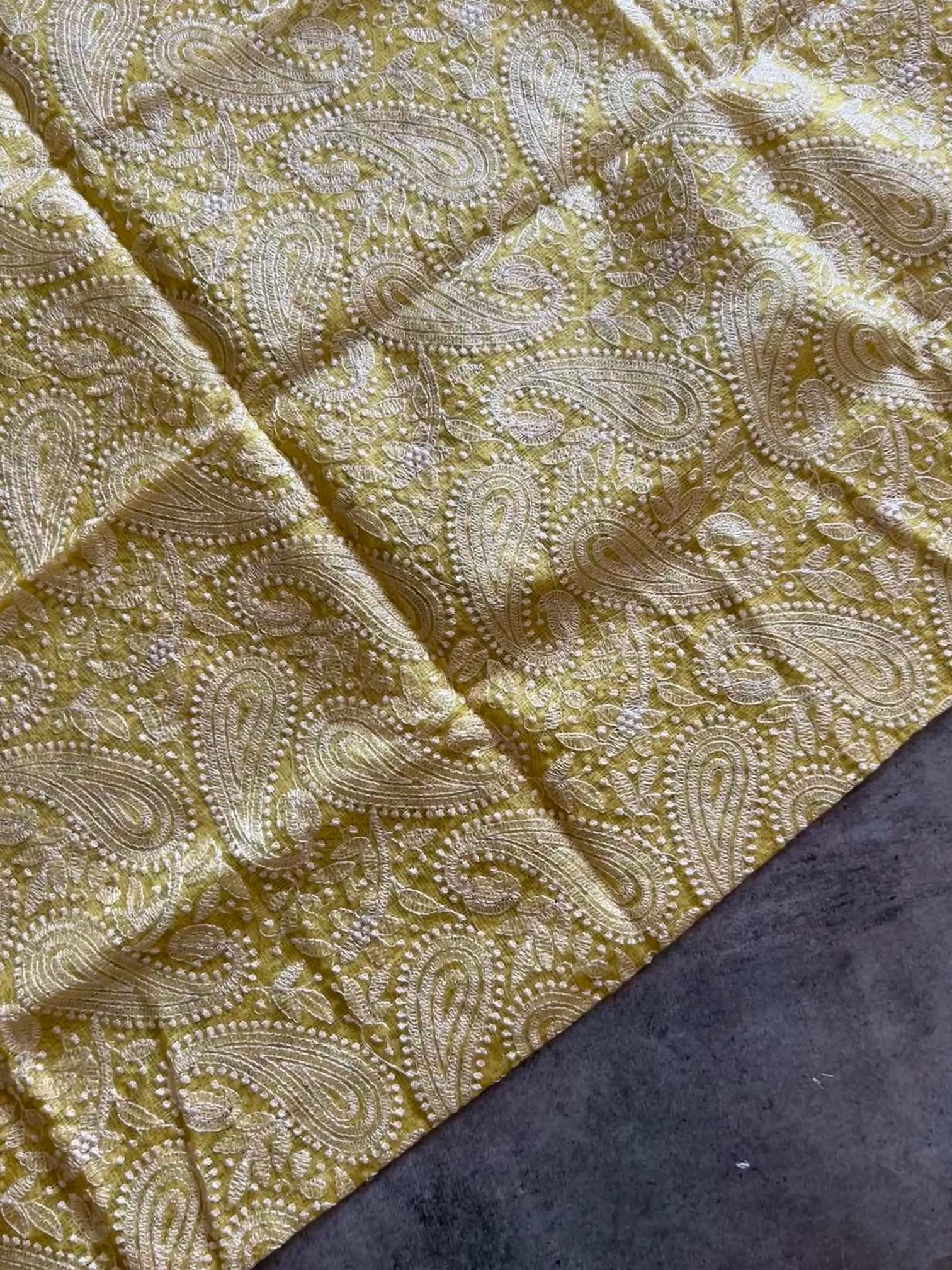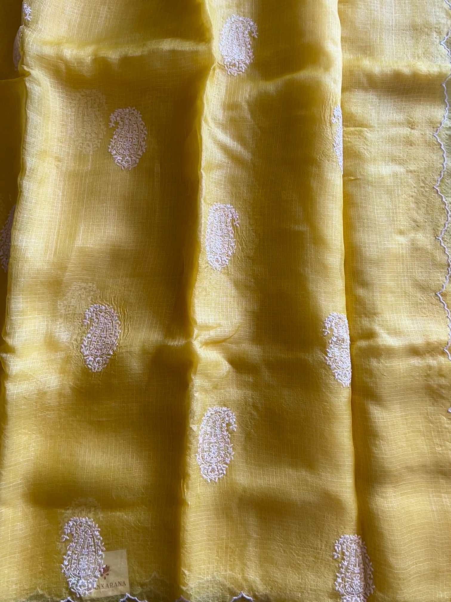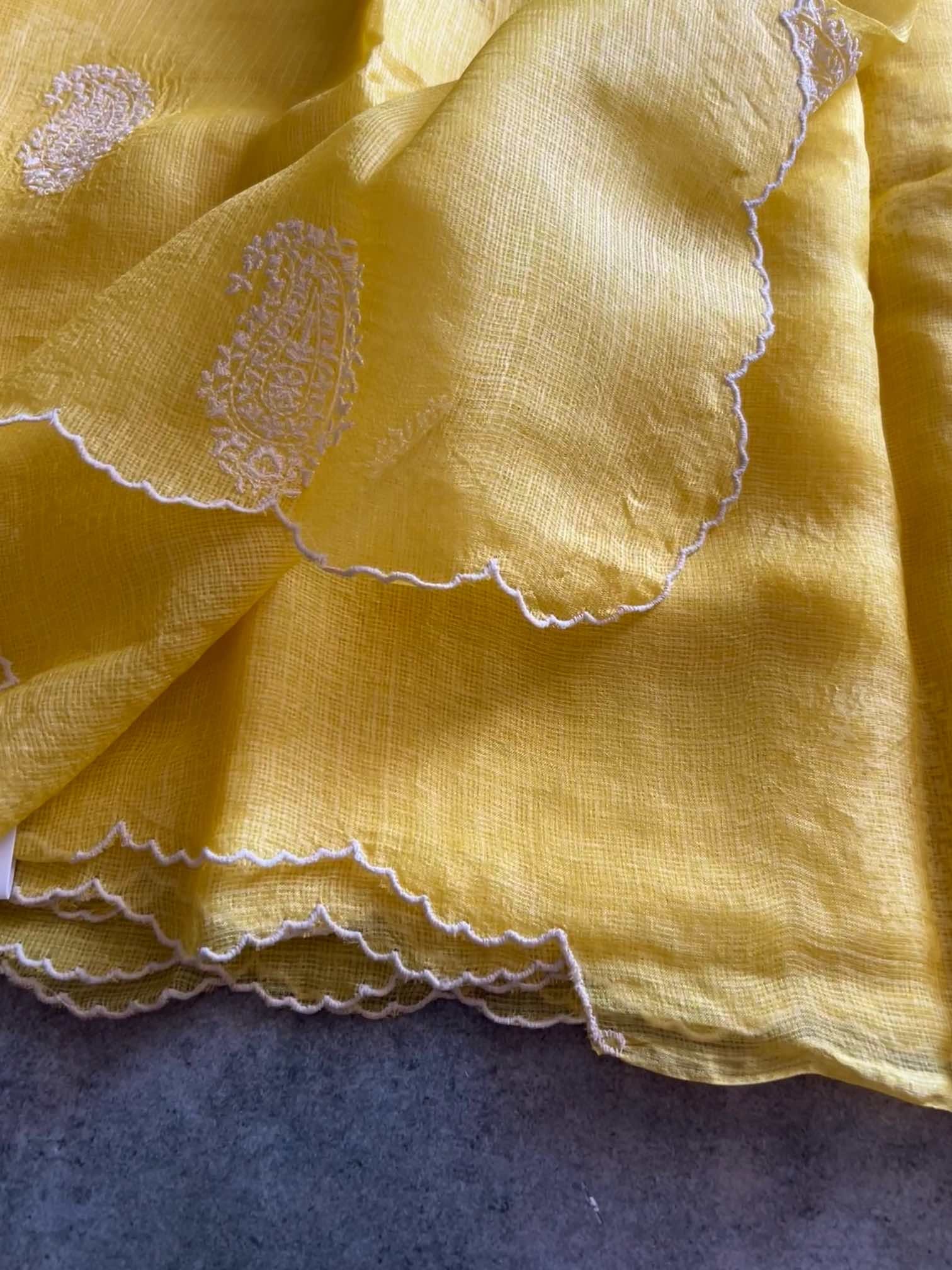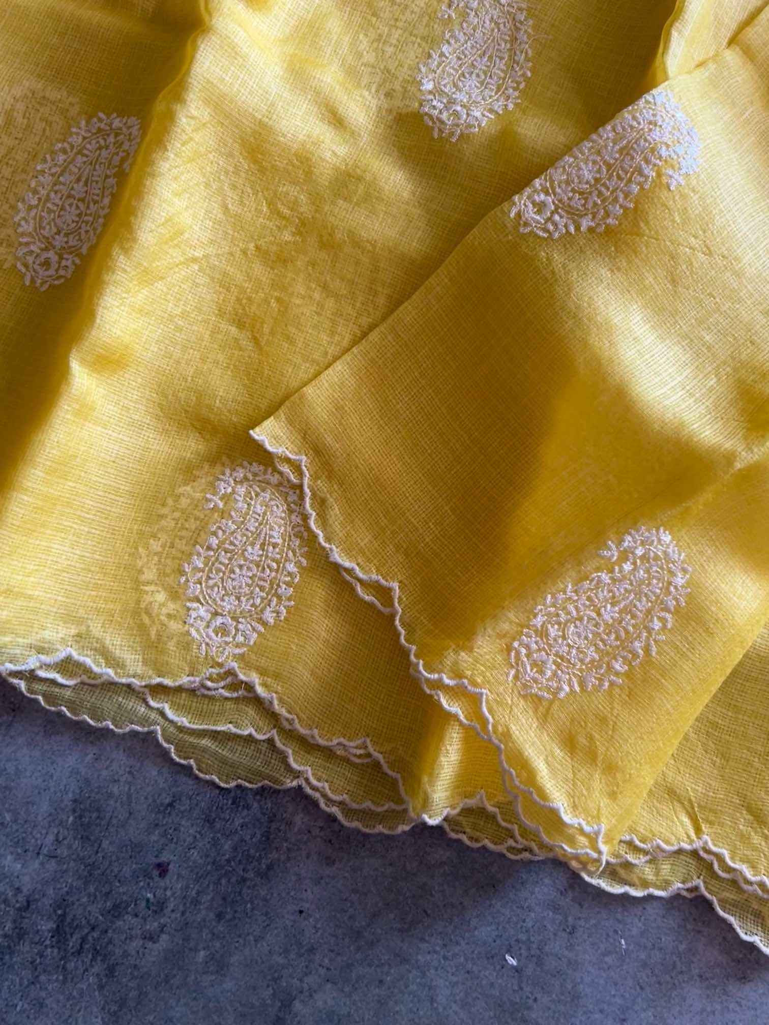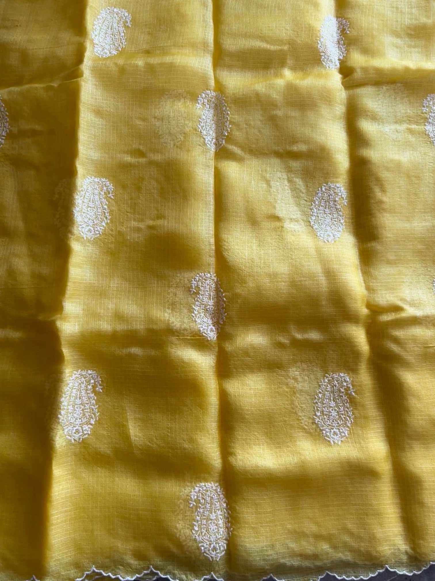 Tussar Kota with machine-embroidered mango buttas is a graceful fusion of tradition and modern craftsmanship. The natural sheen of tussar silk adds a rich, earthy elegance, while the lightweight Kota weave lends it an airy, delicate texture. The intricately embroidered mango buttas—symbolic of prosperity and heritage—bring a touch of timeless charm. This blend of refined fabric and subtle detailing makes it a perfect choice for both understated elegance and festive allure.