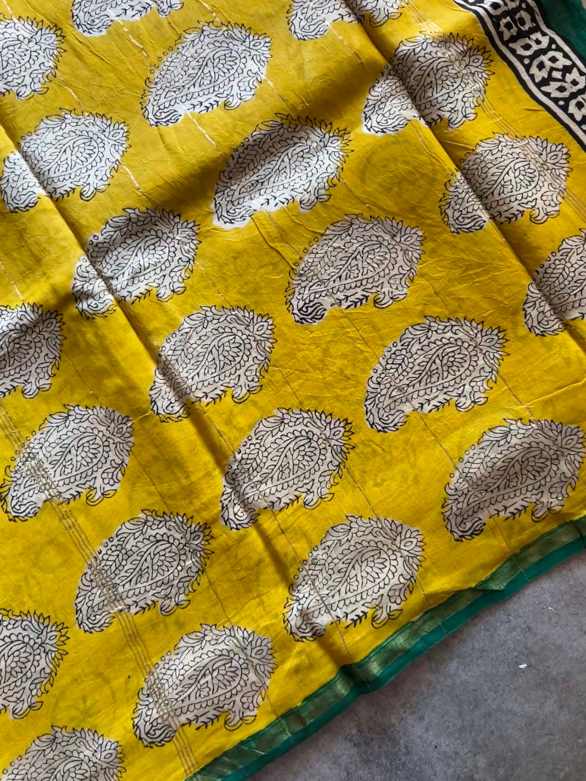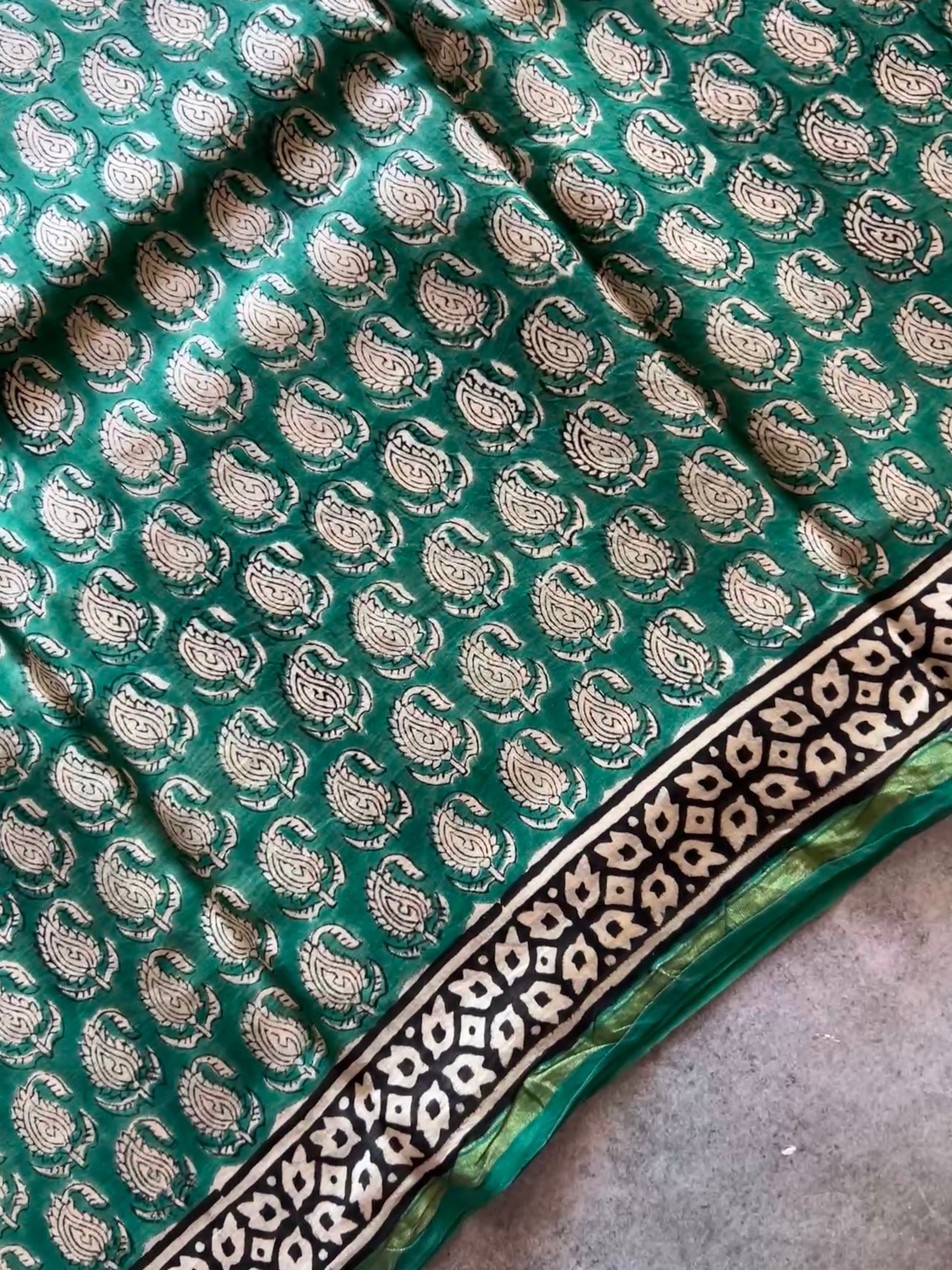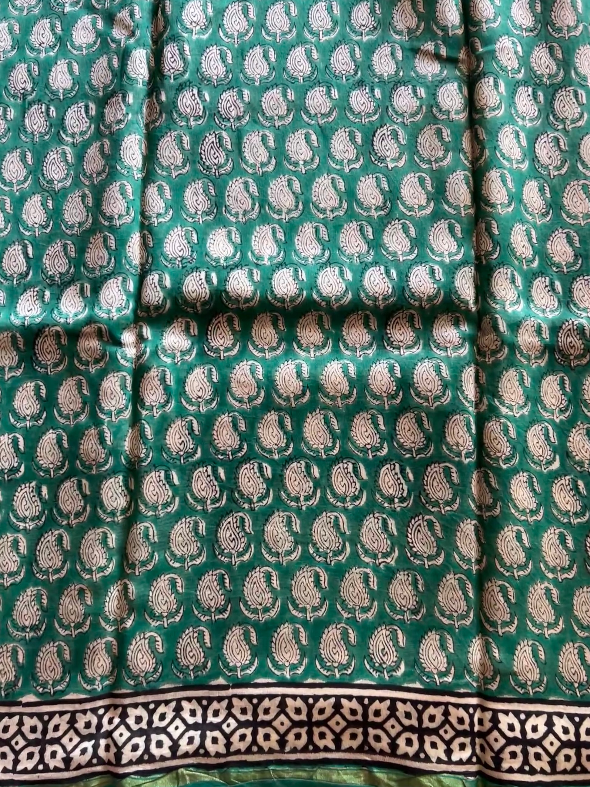 Elegant and classy hand block printed chandheri cotton silk saree. These exquisite pieces are very comfortable to wear and feel extremely soft and classy when draped.