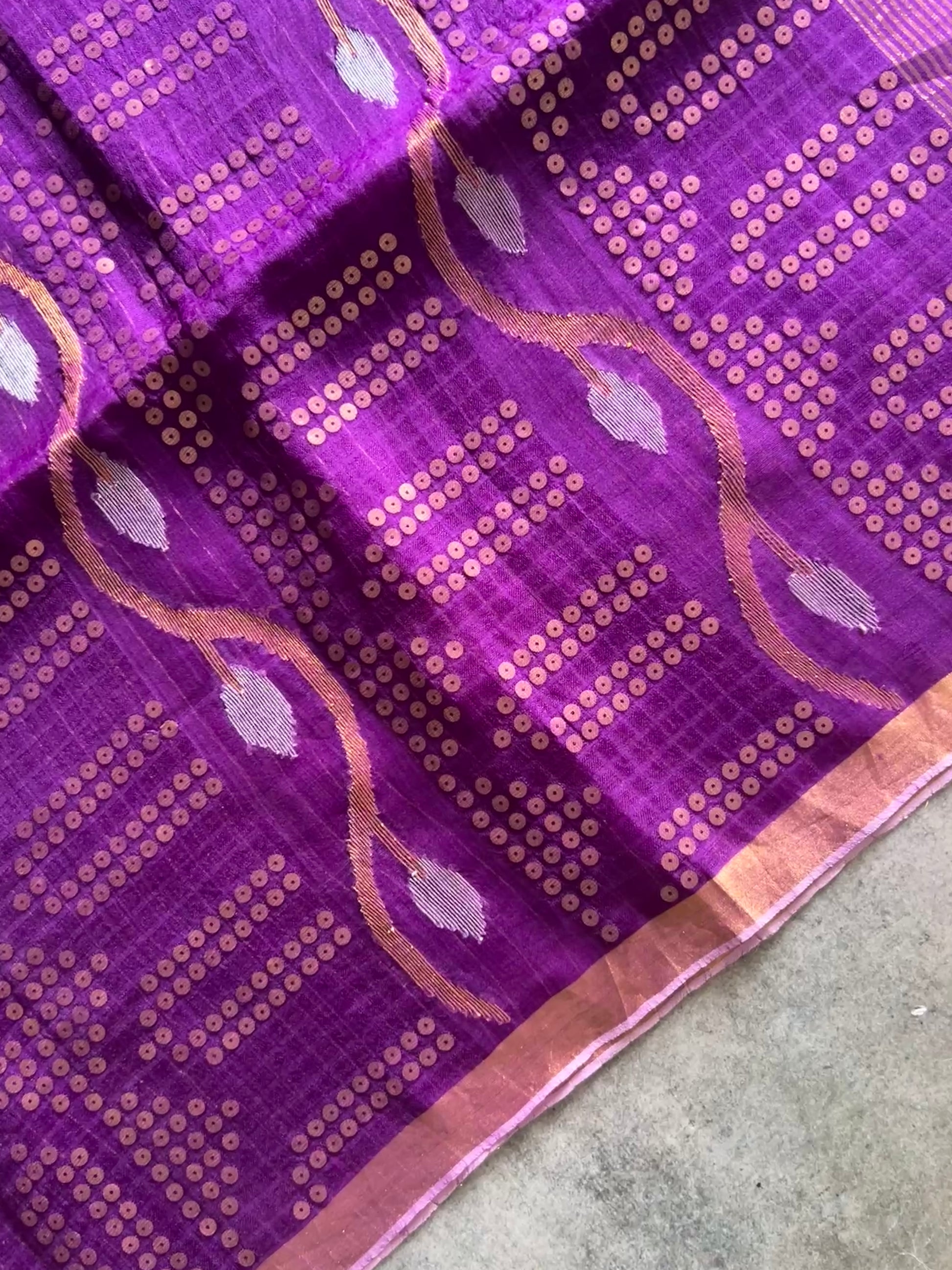 The muslin silk saree is a timeless expression of elegance, and when adorned with Gini work on the border and pallu, it exudes a subtle yet luxurious charm. The delicate shimmer of Gini highlights adds a touch of opulence, perfectly complementing the soft, airy texture of muslin silk. The Jamdhani creeper weave on the pallu adds depth and heritage, weaving in stories through its intricate patterns.