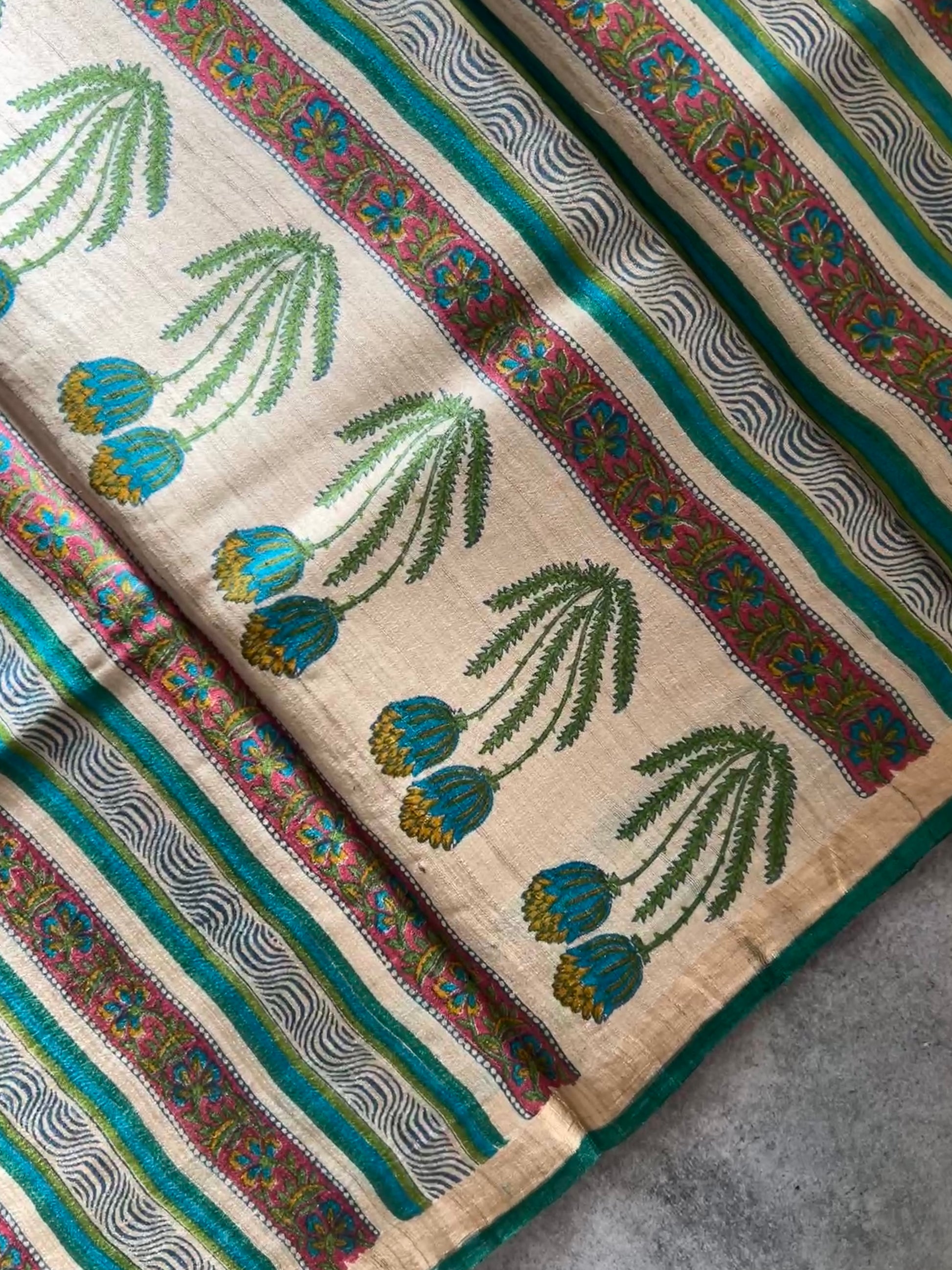 Tussar silk sarees are handwoven pieces of wonder getting you ethnified with the modern twist. This fabric shines on the outside and makes you cozy from the inside with its soft breathable nature. So, Ideal to keep yourself in your comfort zone at the long gatherings.