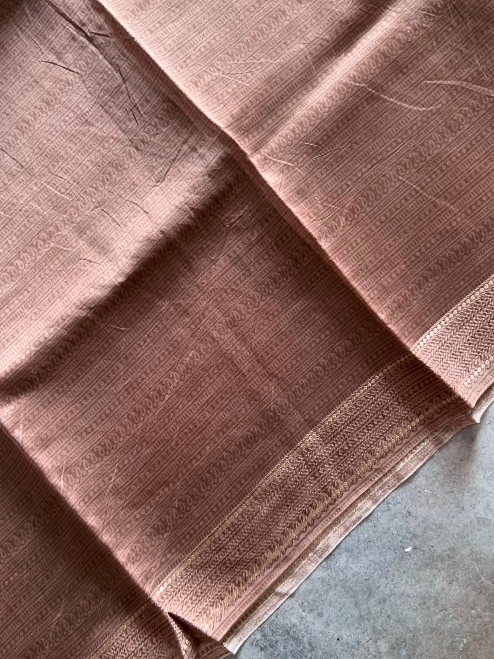 Chanderi butter silk epitomizes elegance and sophistication with its sheer, lightweight texture and natural sheen. This luxurious fabric seamlessly blends traditional charm with contemporary style, making it a timeless choice for any wardrobe. Its breathability and comfort further enhance its appeal, making Chanderi butter silk not just a fabric, but a work of art.