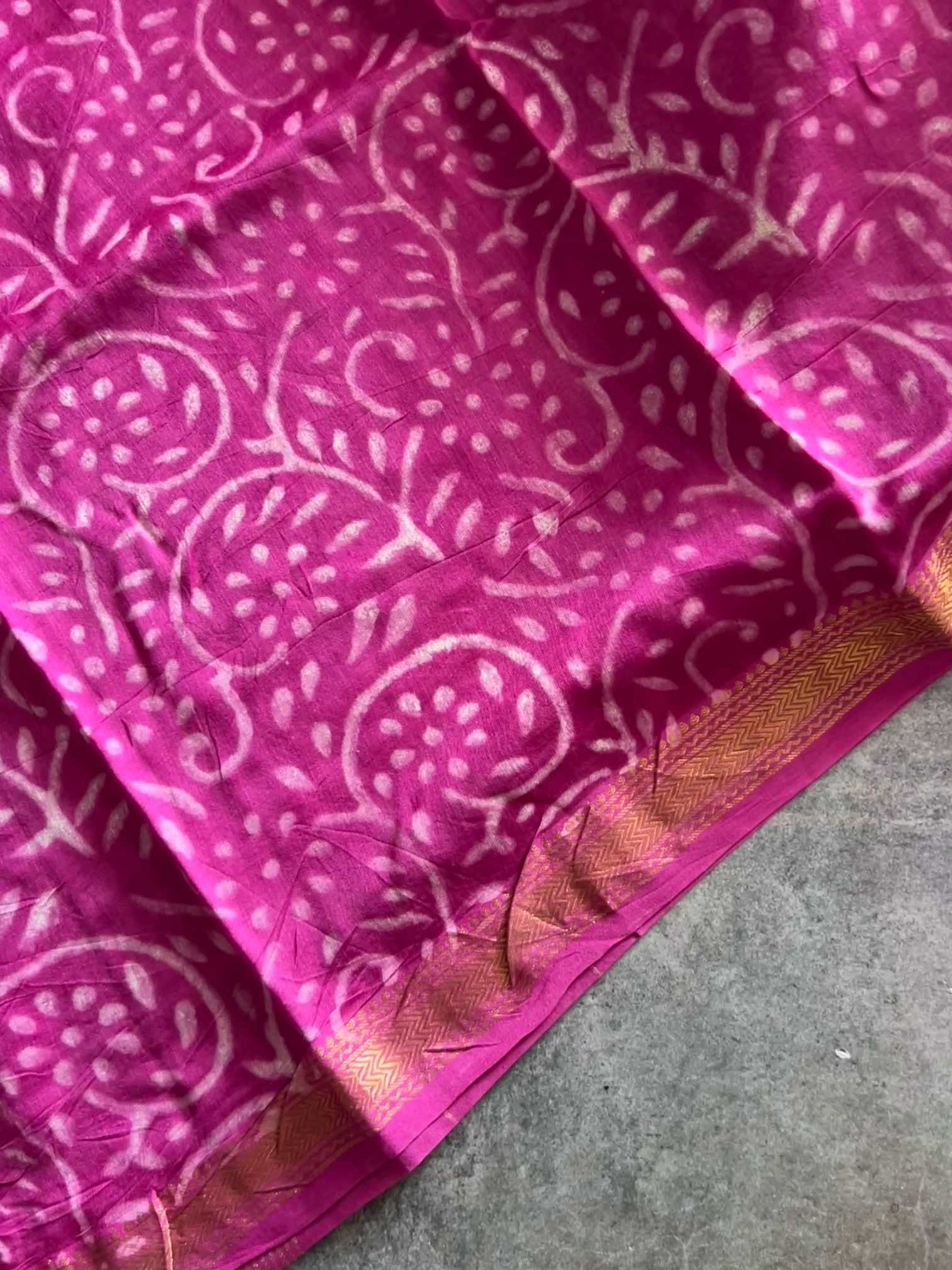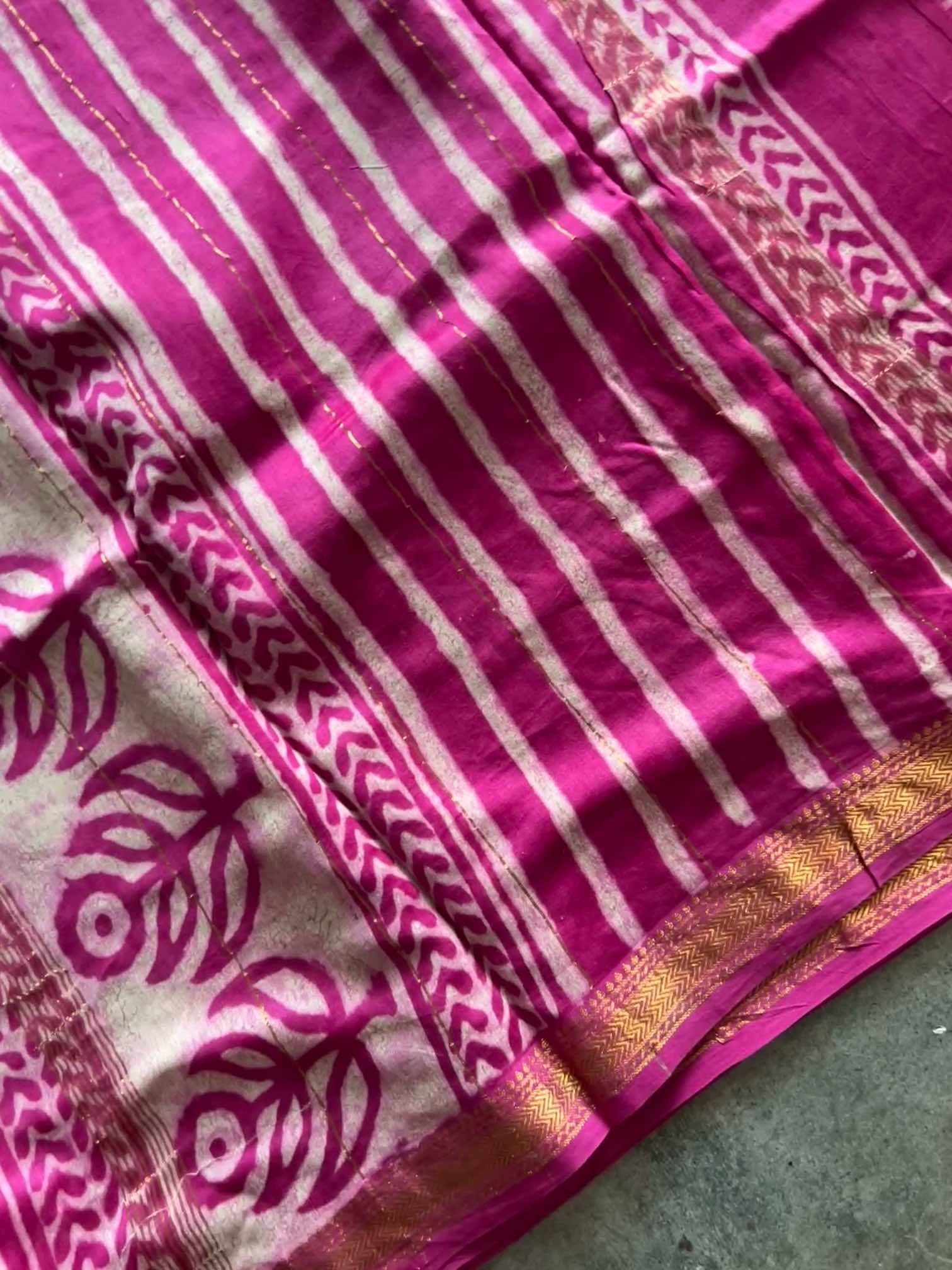 Elegant and classy handblock printed maheswari cotton silk saree. These exquisite pieces are very comfortable to wear and feels extremely soft and classy when draped.