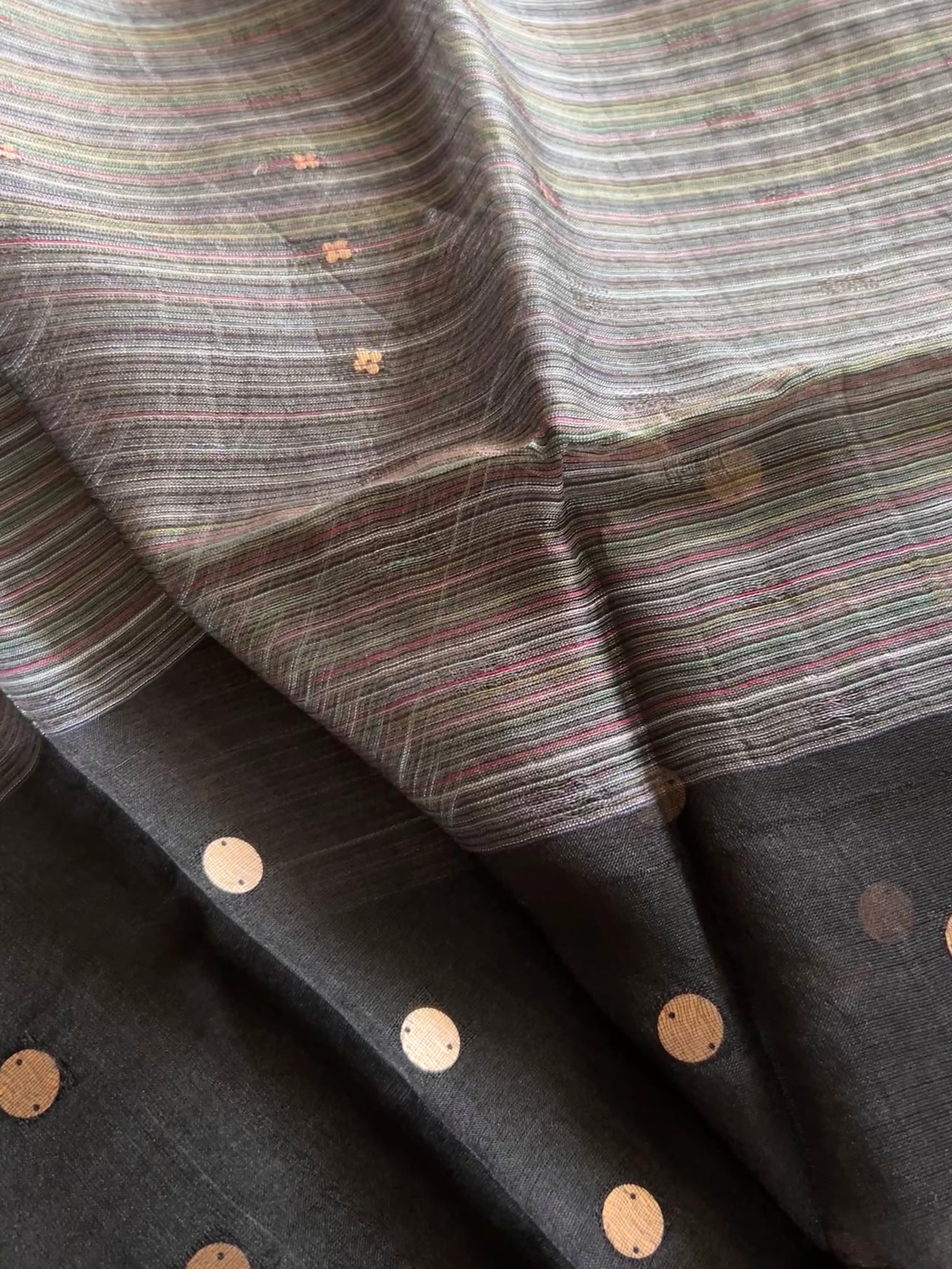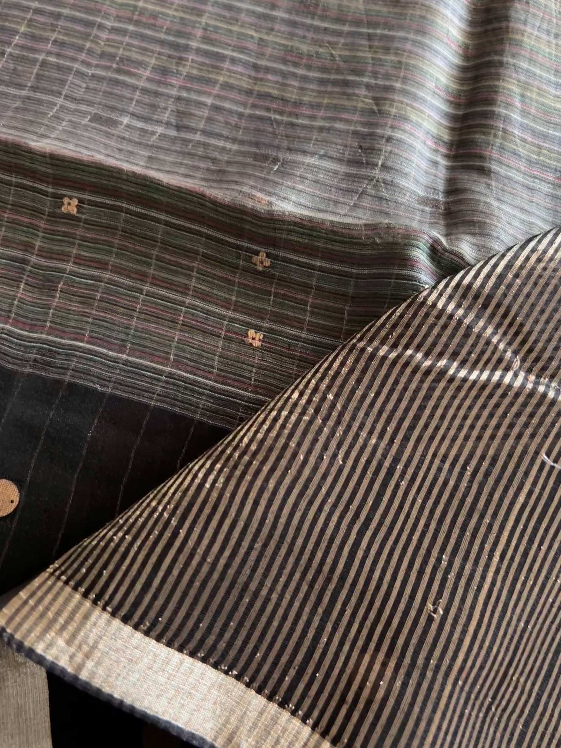 The Kora saree, renowned for its understated elegance, is crafted from a delicate, sheer fabric that exudes sophistication. Its translucent texture, often adorned with intricate embroidery or subtle embellishments, highlights a timeless grace. The saree's lightness and drape make it perfect for both traditional and contemporary occasions, allowing for a seamless blend of tradition and modernity.