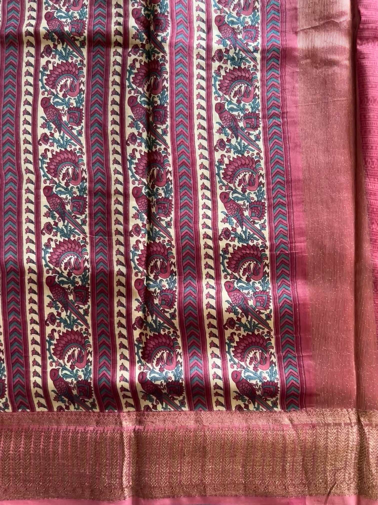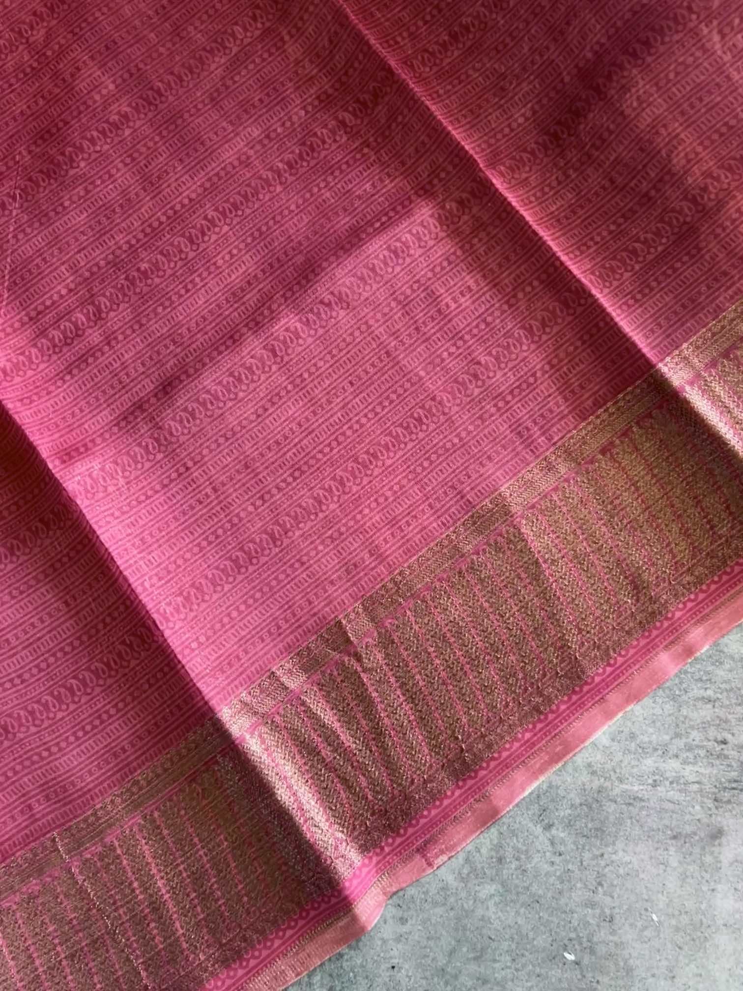 Chanderi butter silk epitomizes elegance and sophistication with its sheer, lightweight texture and natural sheen. This luxurious fabric seamlessly blends traditional charm with contemporary style, making it a timeless choice for any wardrobe. Its breathability and comfort further enhance its appeal, making Chanderi butter silk not just a fabric, but a work of art.