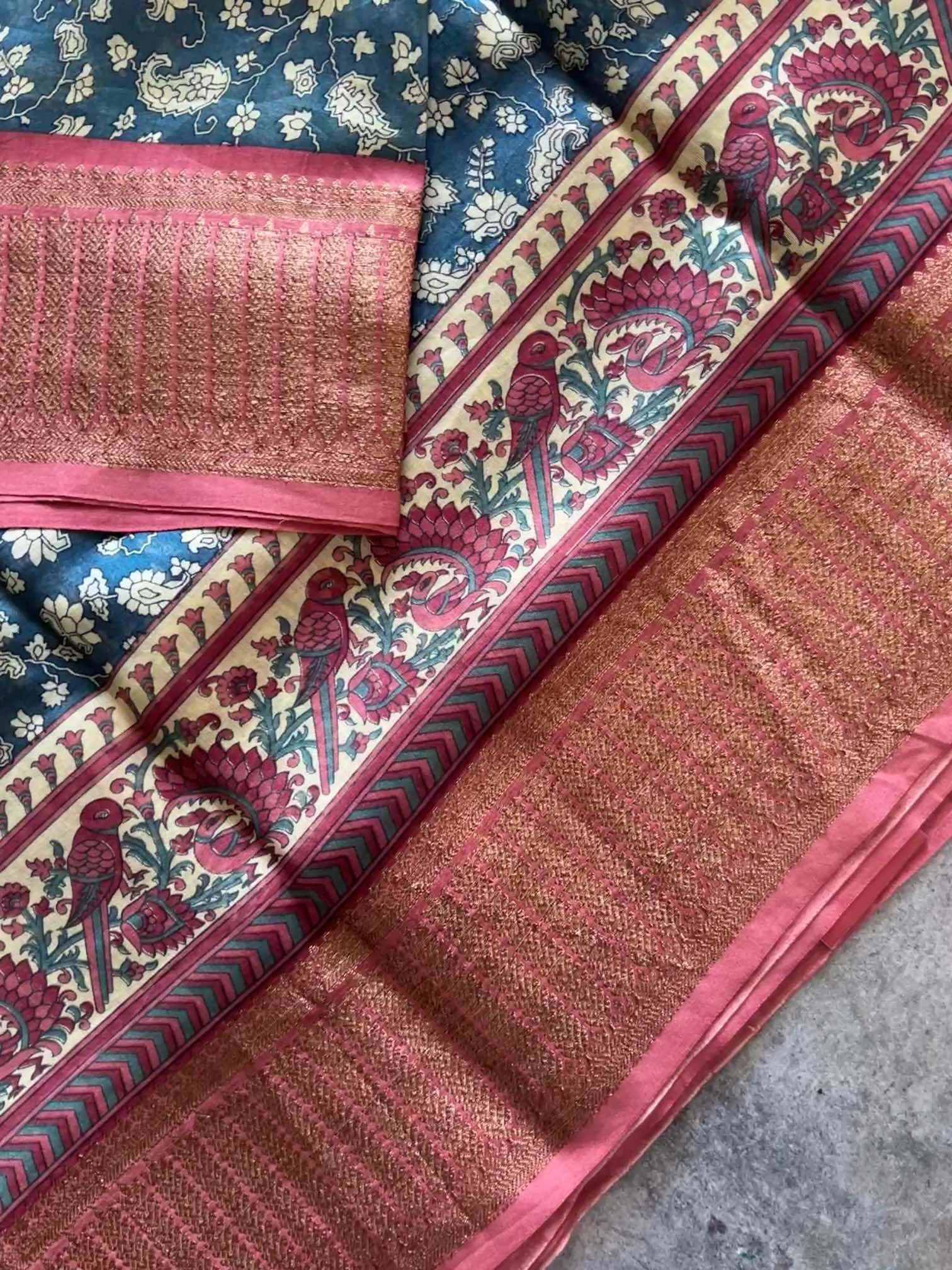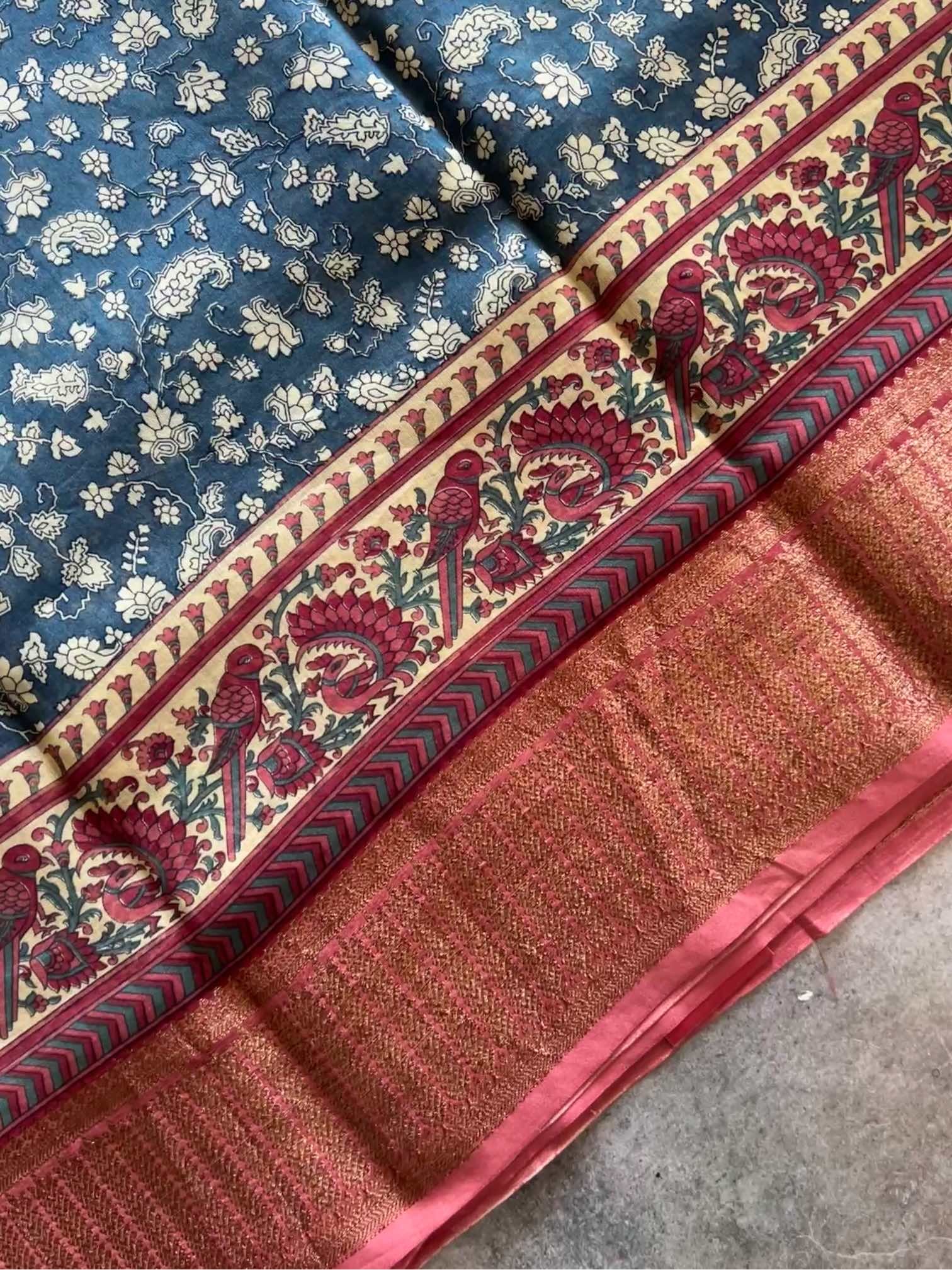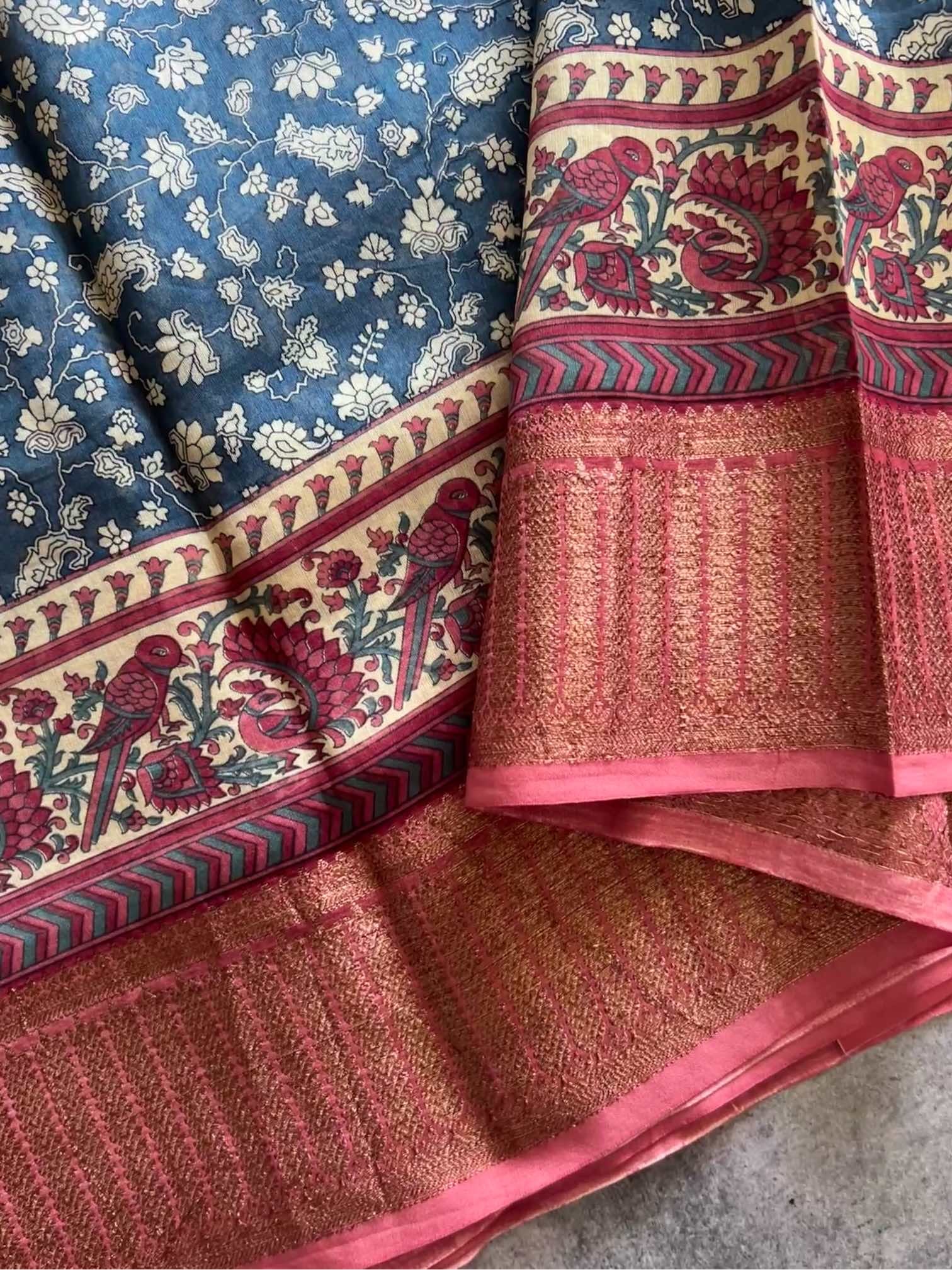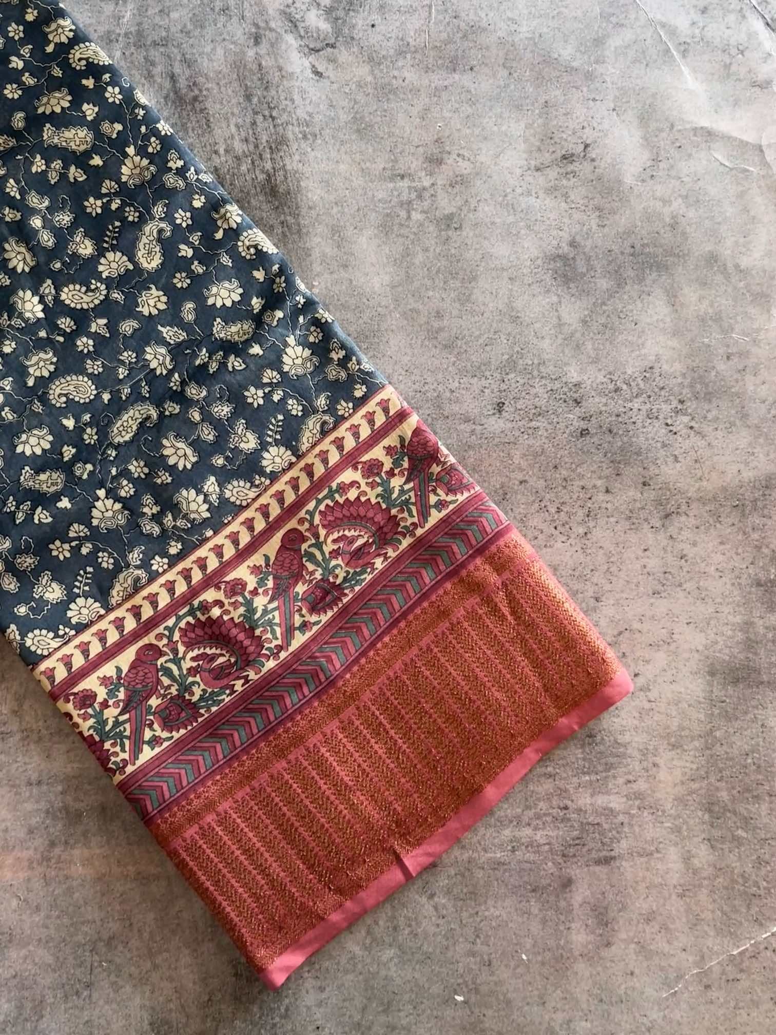 Blouse Piece : Comes with a contrast blouse piece of 80 cms