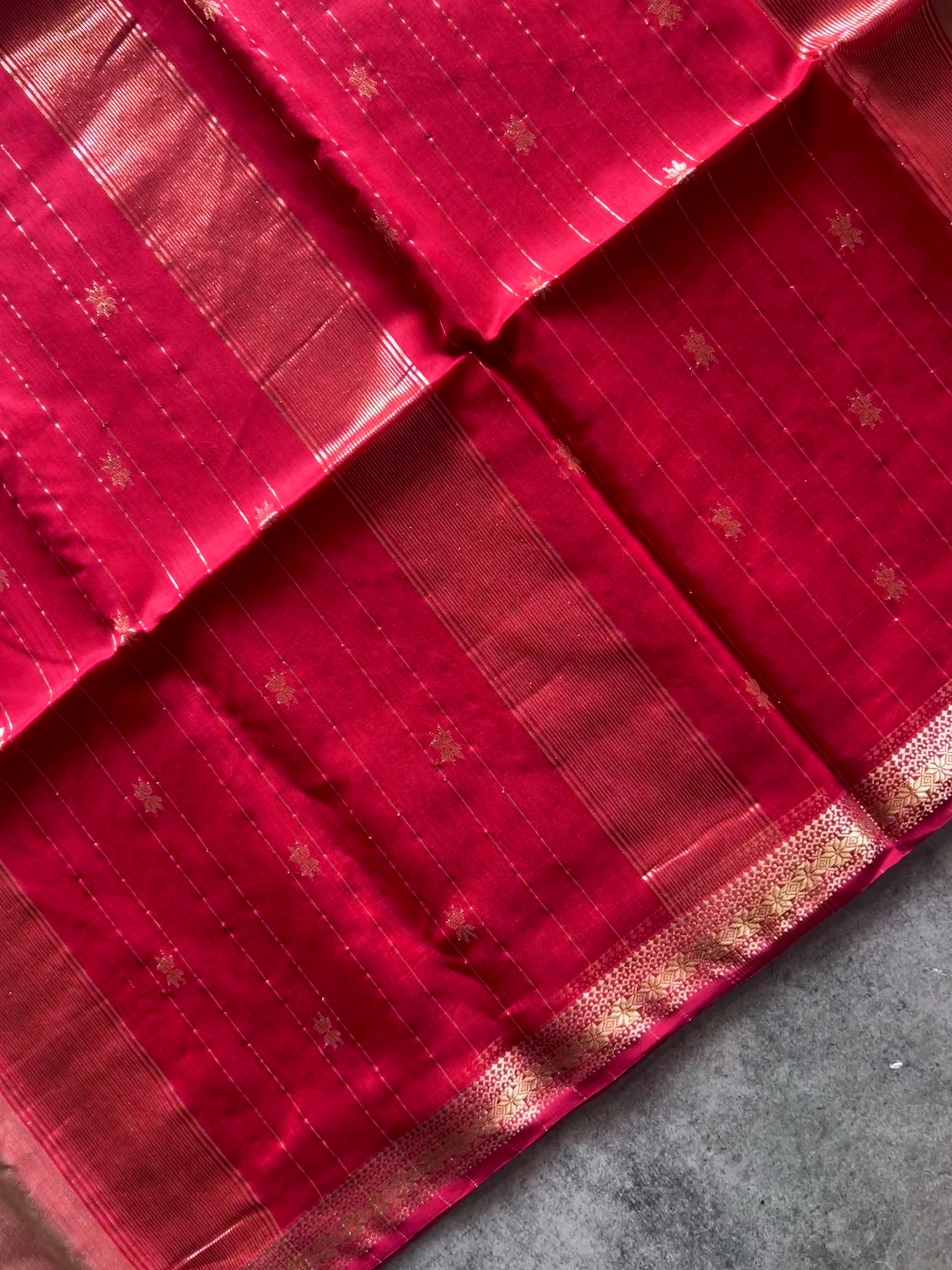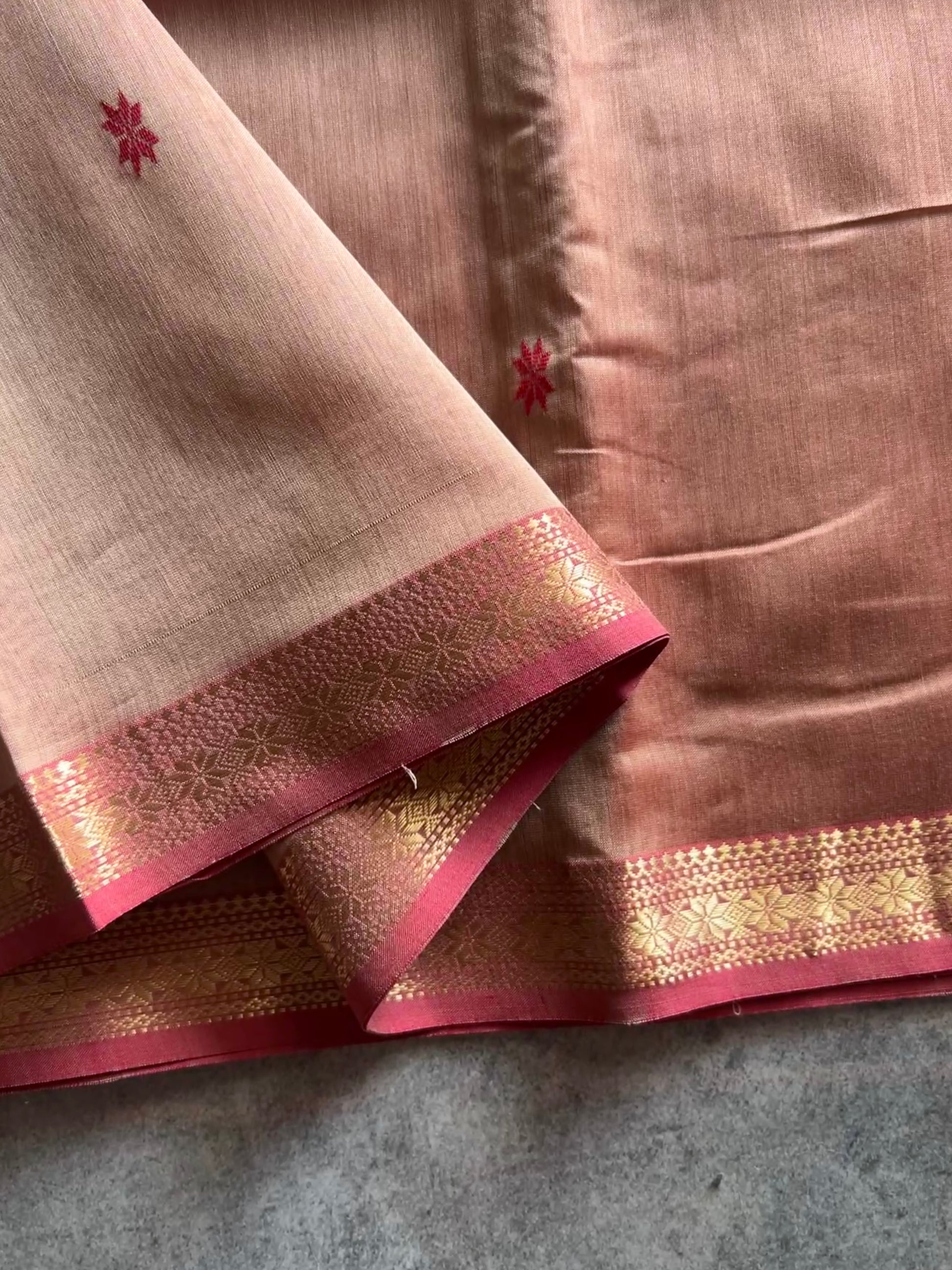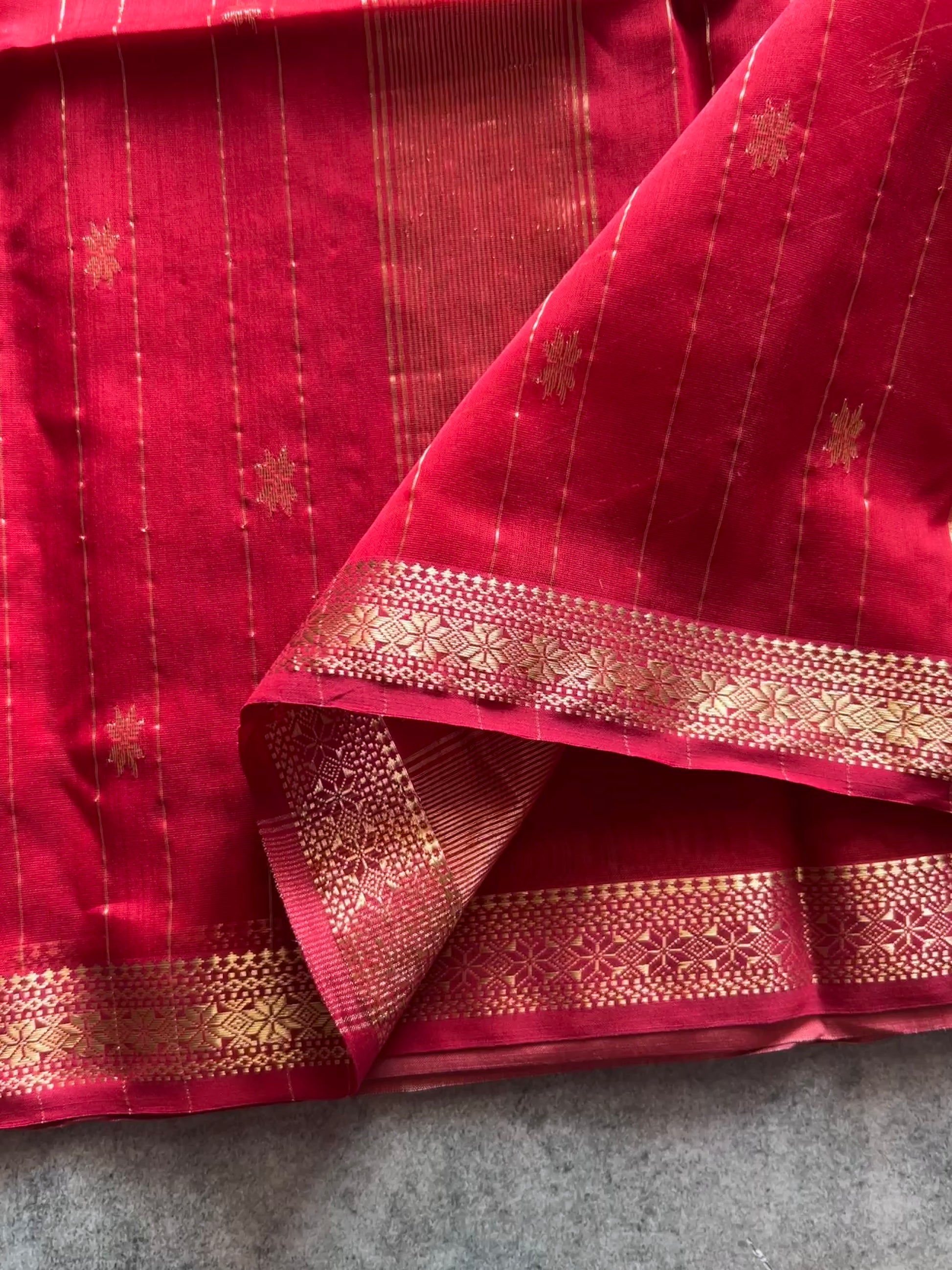 Maheswari silk cotton is known for its exquisite blend of elegance and comfort. The silk adds a luxurious sheen and drape, while the cotton provides breathability and softness. The border, often intricately woven with metallic threads, adds a touch of opulence and sophistication. This blend creates a visually striking and versatile textile that balances traditional charm with modern sensibility, making it ideal for both festive occasions and refined everyday wear.