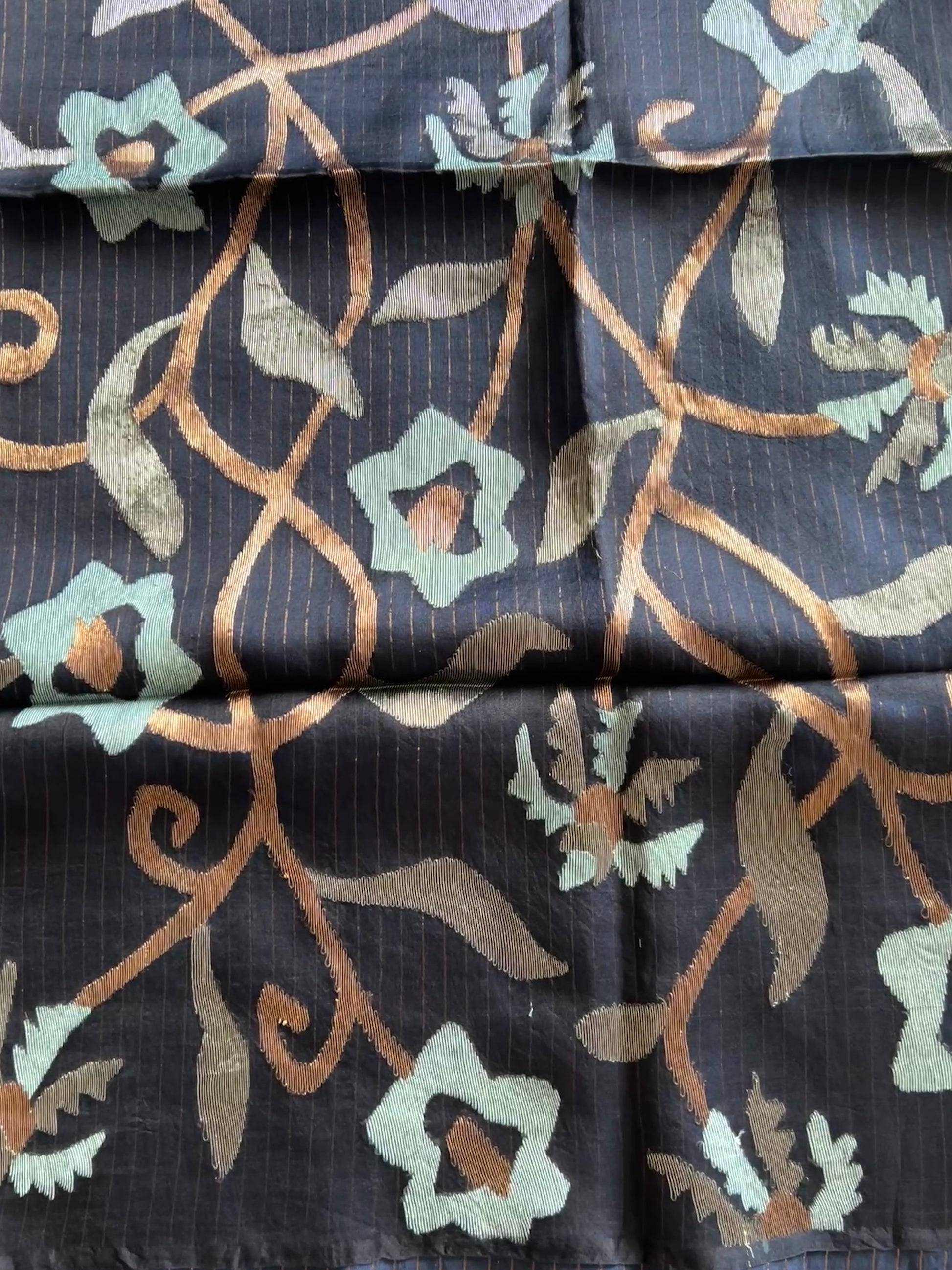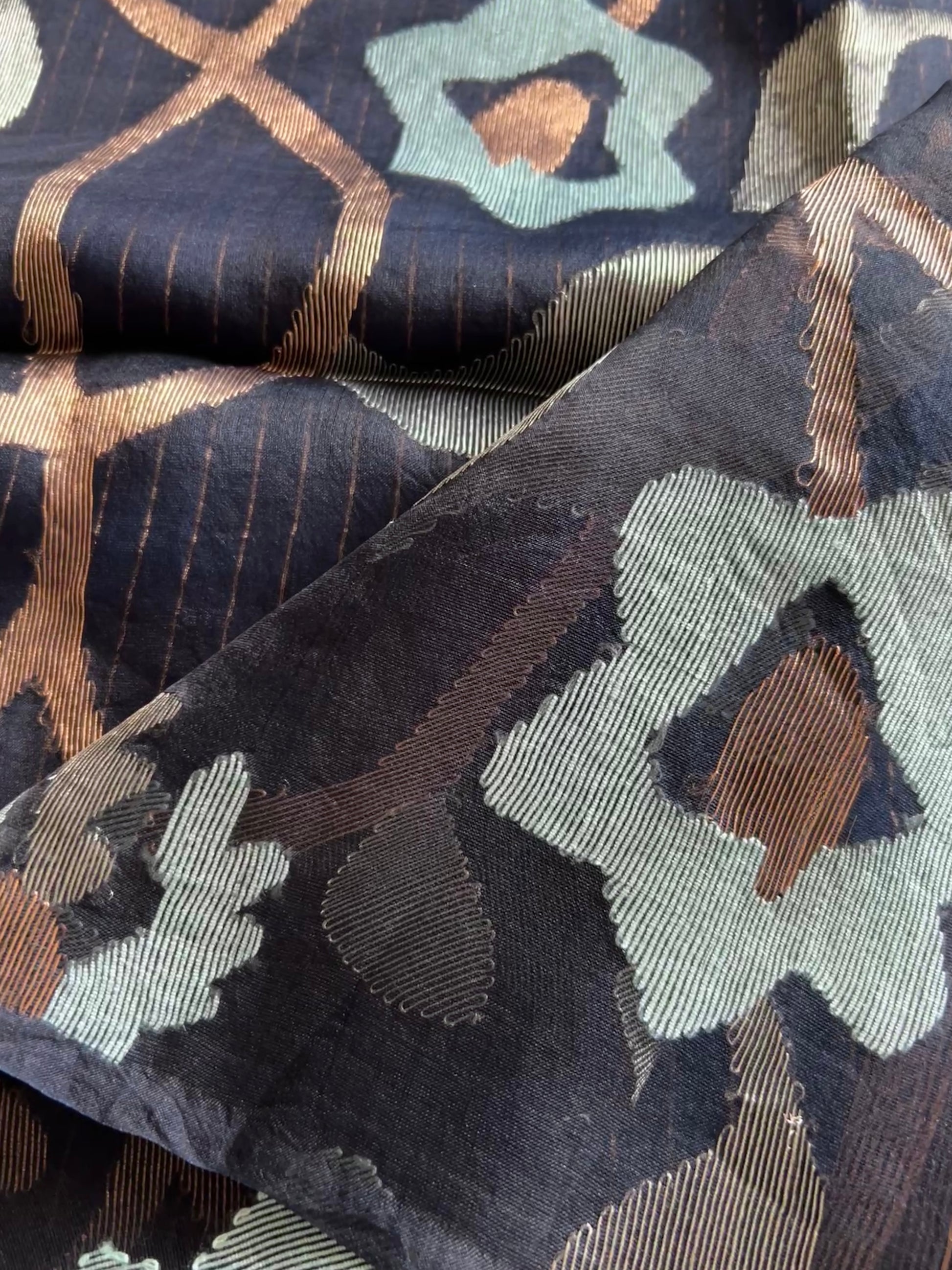 The linen silk fabric brings a perfect balance of softness and sheen, offering a lightweight yet luxurious feel. The Jamdhani work on the muslin pallu adds intricate, traditional handwoven motifs, elevating the saree with timeless beauty and cultural heritage. Together, these elements create a saree that exudes elegance, sophistication, and intricate craftsmanship, making it a stunning choice for special occasions.