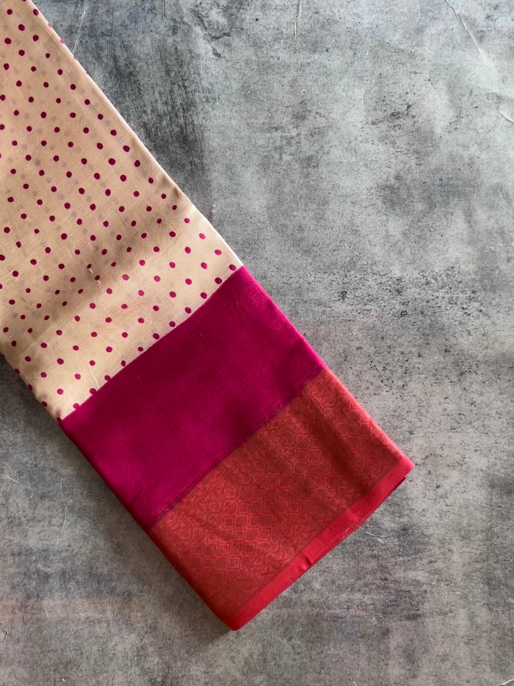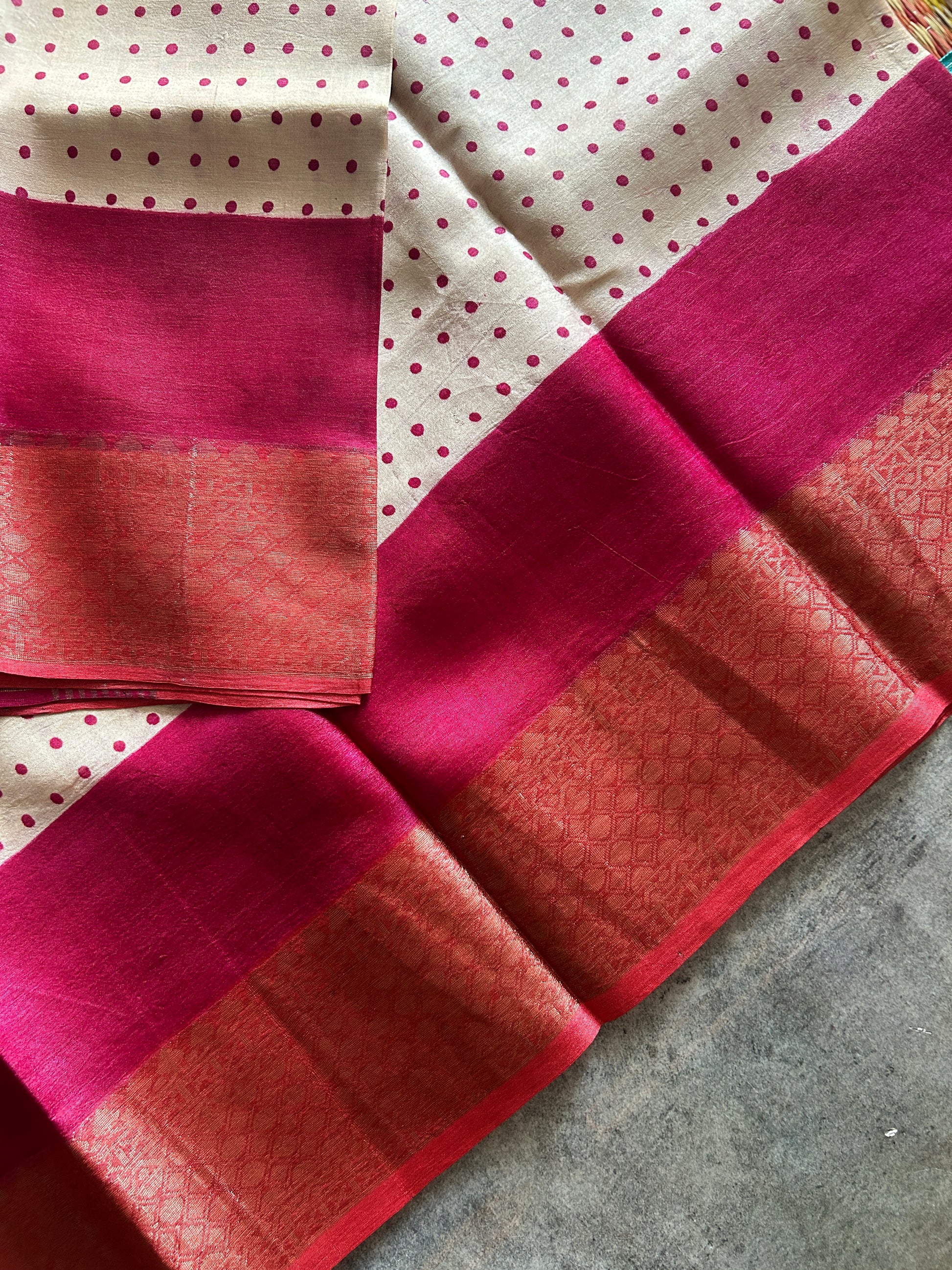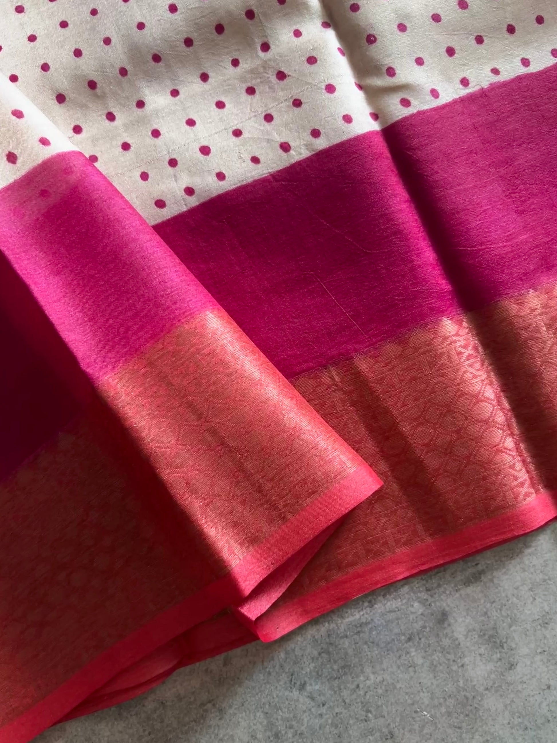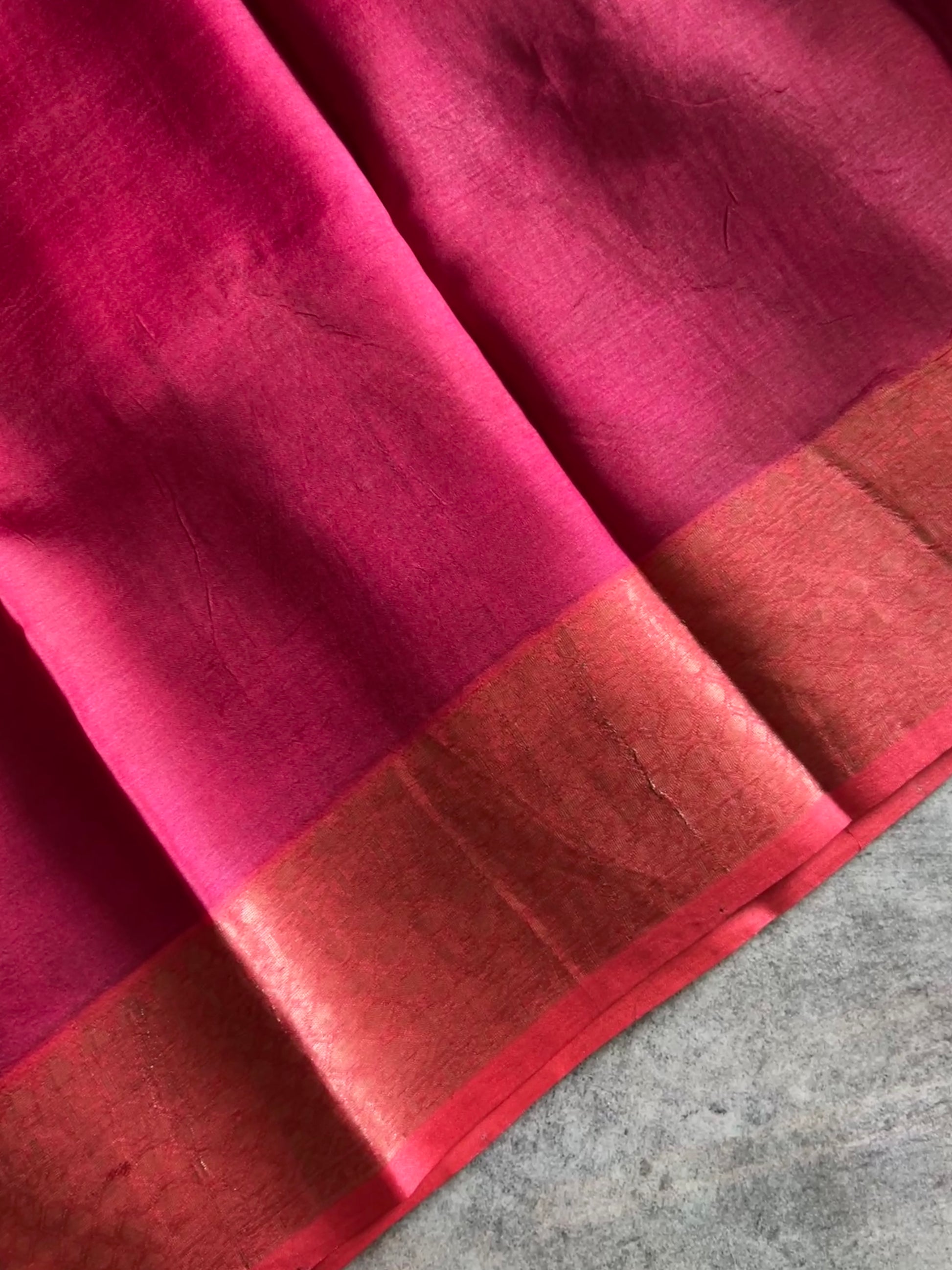 Tussar silk sarees are handwoven pieces of wonder getting you ethnified with the modern twist. This fabric shines on the outside and makes you cozy from the inside with its soft breathable nature. So, Ideal to keep yourself in your comfort zone at the long gatherings.