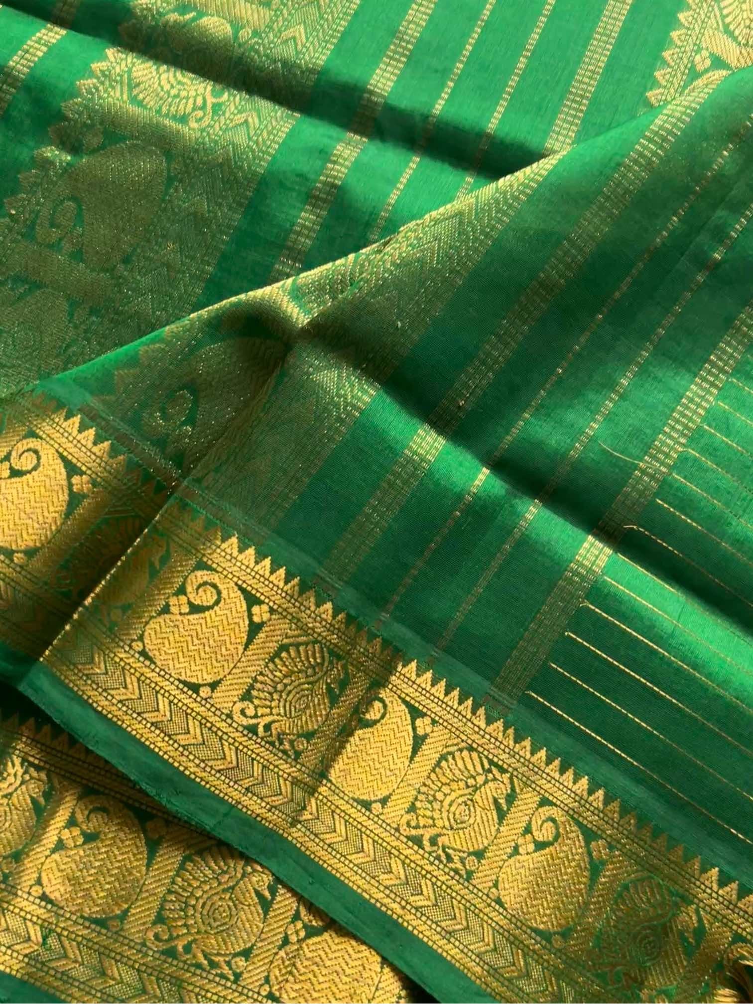 Known for their unique lightweight and breathable quality, the Kanchi silk cotton sarees are soft, comfortable, easy to carry and wrinkle-free. The fabric glistens because of its fine quality. The subtle shine of this saree makes it a distinctive ethnic wear especially in parties and traditional occasions.
