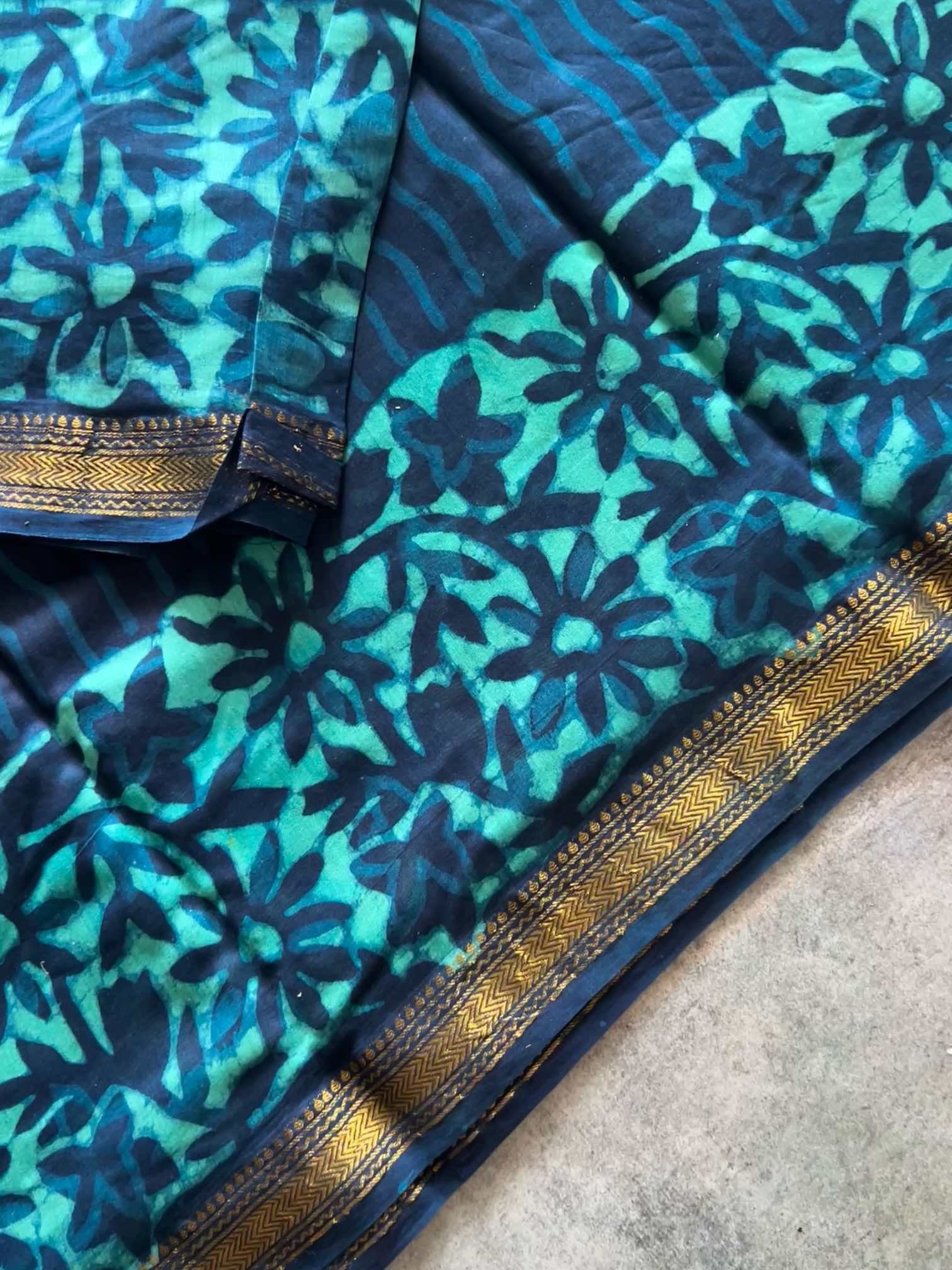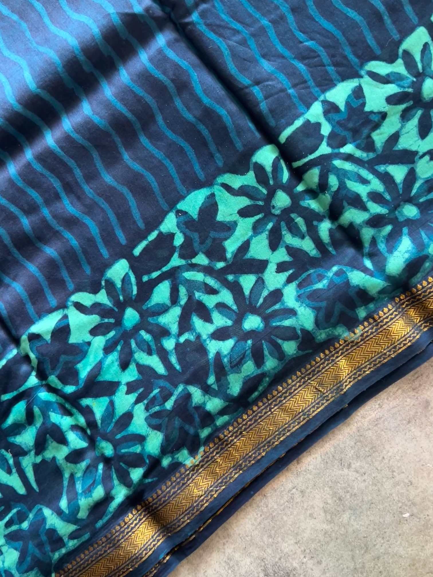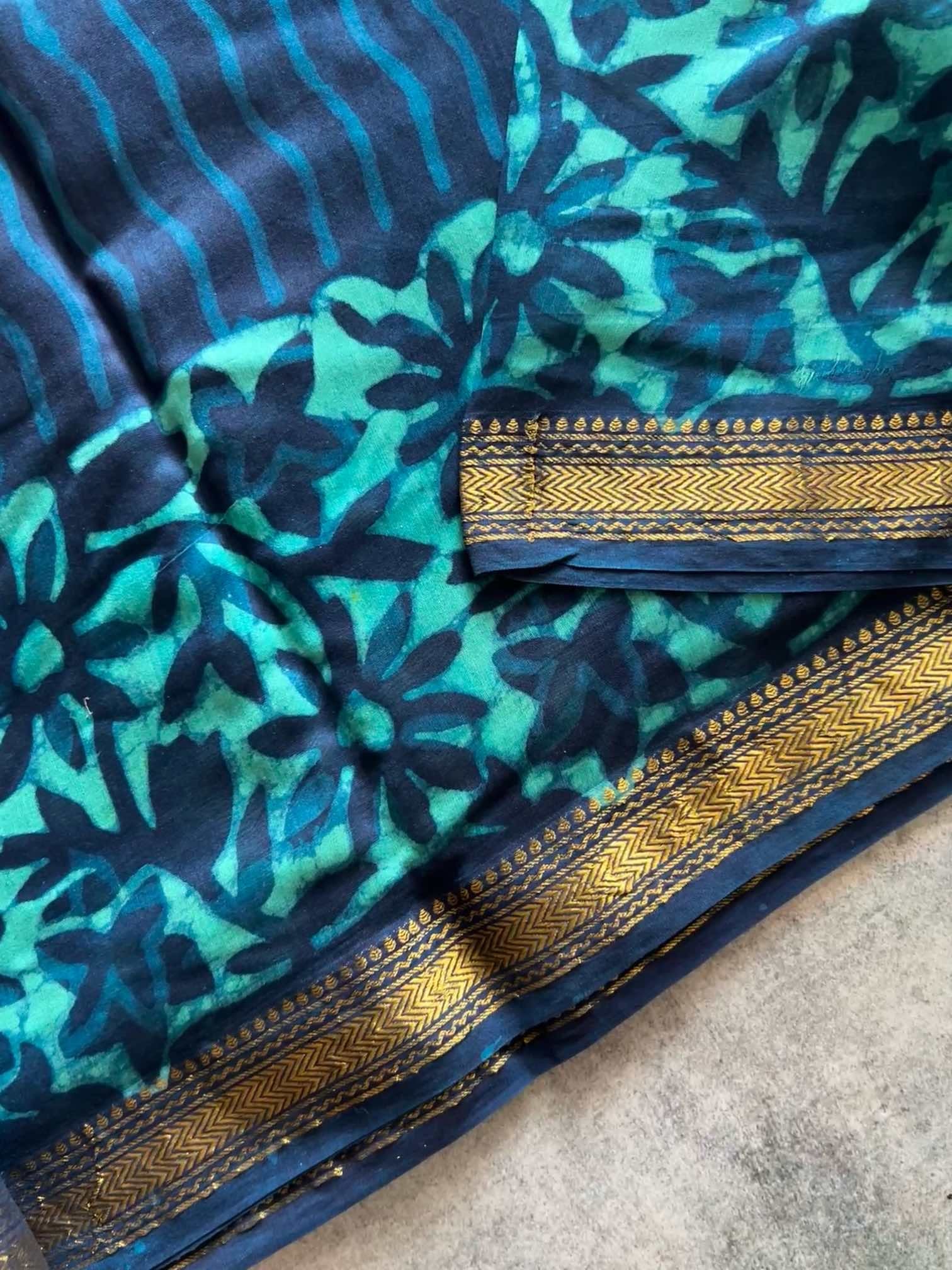 Elegant and classy handblock printed maheswari cotton silk saree. These exquisite pieces are very comfortable to wear and feels extremely soft and classy when draped.