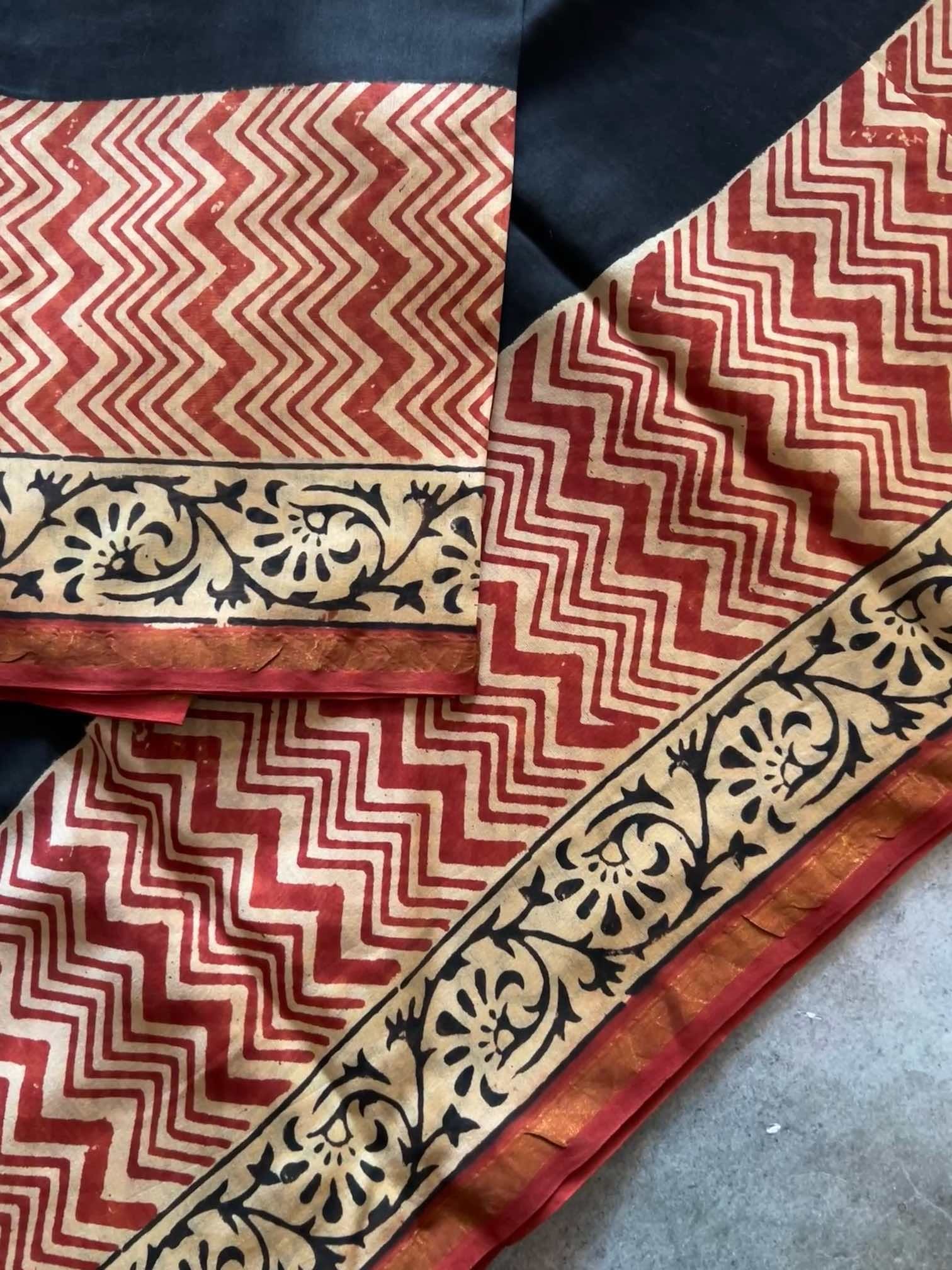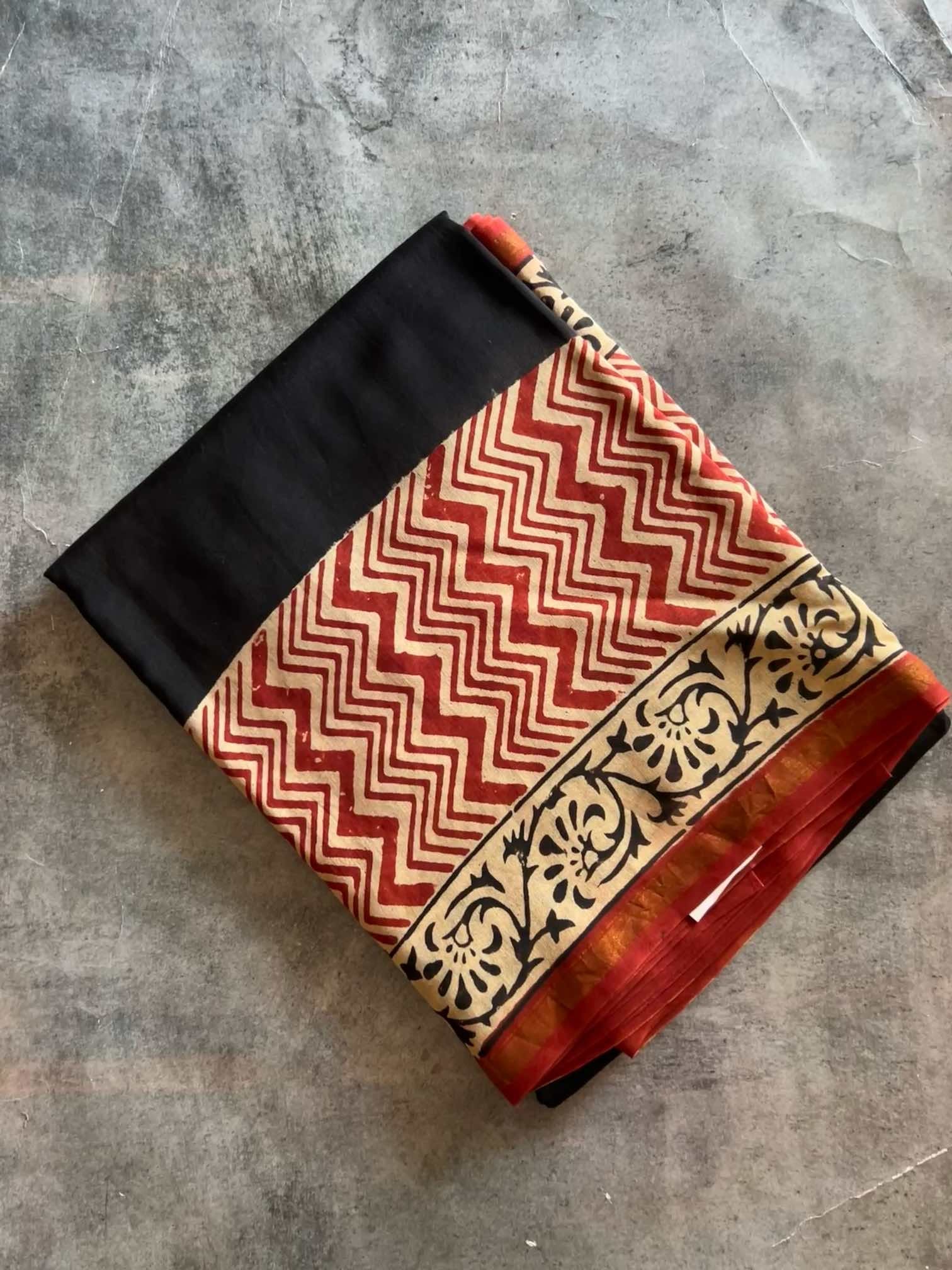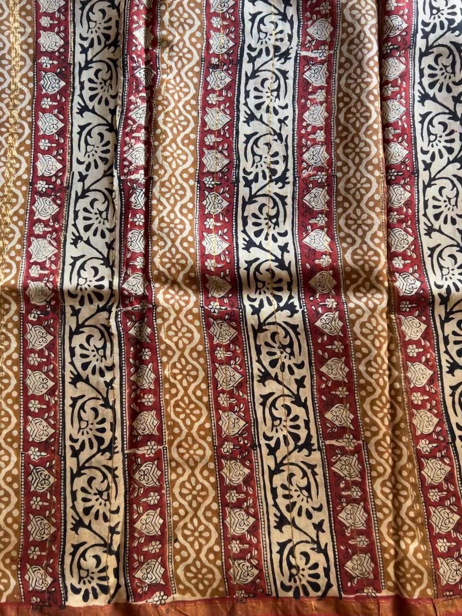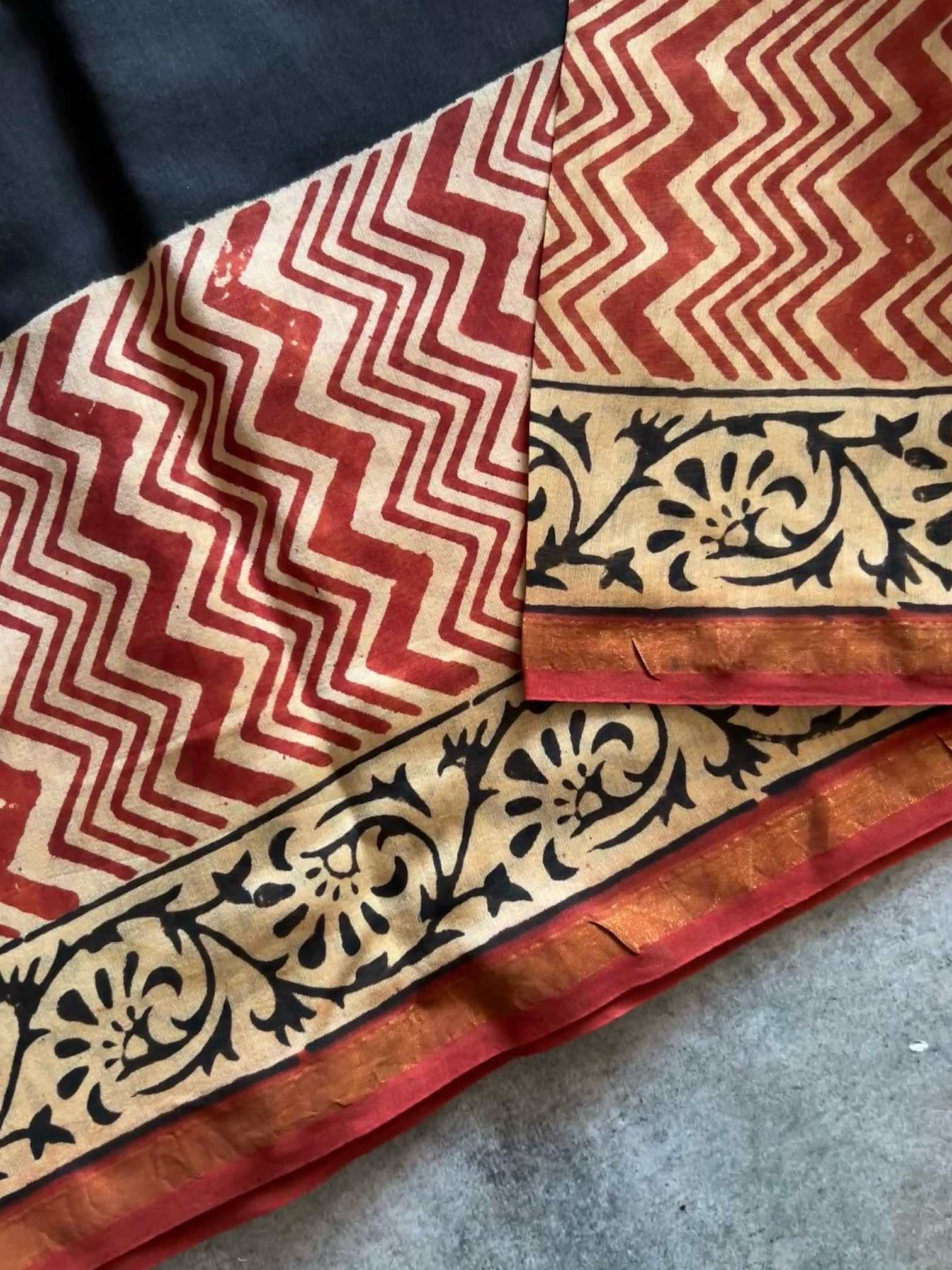 Elegant and classy hand block printed chandheri cotton silk saree. These exquisite pieces are very comfortable to wear and feel extremely soft and classy when draped.
