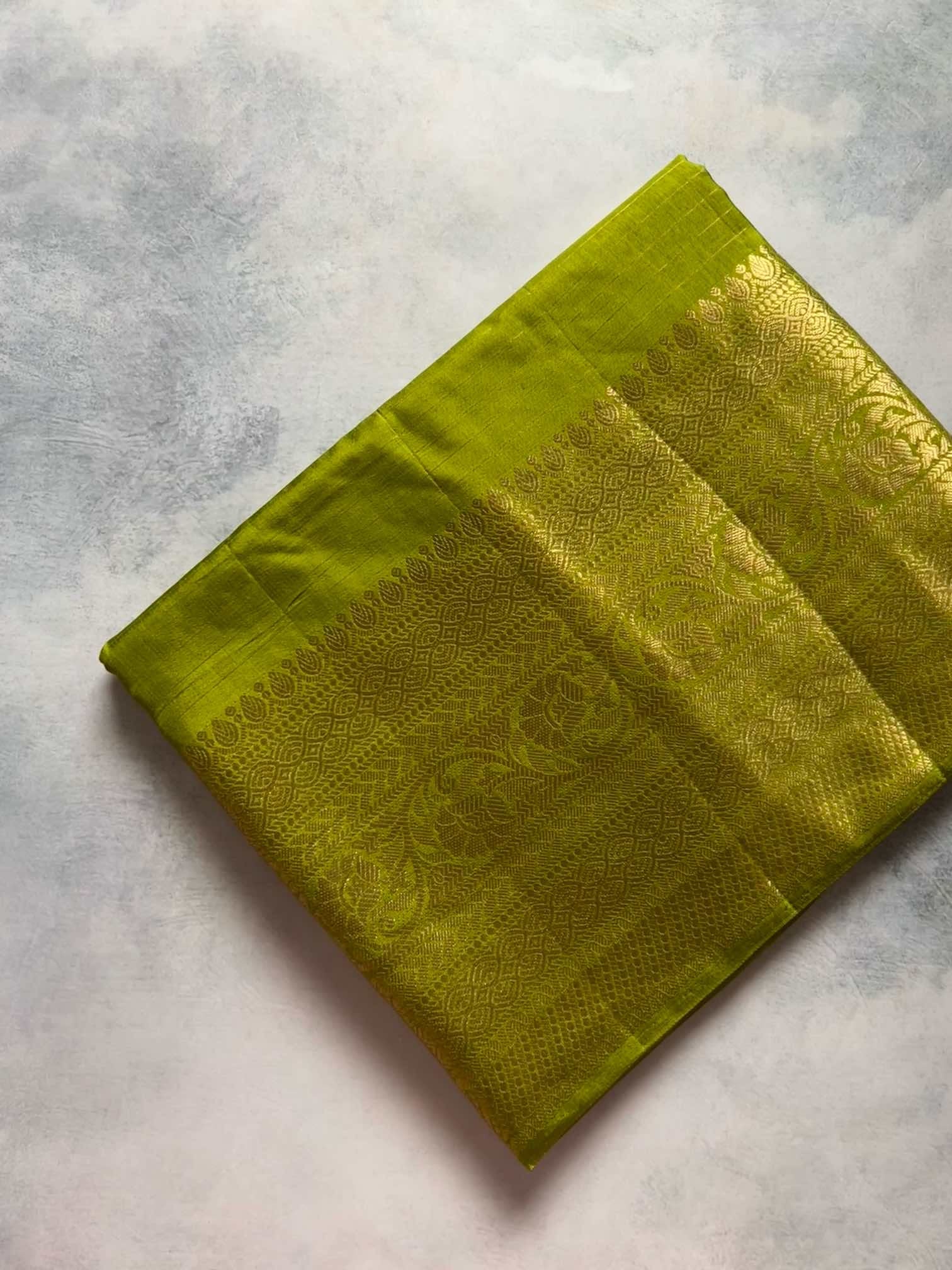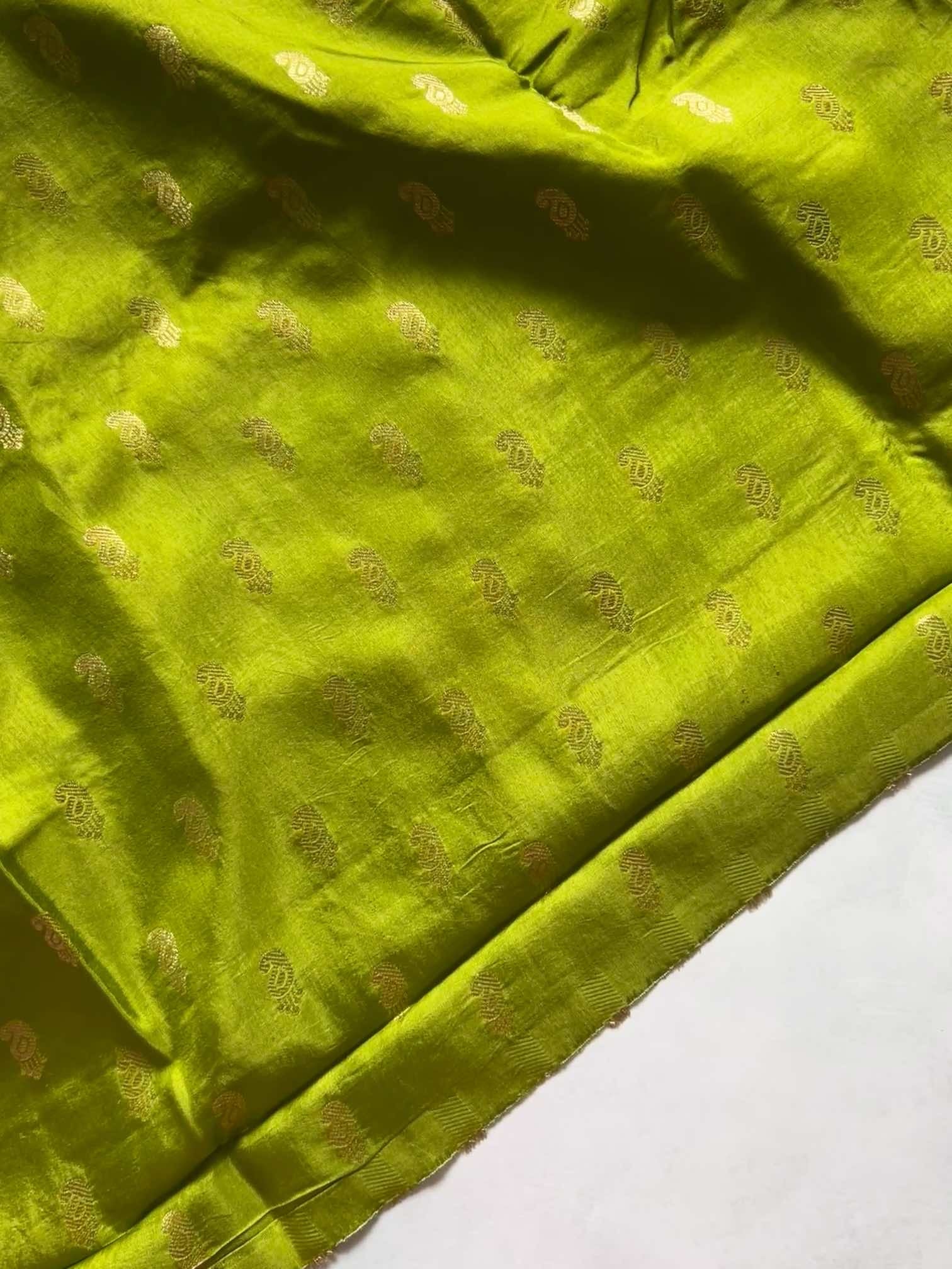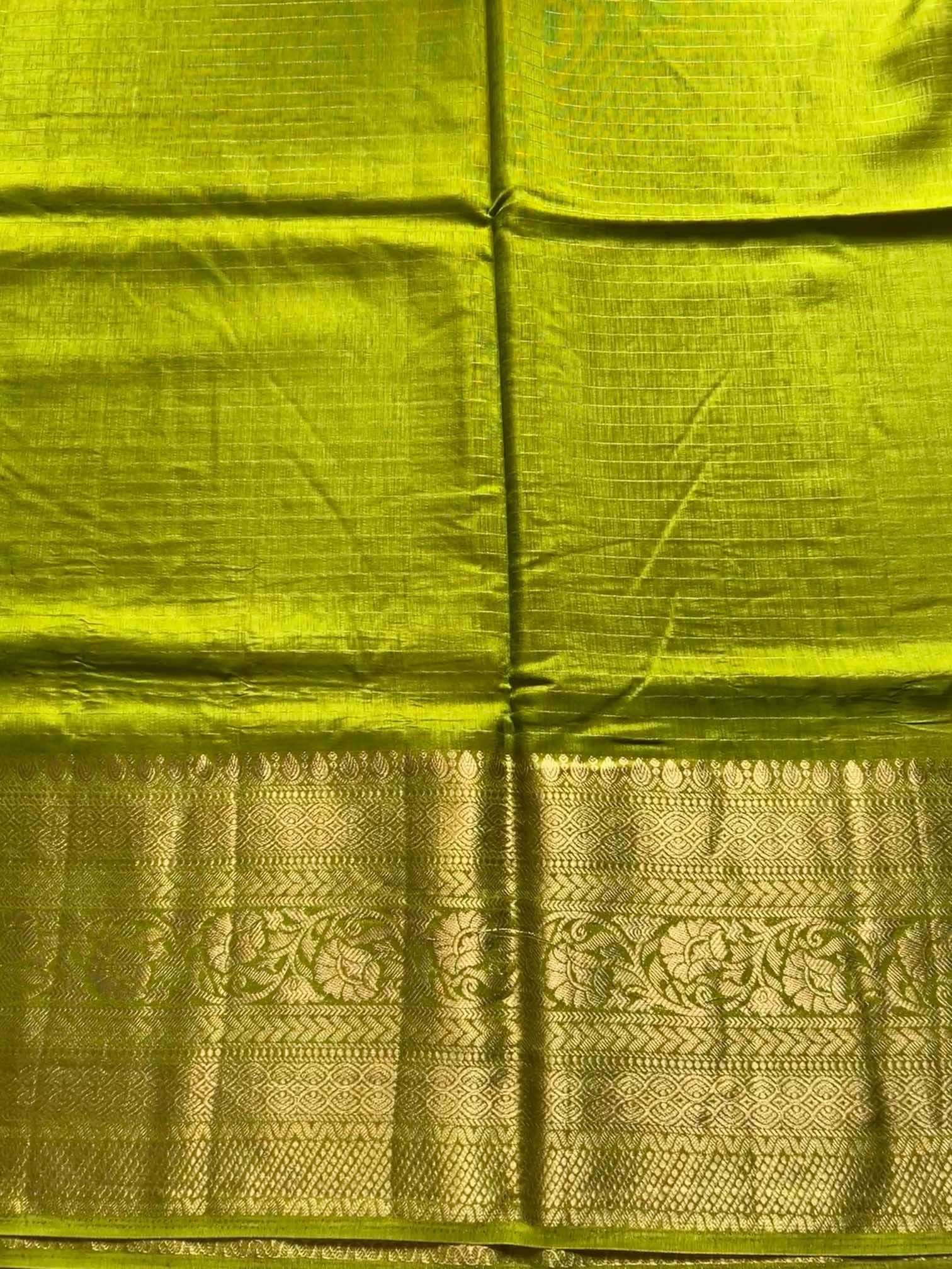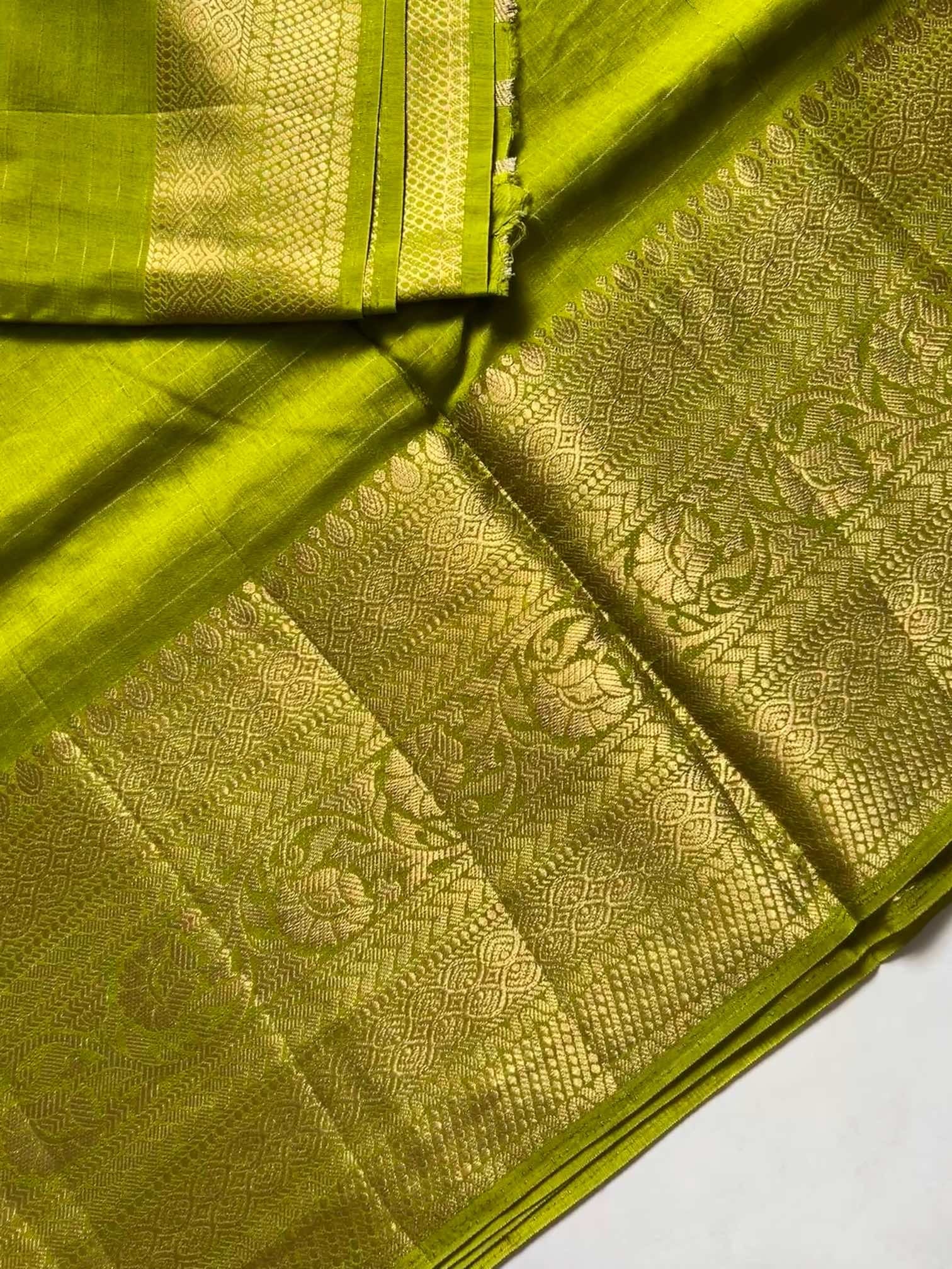 The soft, fluid texture of dola silk drapes with effortless grace, catching light in a gentle, elegant sheen. The brocade border adds a regal touch—rich, intricate, and timeless—while the fine zari lines running through the body create a subtle shimmer, giving the saree an ethereal charm.Together, these elements make the saree both sophisticated and captivating, perfect for moments that call for quiet grandeur and classic beauty.