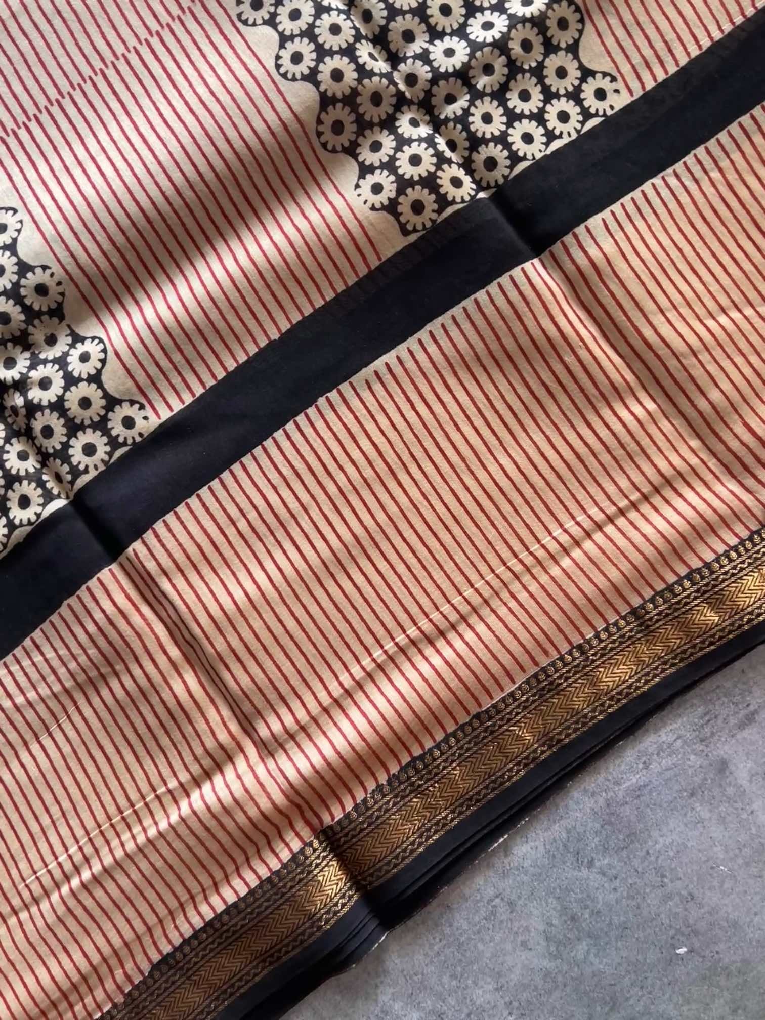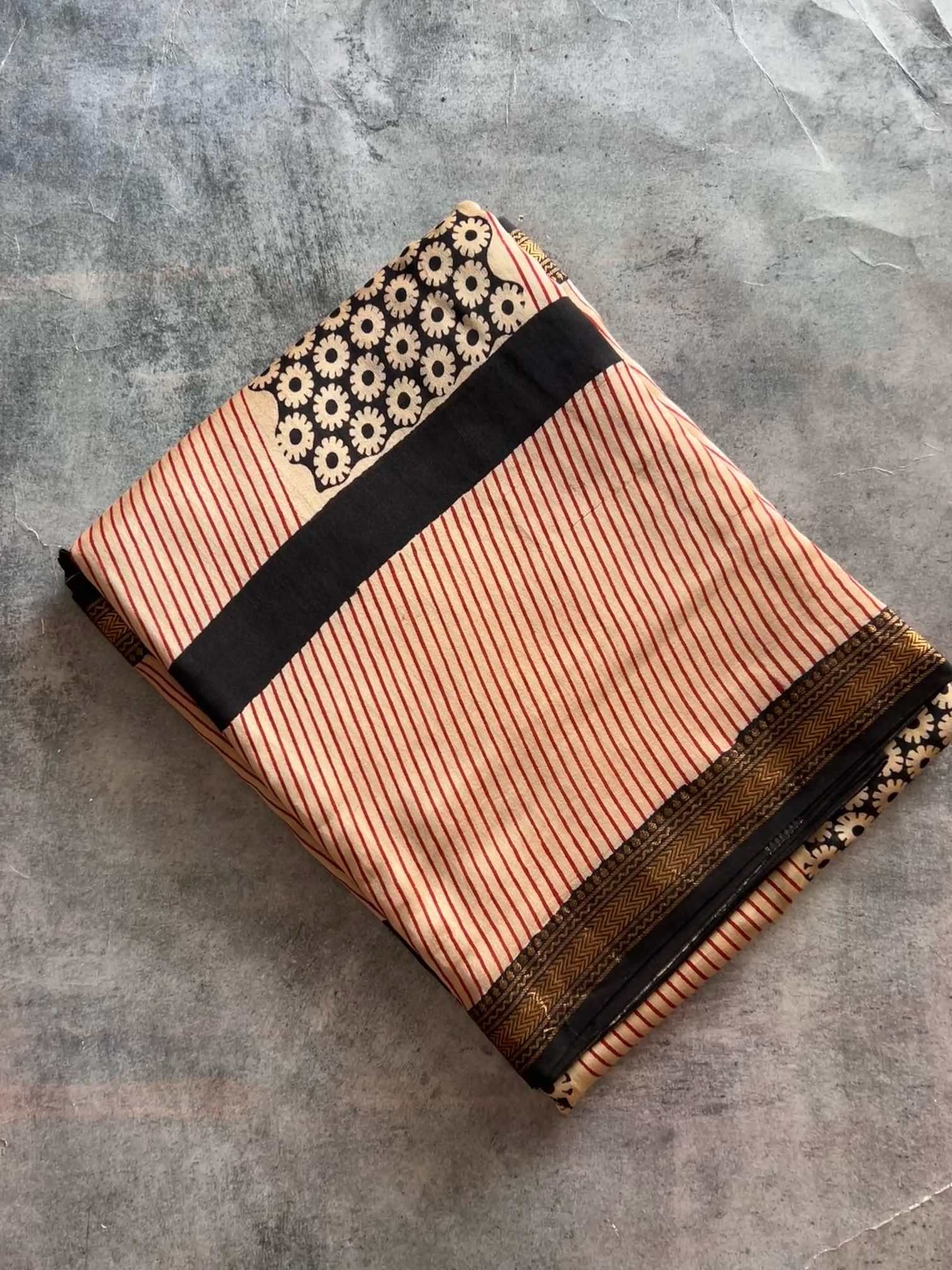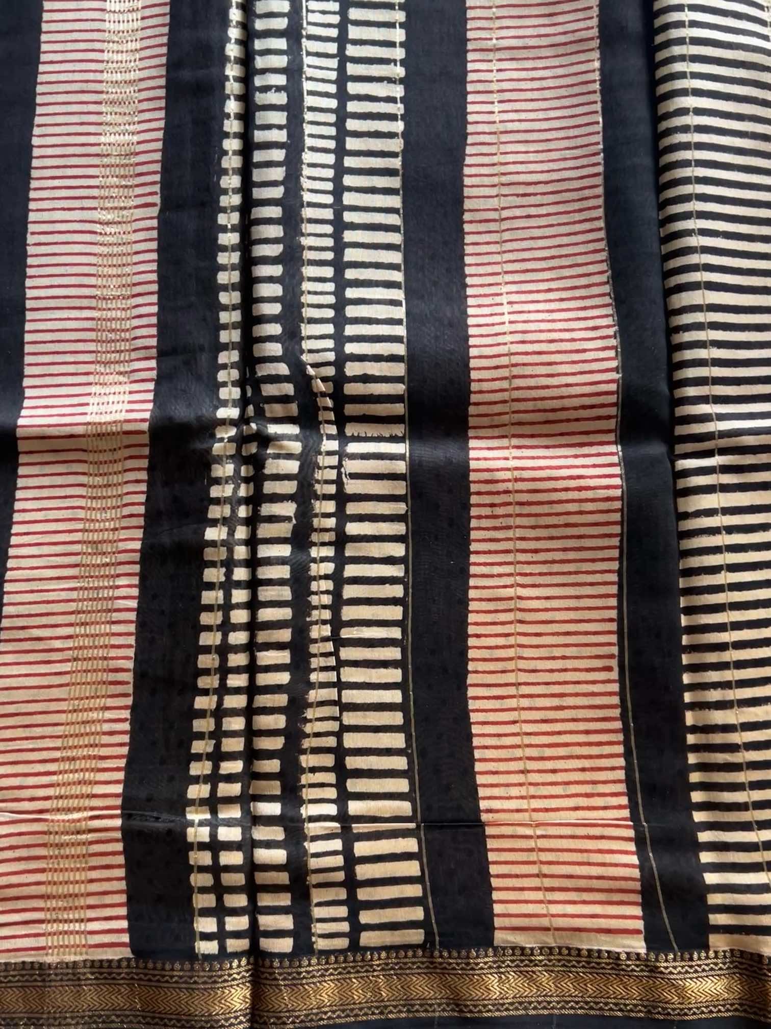 Elegant and classy handblock printed maheswari cotton silk saree. These exquisite pieces are very comfortable to wear and feels extremely soft and classy when draped.