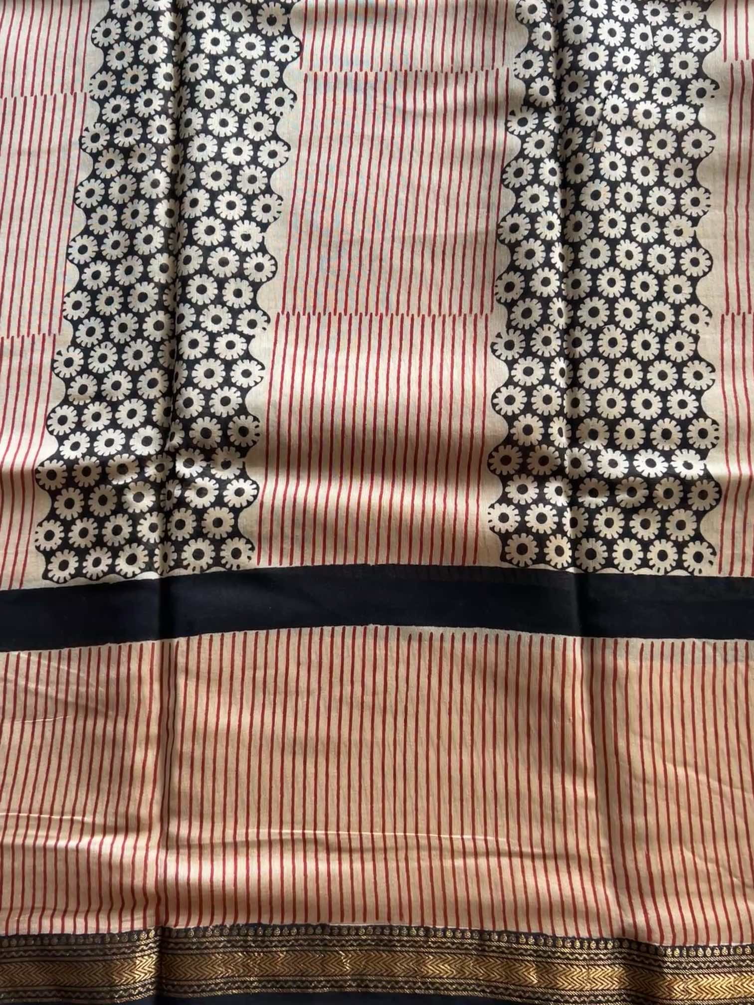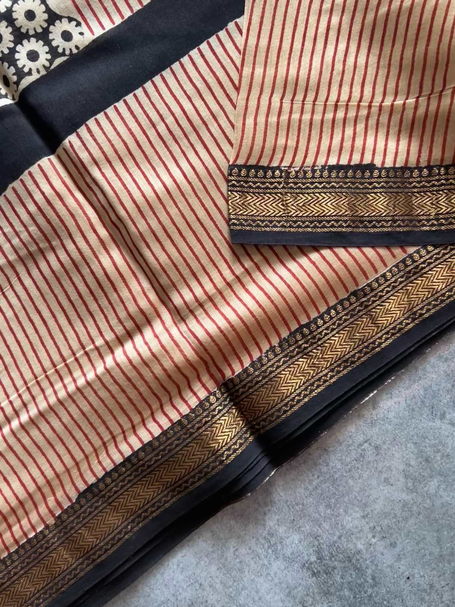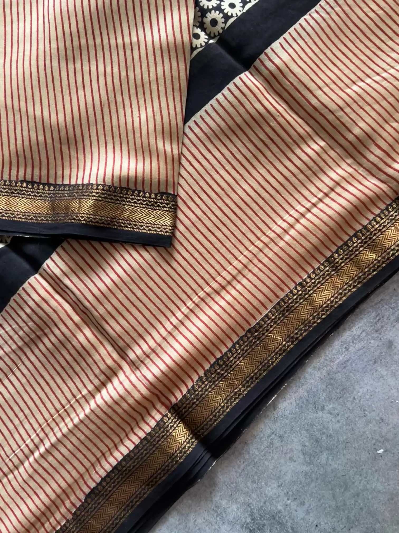 Elegant and classy handblock printed maheswari cotton silk saree. These exquisite pieces are very comfortable to wear and feels extremely soft and classy when draped.