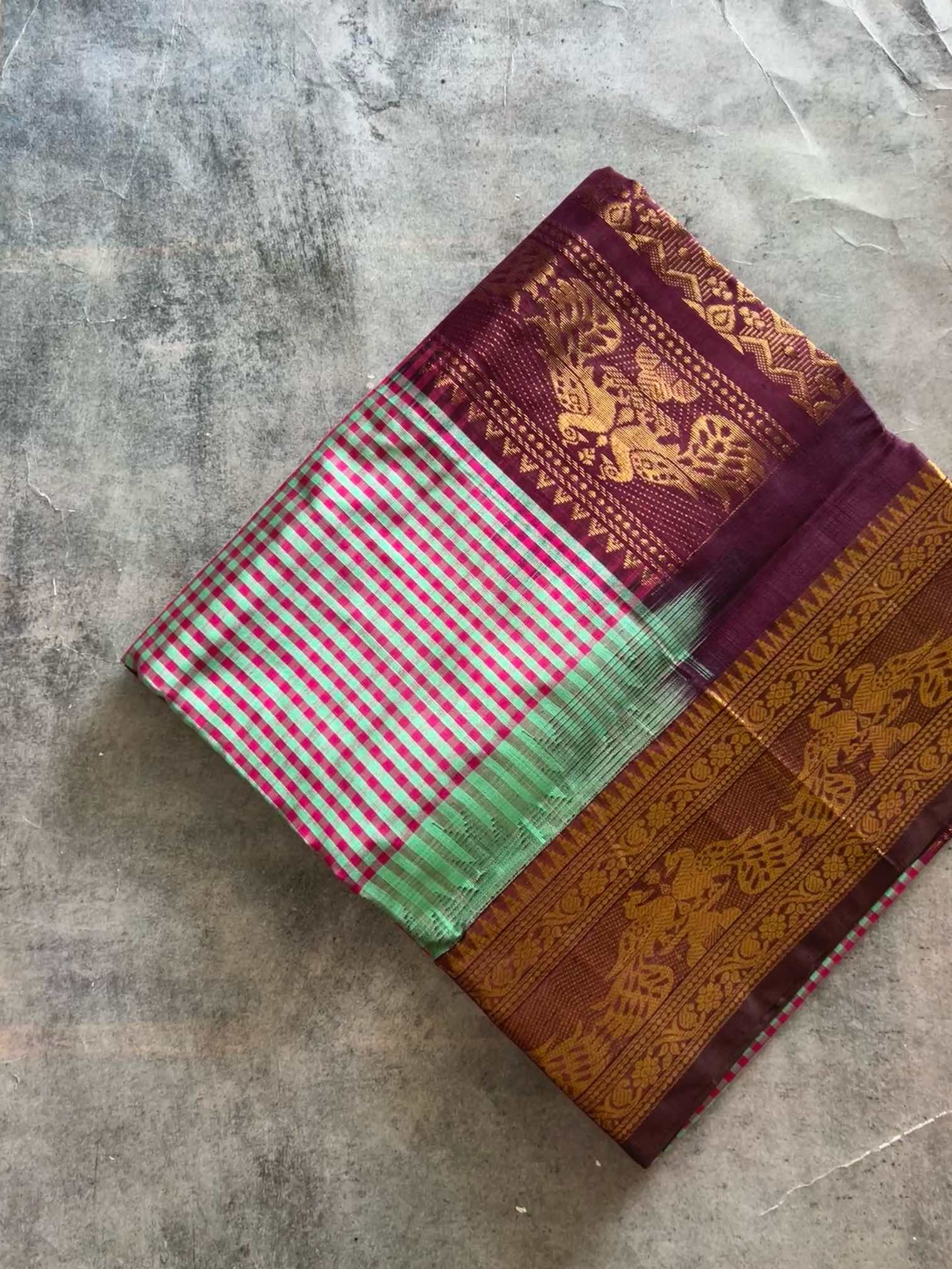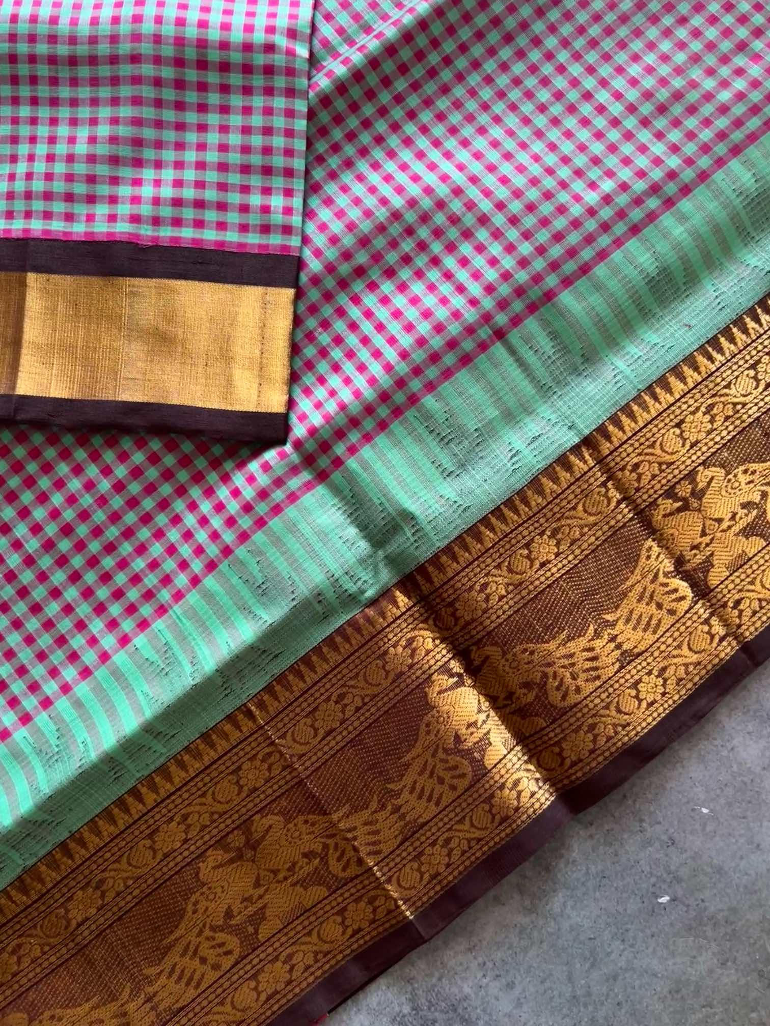 Known for their unique lightweight and breathable quality, the Kanchi silk cotton sarees are soft, comfortable, easy to carry and wrinkle-free. The fabric glistens because of its fine quality. The subtle shine of this saree makes it a distinctive ethnic wear especially in parties and traditional occasions.