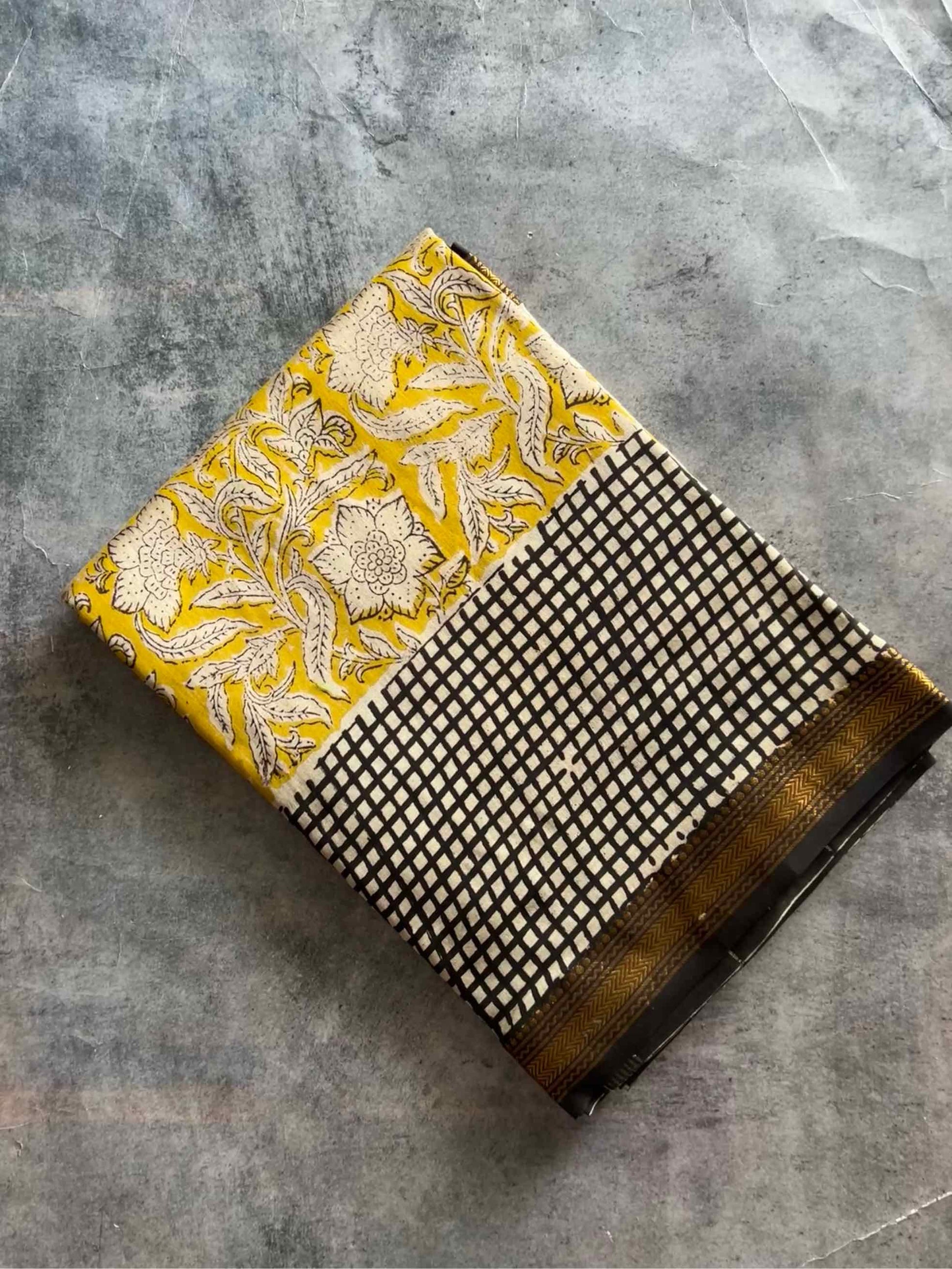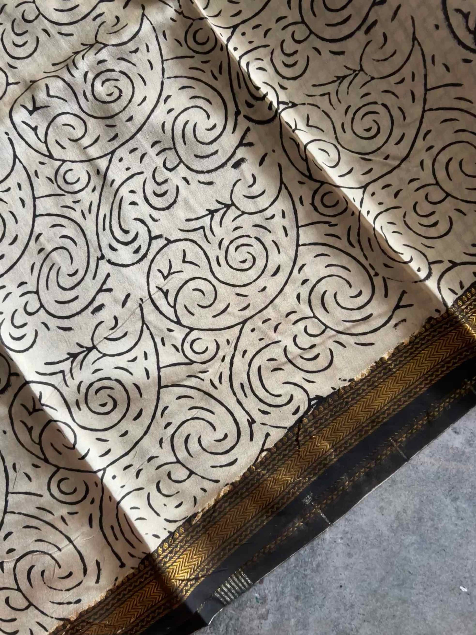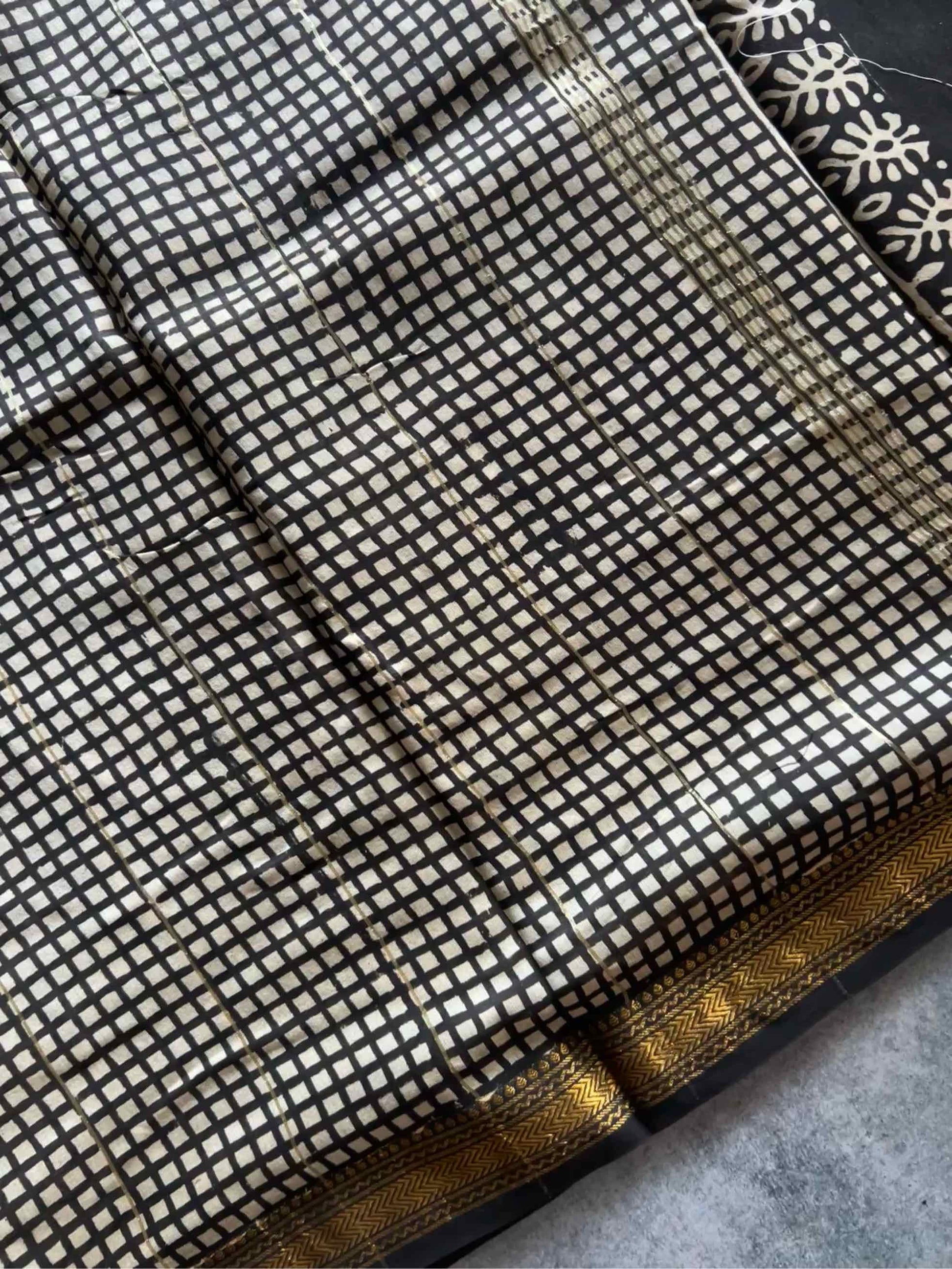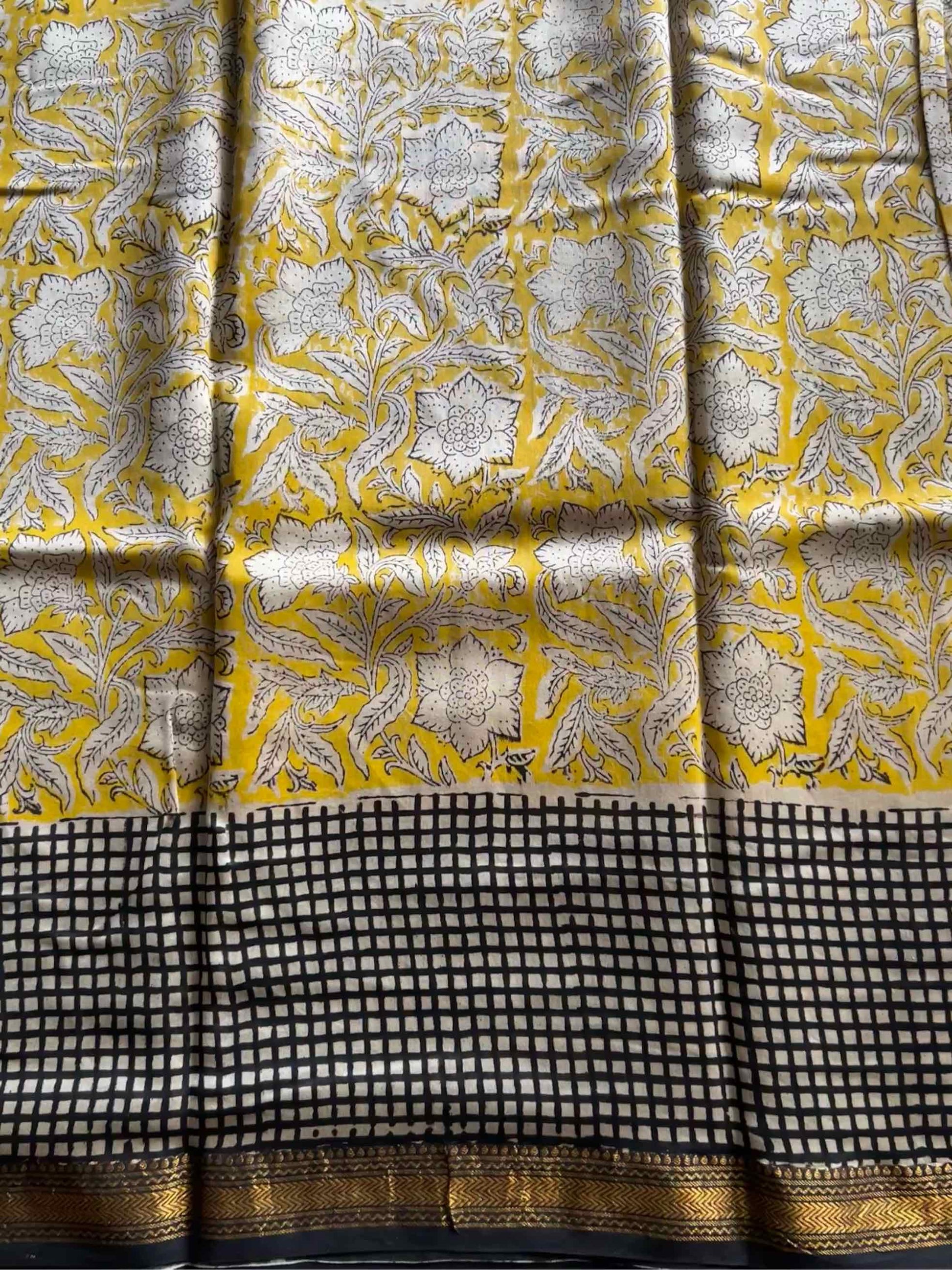 Elegant and classy handblock printed maheswari cotton silk saree. These exquisite pieces are very comfortable to wear and feels extremely soft and classy when draped.