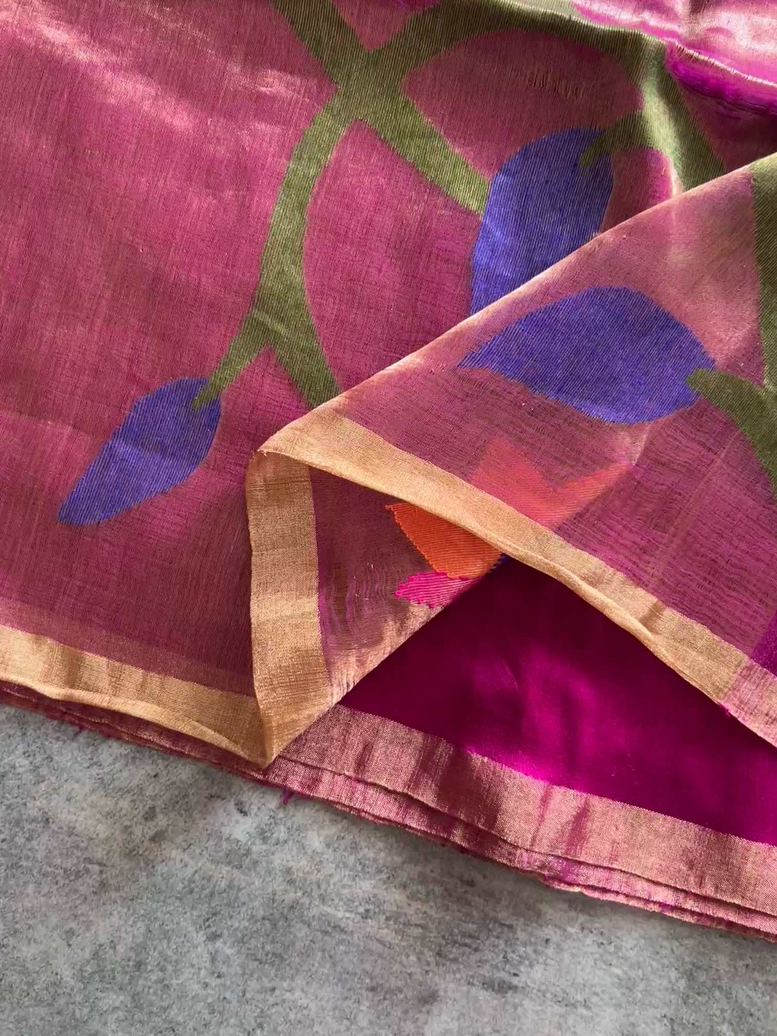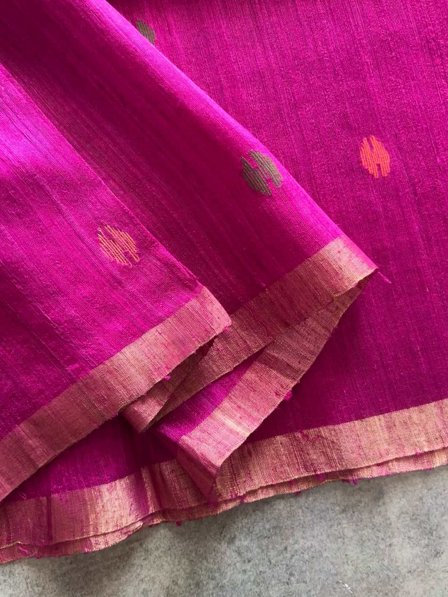 Matka silk draped in delicate Jamdhani buttis exudes an earthy elegance, where every woven motif whispers of skilled craftsmanship. Paithani pallu in its rich, luminous detailing adds a regal flourish, creating a perfect harmony of tradition, texture, and timeless beauty.