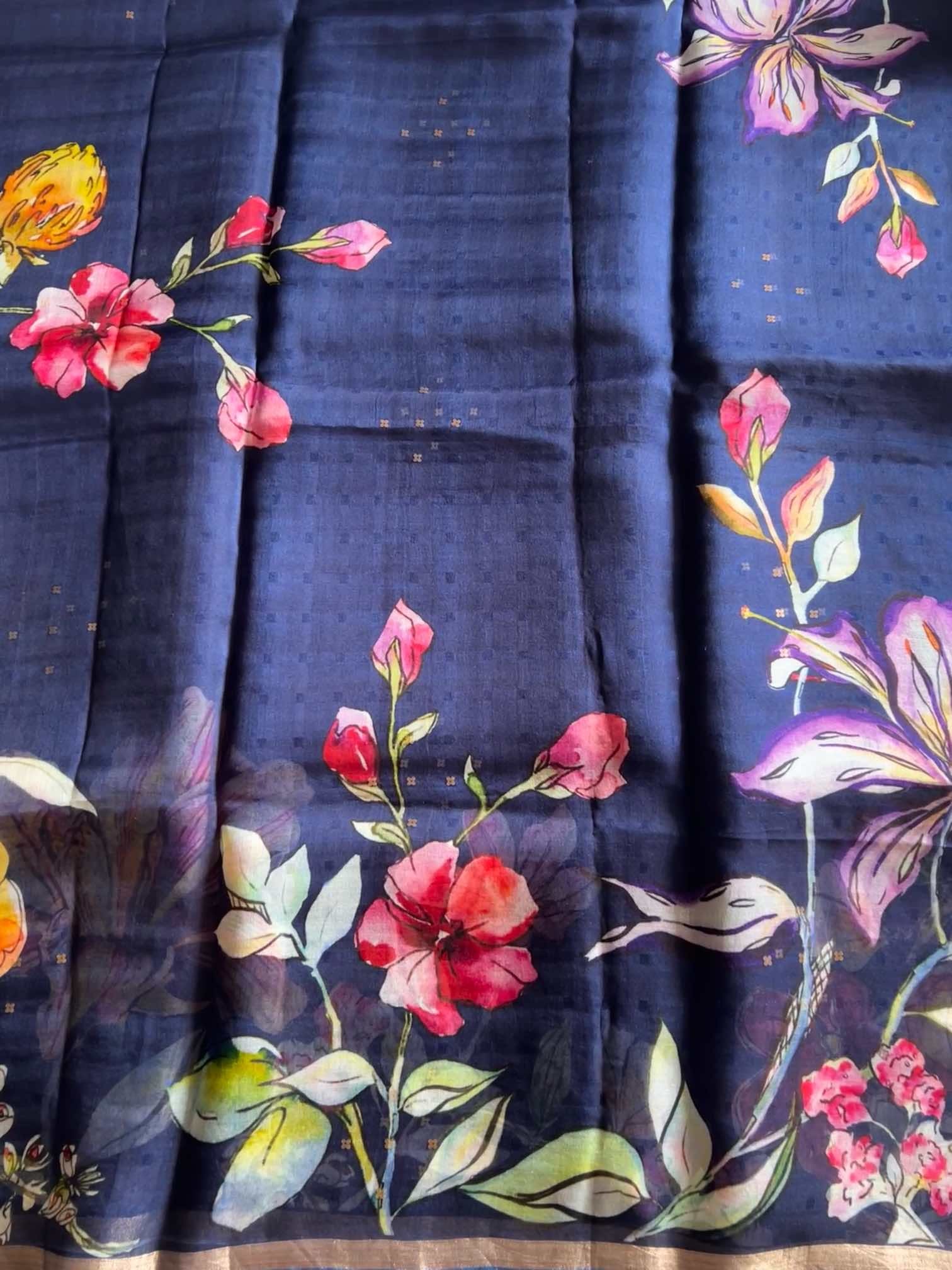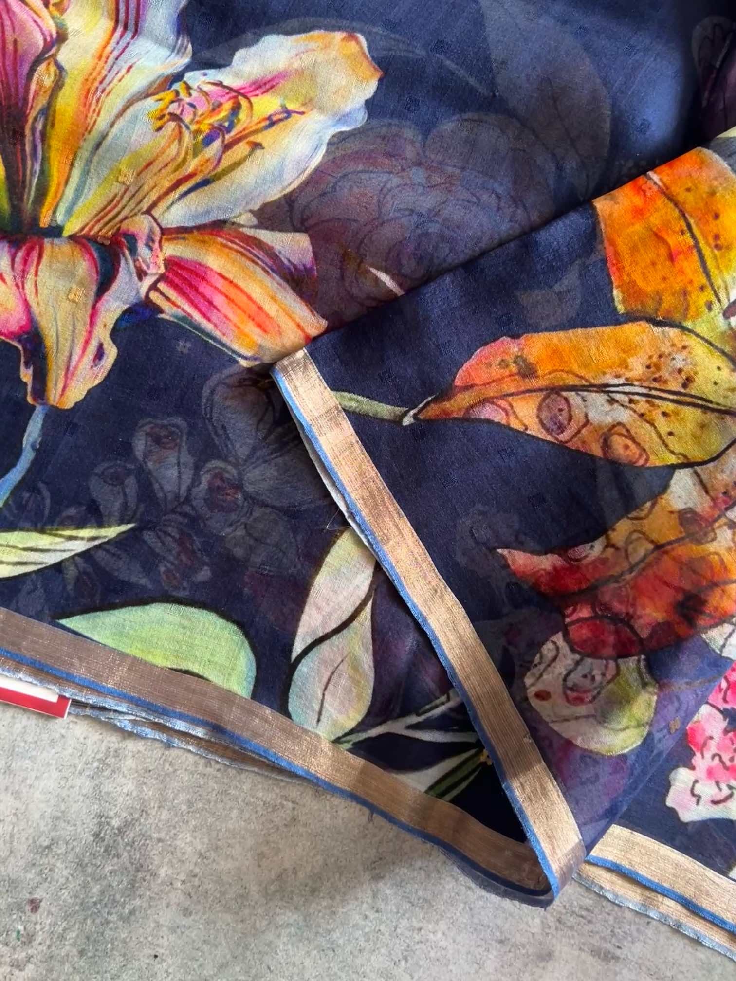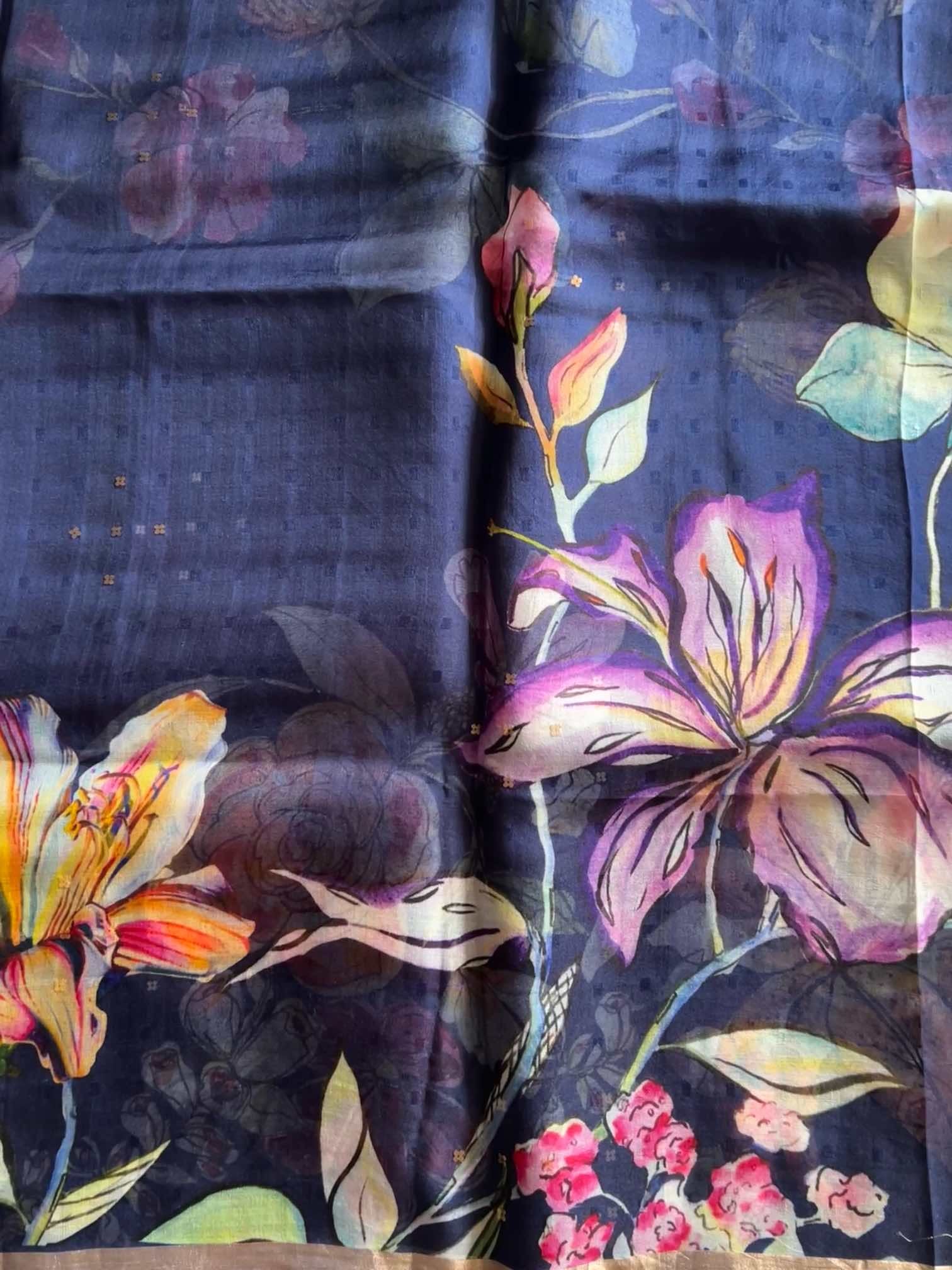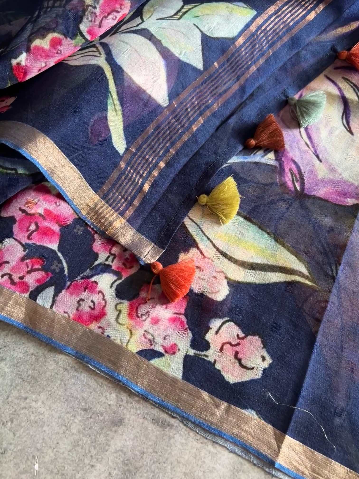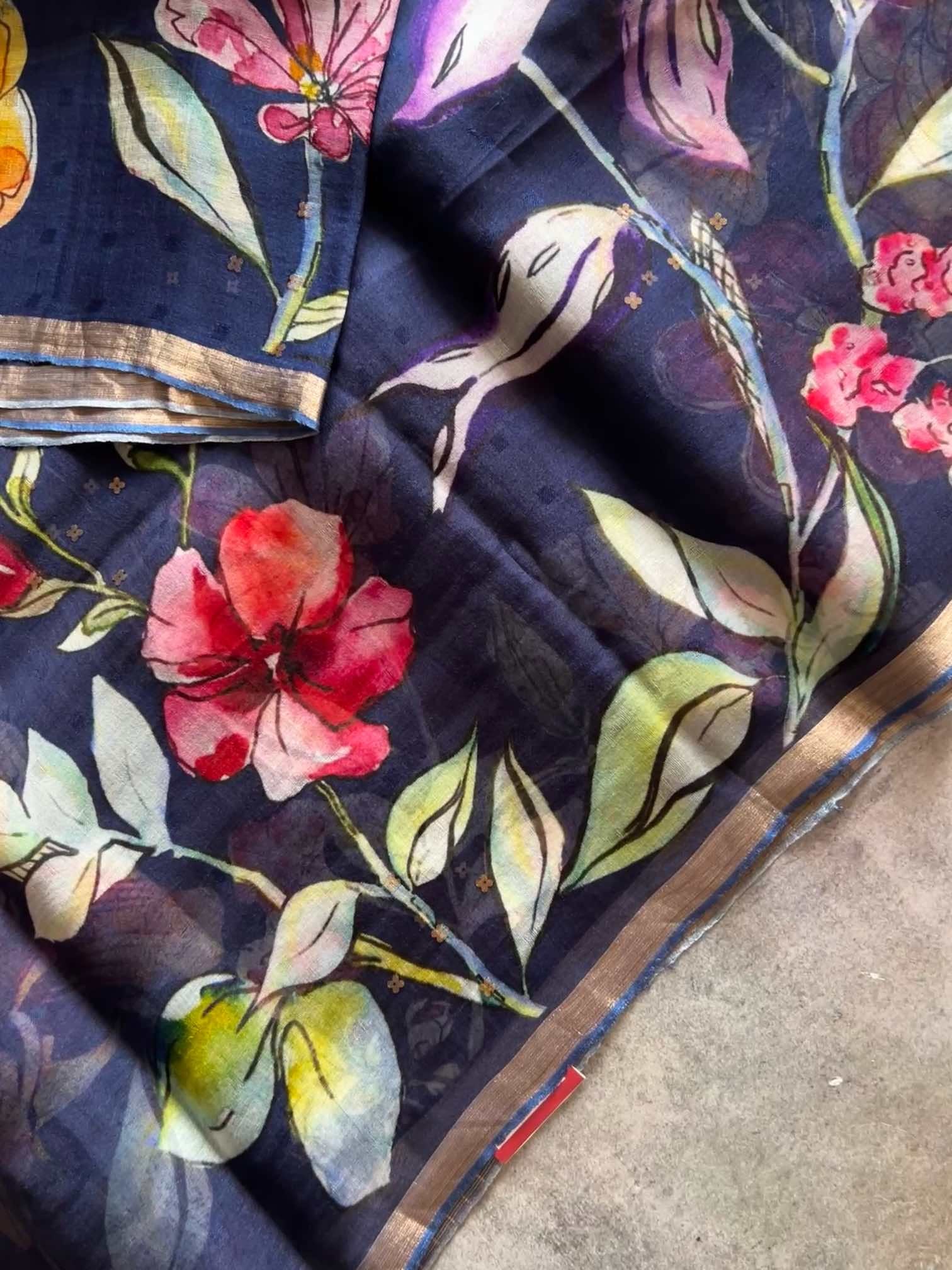 Muslin digital print sarees beautifully blend the timeless charm of muslin with the boldness of modern digital prints. The light, airy fabric drapes gracefully, offering a soft, ethereal feel against the skin. The digital prints, ranging from vibrant florals to intricate patterns, add a contemporary flair to the saree, creating a striking visual impact.