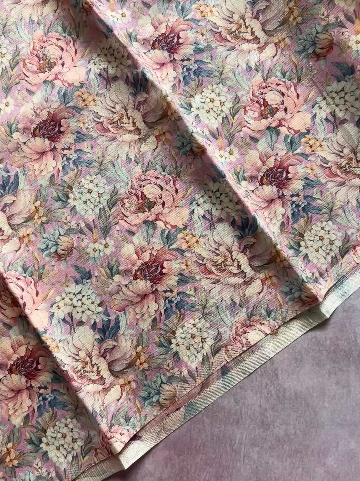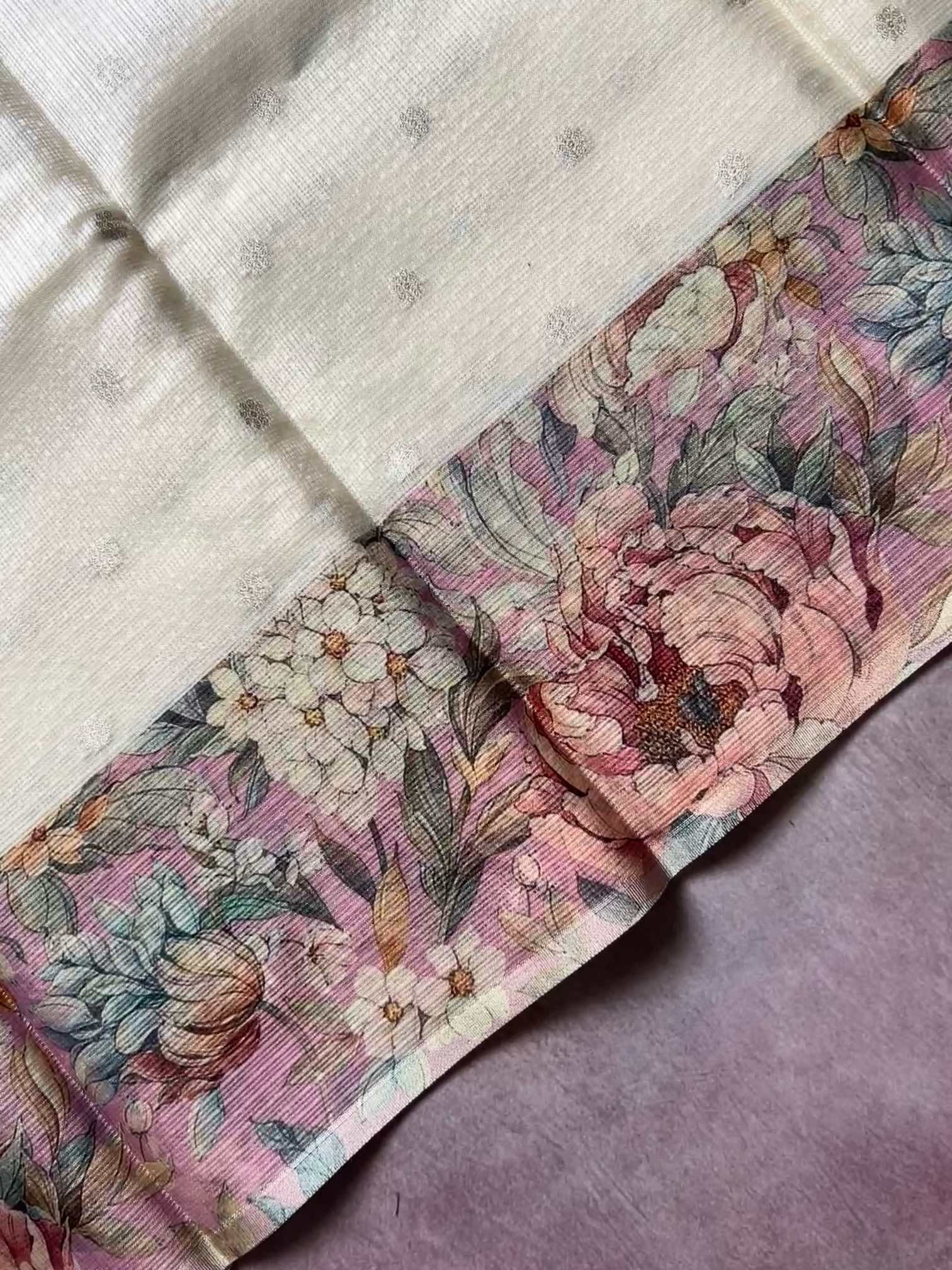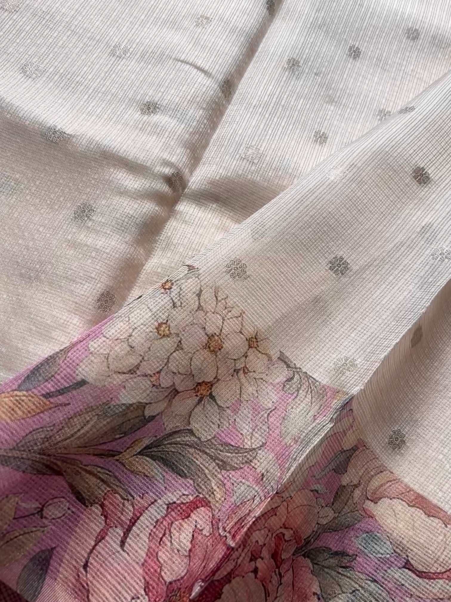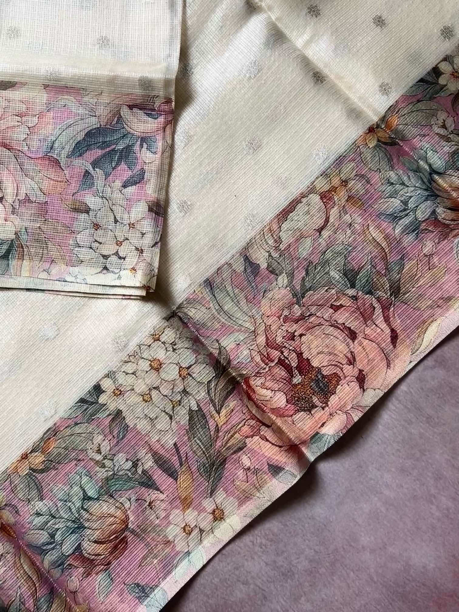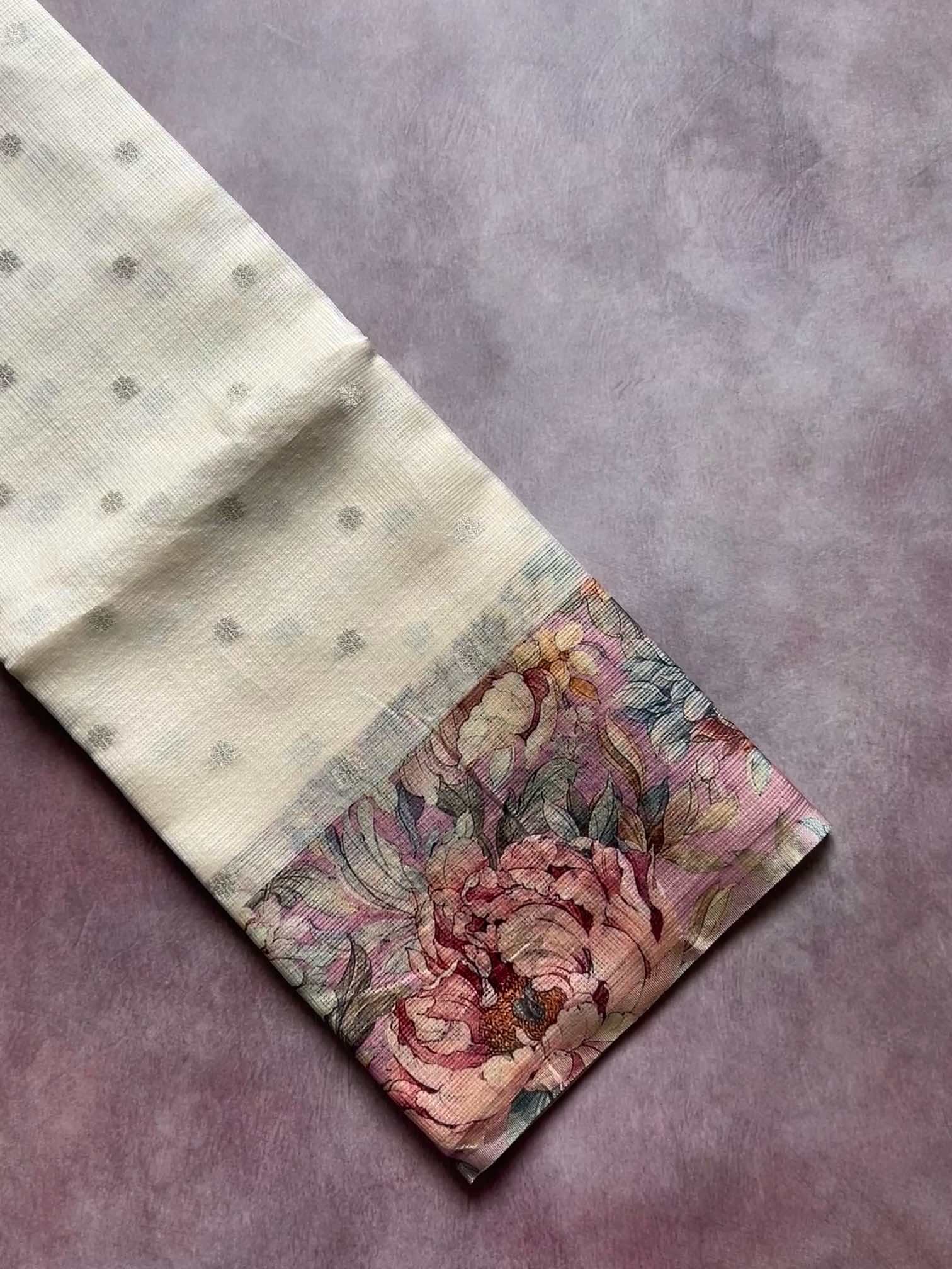 Printed Kota sarees with lace work borders exude a unique blend of simplicity and elegance. The airy, translucent texture of Kota fabric, combined with vibrant prints, creates a refreshing and graceful look. The delicate lace border adds a touch of sophistication, beautifully framing the saree with subtle charm.