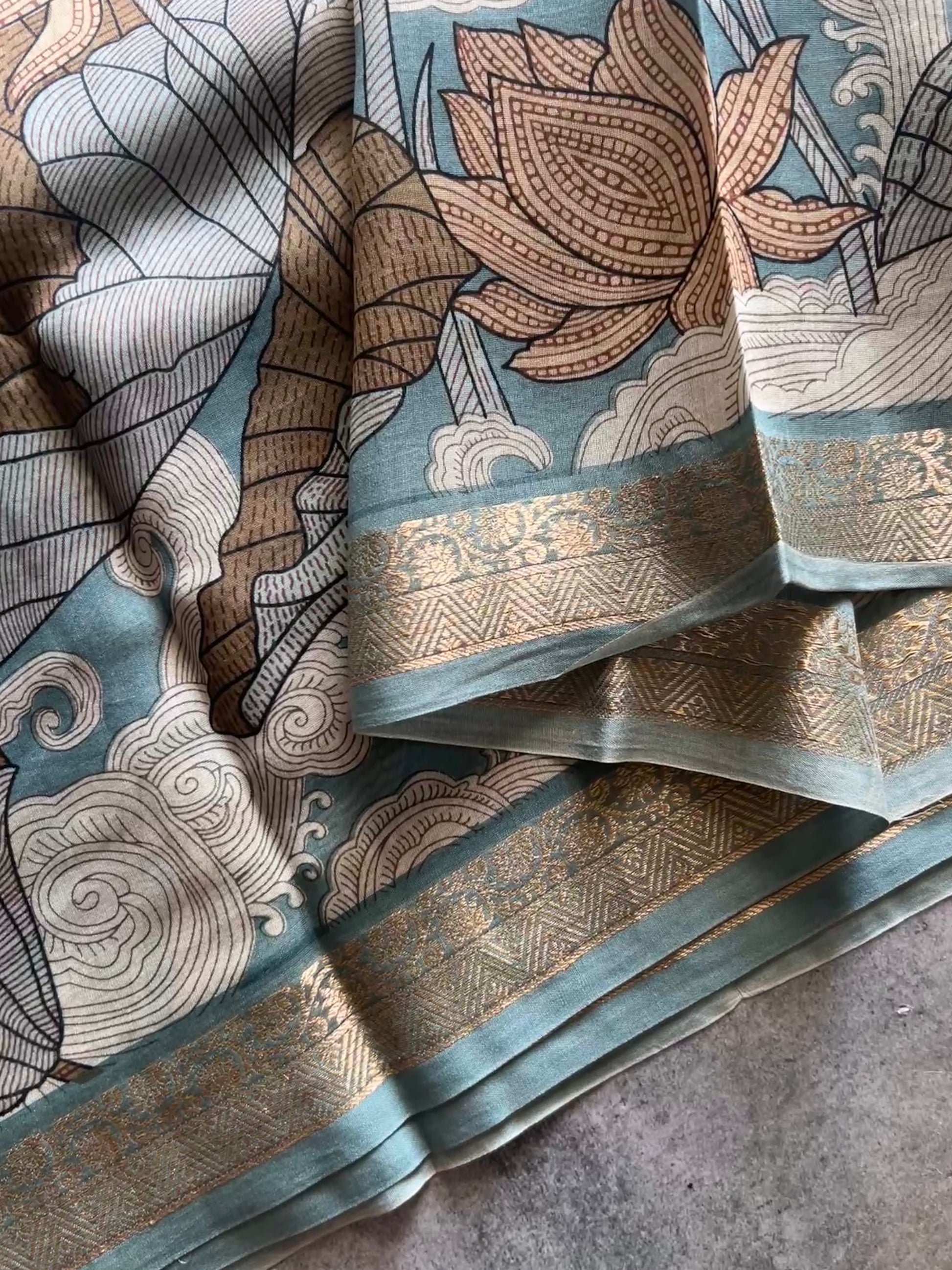 Chanderi butter silk epitomizes elegance and sophistication with its sheer, lightweight texture and natural sheen. This luxurious fabric seamlessly blends traditional charm with contemporary style, making it a timeless choice for any wardrobe. Its breathability and comfort further enhance its appeal, making Chanderi butter silk not just a fabric, but a work of art.