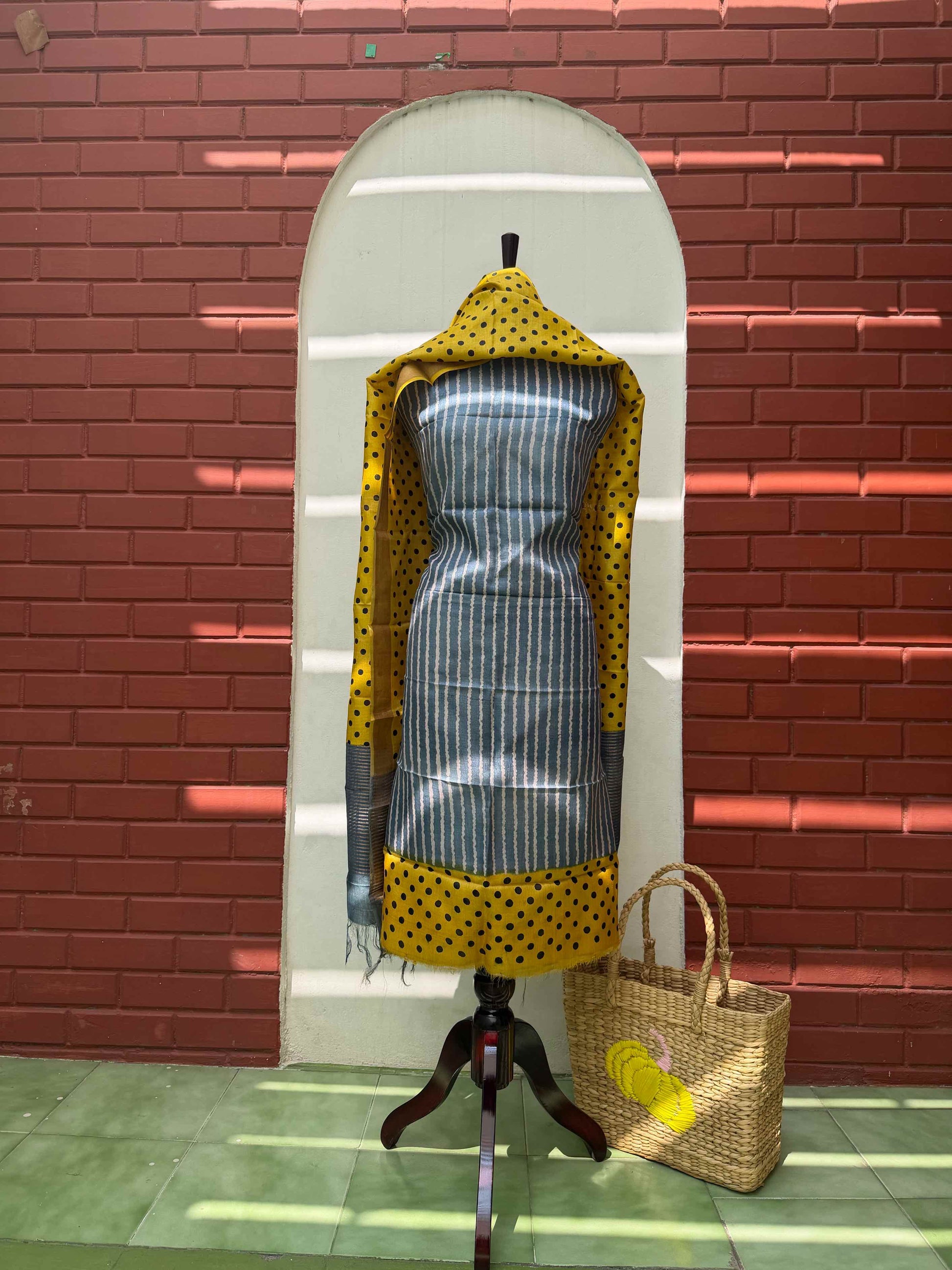 Tussar silk, with its rich texture and natural sheen, brings a unique elegance to any outfit. When crafted into a salwar set, its beauty truly shines. Its flowing silhouette drapes gracefully, accentuating the curves with understated allure. The fabric's natural texture adds depth and character, making every movement a mesmerizing display of grace.