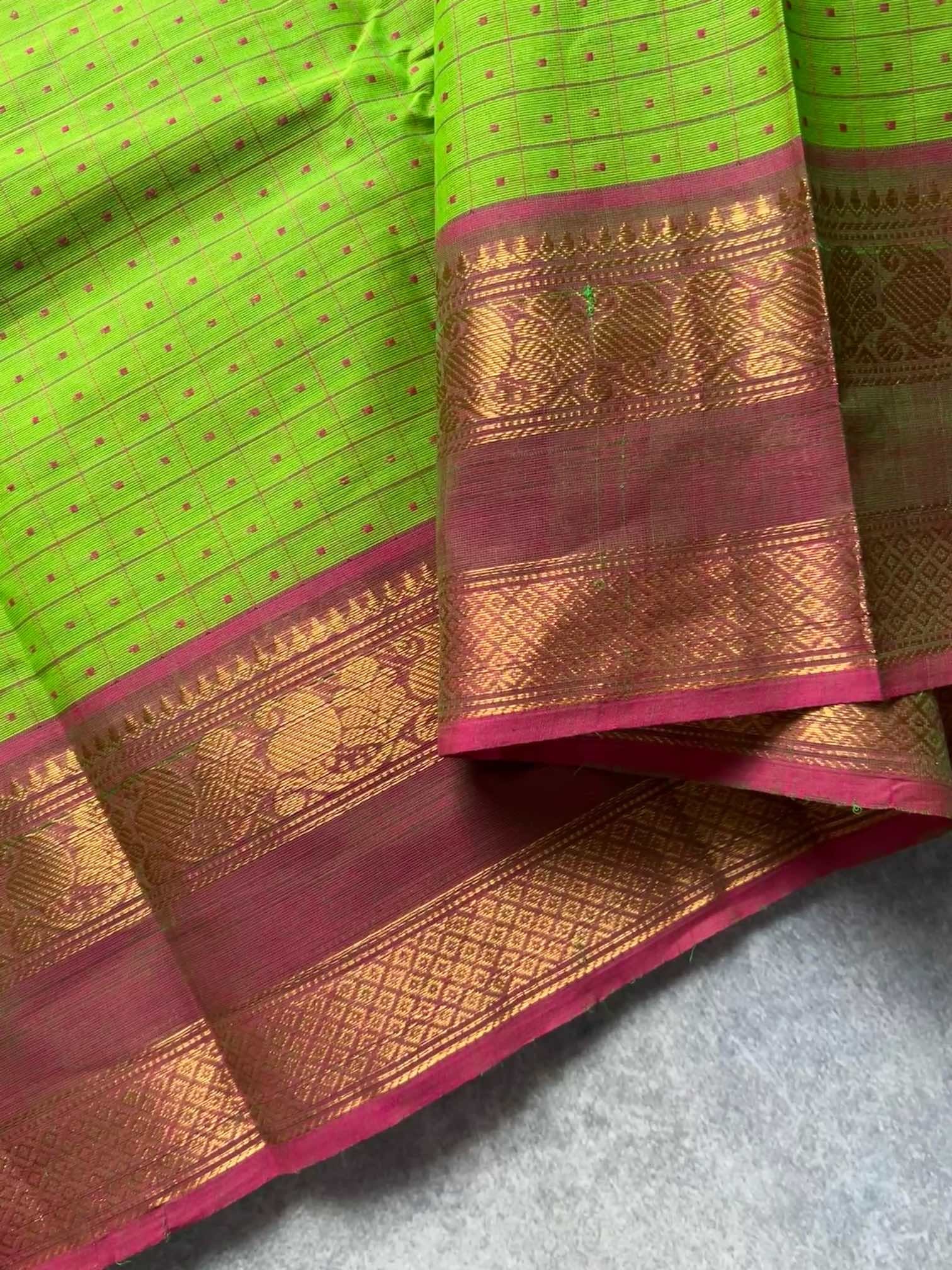 Chettinad cotton is a marvel of simplicity and elegance. Its beauty lies in its fine craftsmanship, intricate weaves, and vibrant colors that capture the essence of South Indian culture. The lightweight and breathable fabric not only exude grace but also offer comfort, making it perfect for the warm climates of the region. Each piece tells a story of tradition and heritage, reflecting the timeless allure of Chettinad cotton.