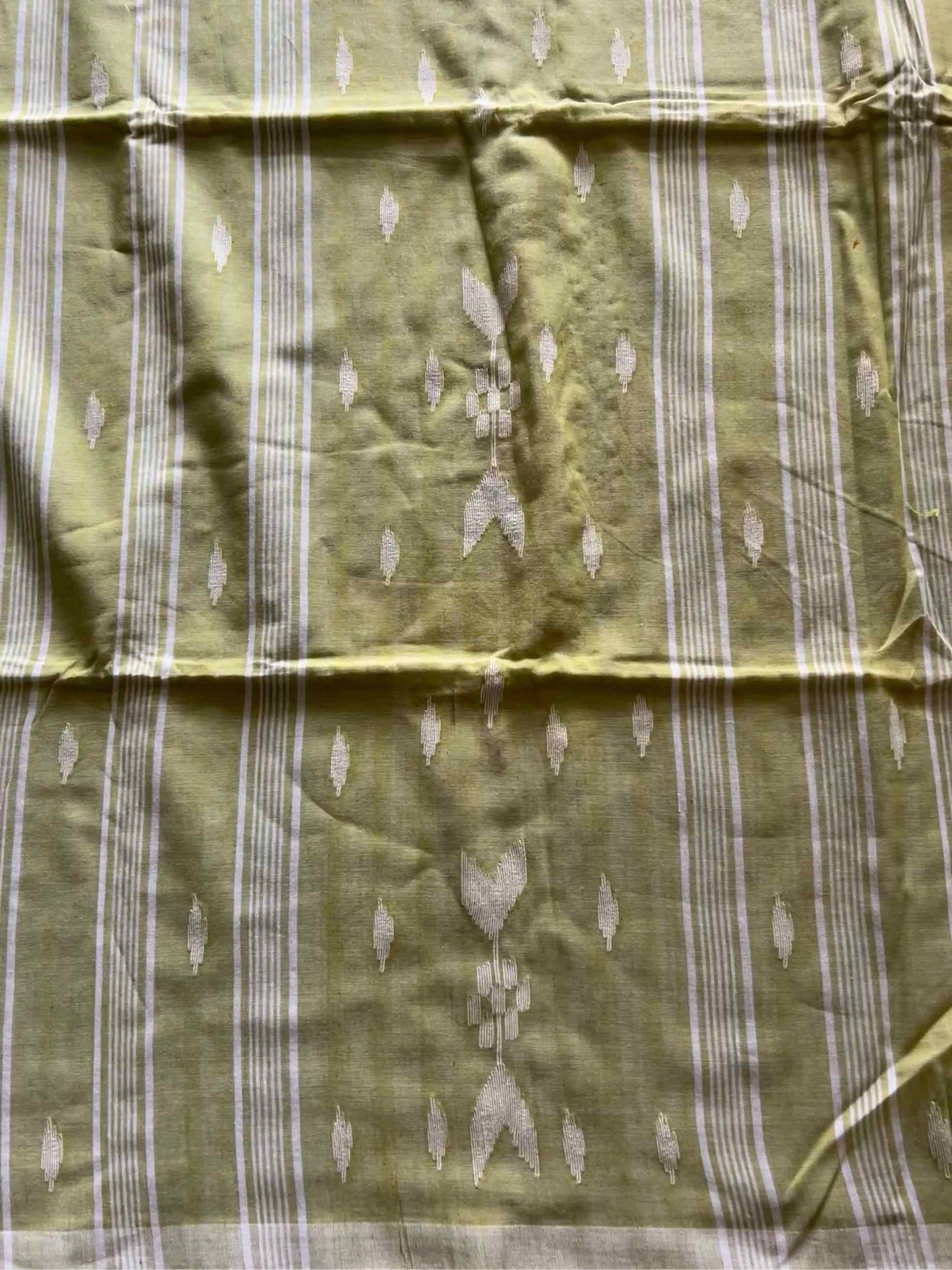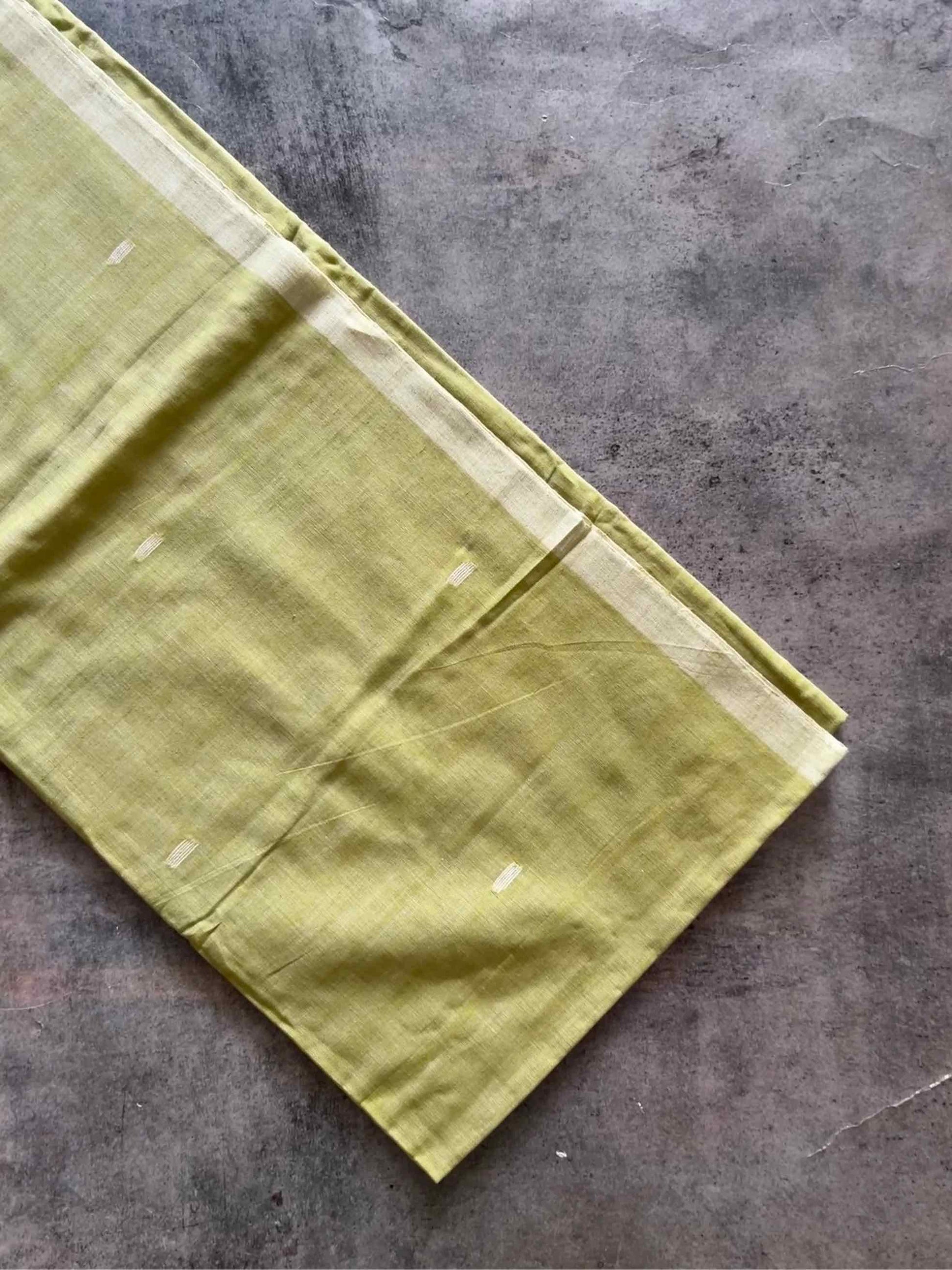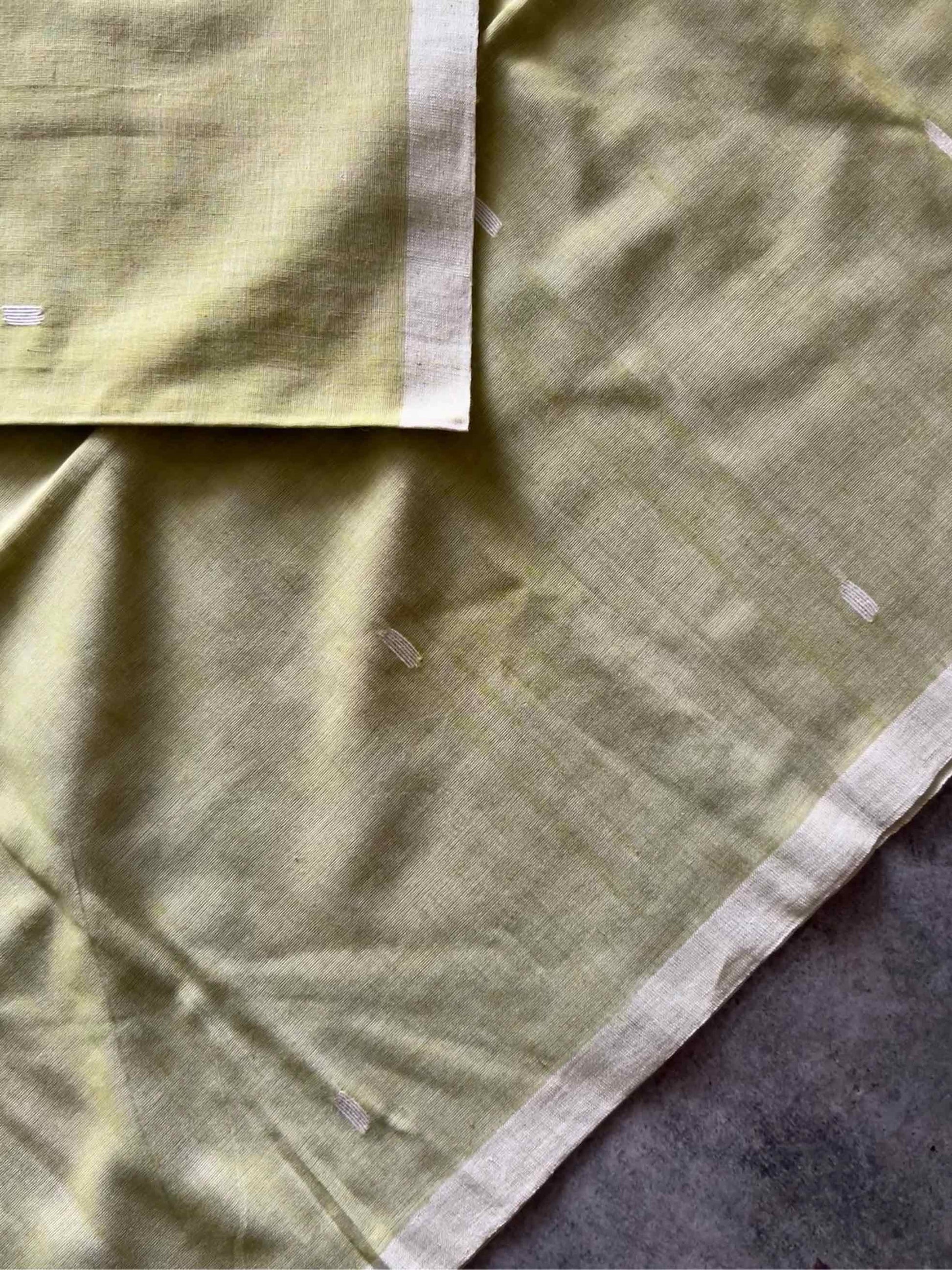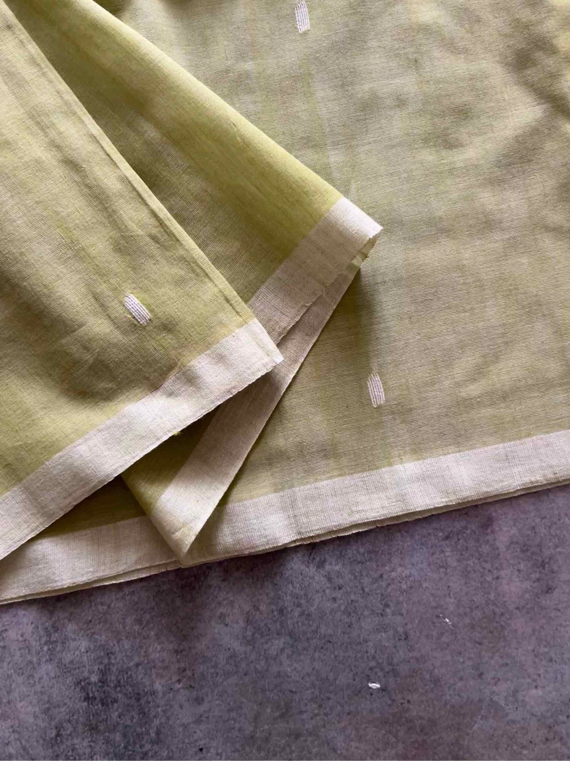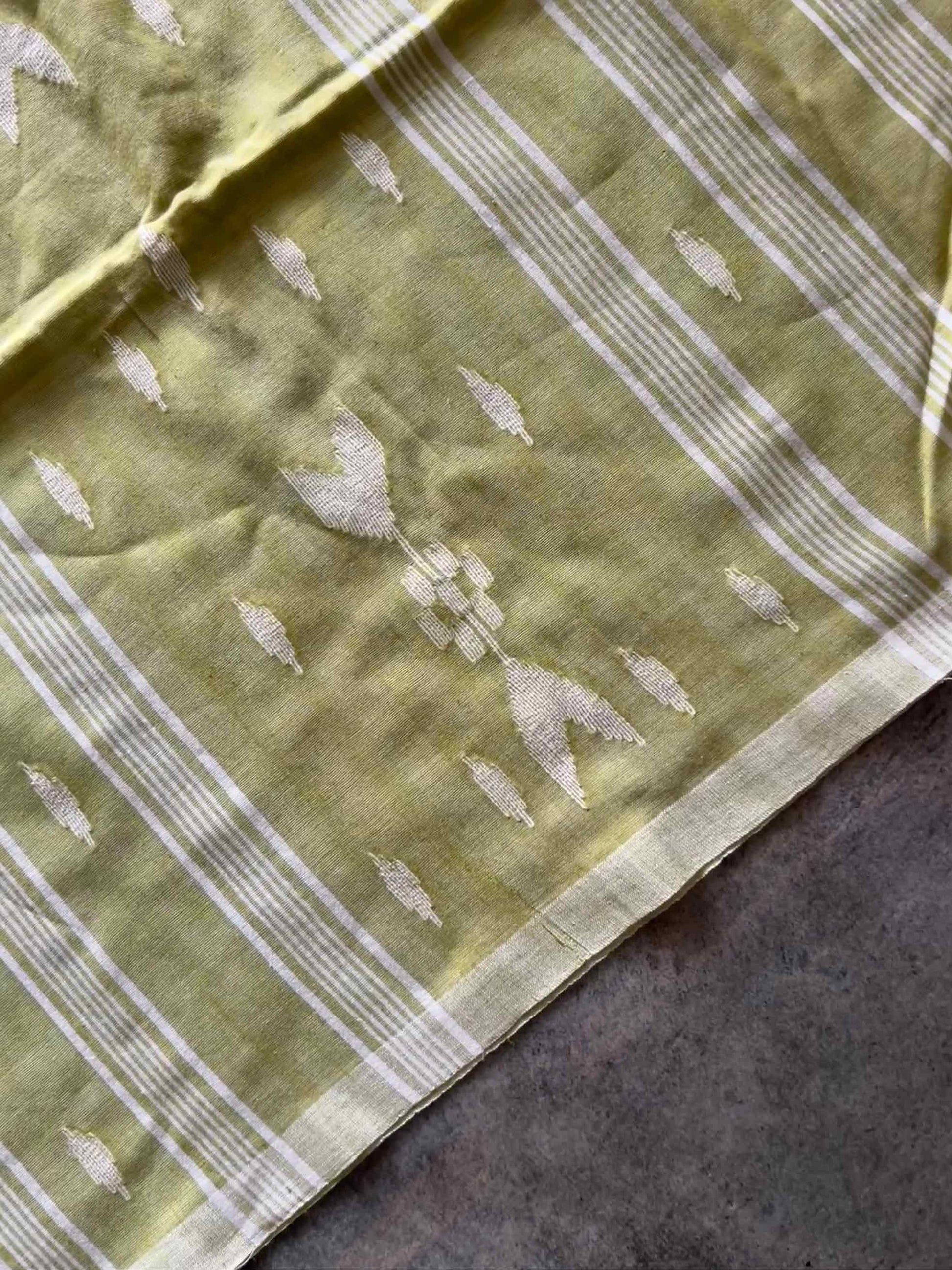 Mul cotton, often called “mulmul,” is known for its feather-light, breathable texture that drapes effortlessly. When paired with the intricate artistry of the Jamdhani weave, it becomes a canvas of heritage and elegance. The delicate, handwoven motifs – often floral or geometric – appear to float on the fabric, telling stories of tradition with every thread.