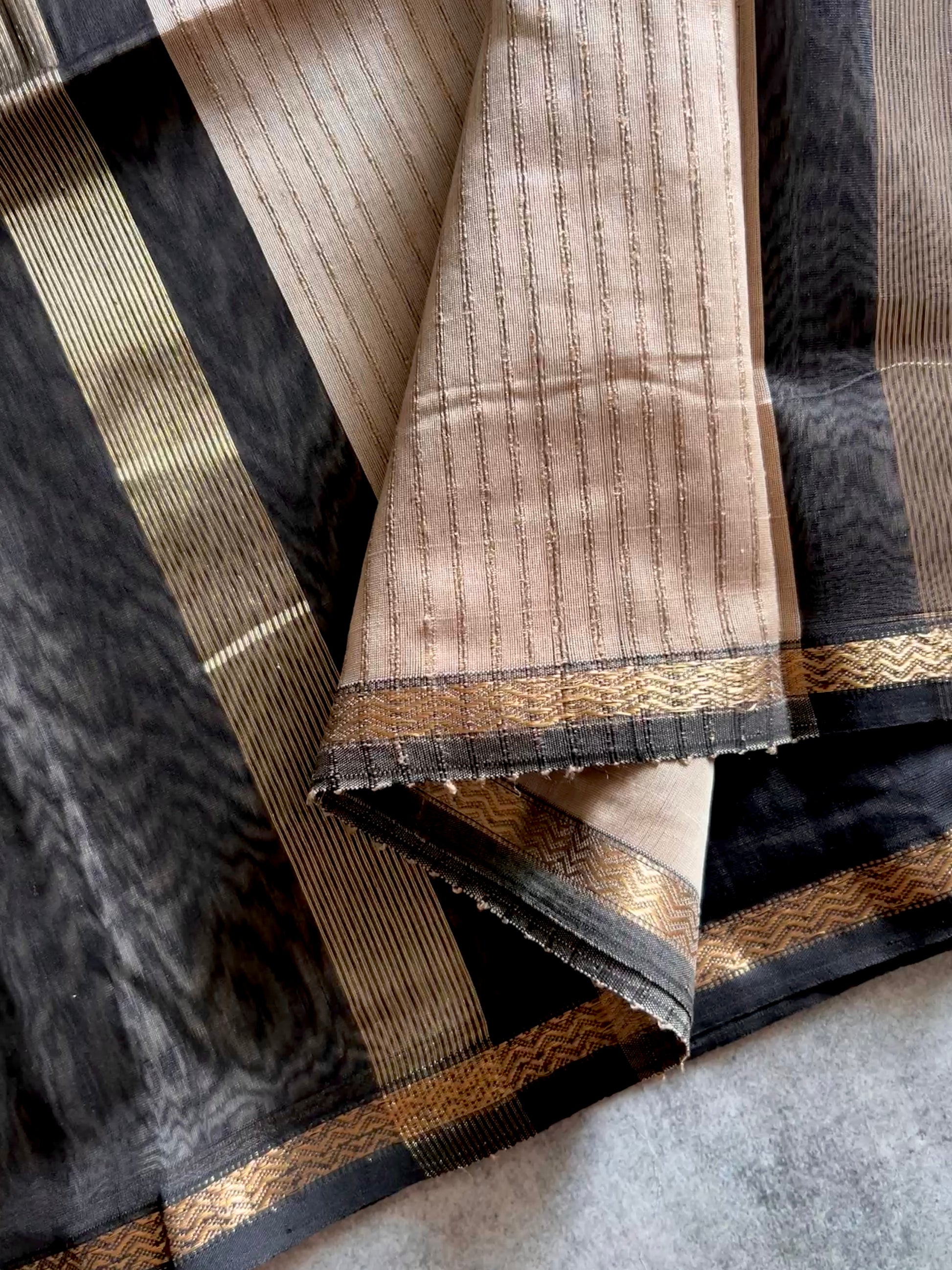 Maheswari silk cotton is known for its exquisite blend of elegance and comfort. The silk adds a luxurious sheen and drape, while the cotton provides breathability and softness. The border, often intricately woven with metallic threads, adds a touch of opulence and sophistication. This blend creates a visually striking and versatile textile that balances traditional charm with modern sensibility, making it ideal for both festive occasions and refined everyday wear.