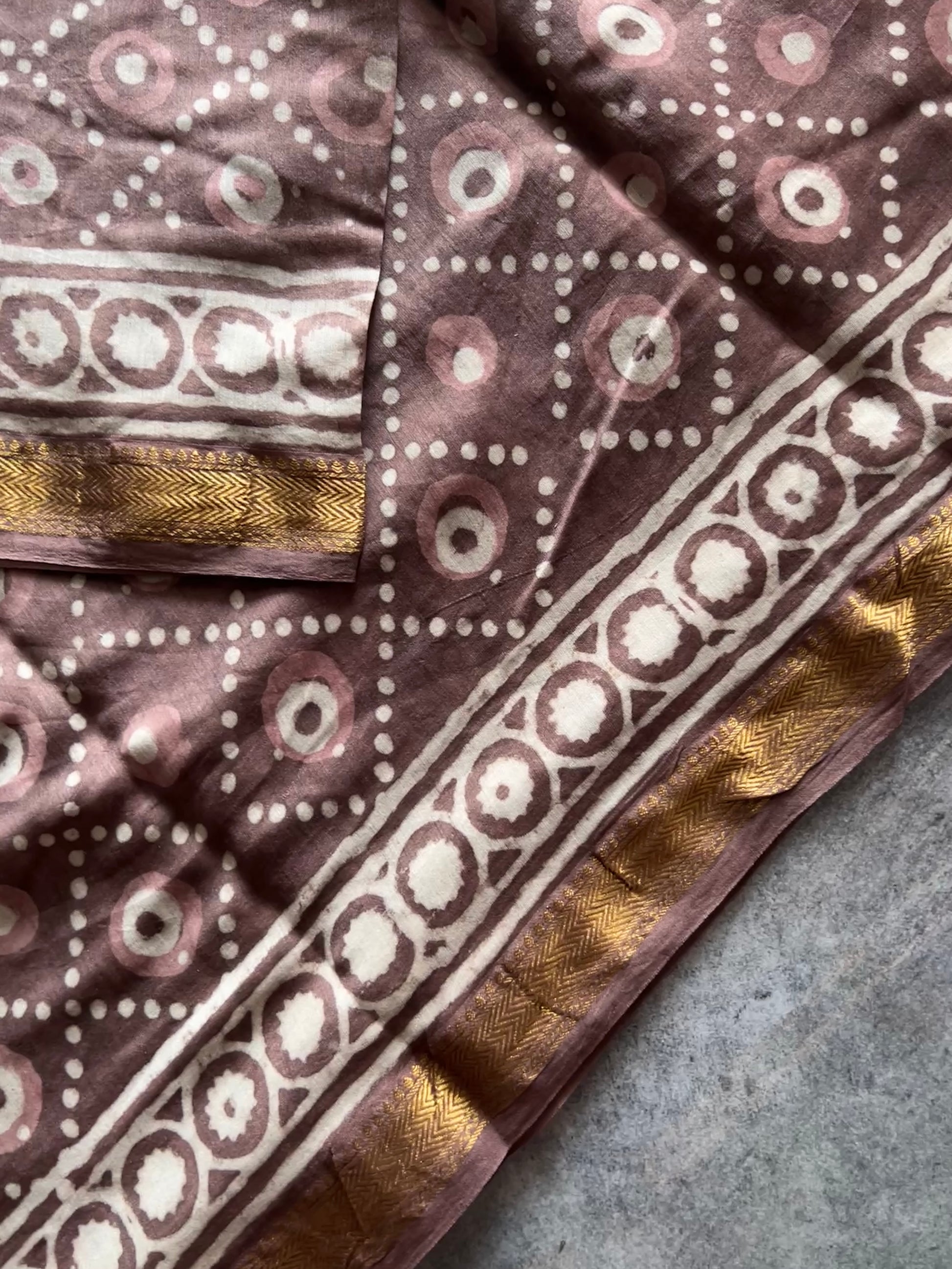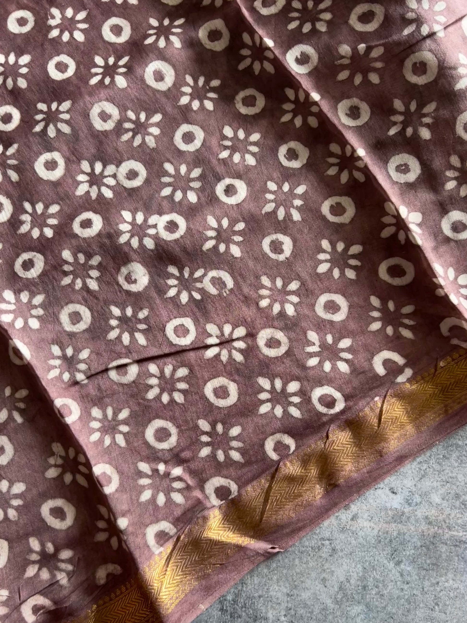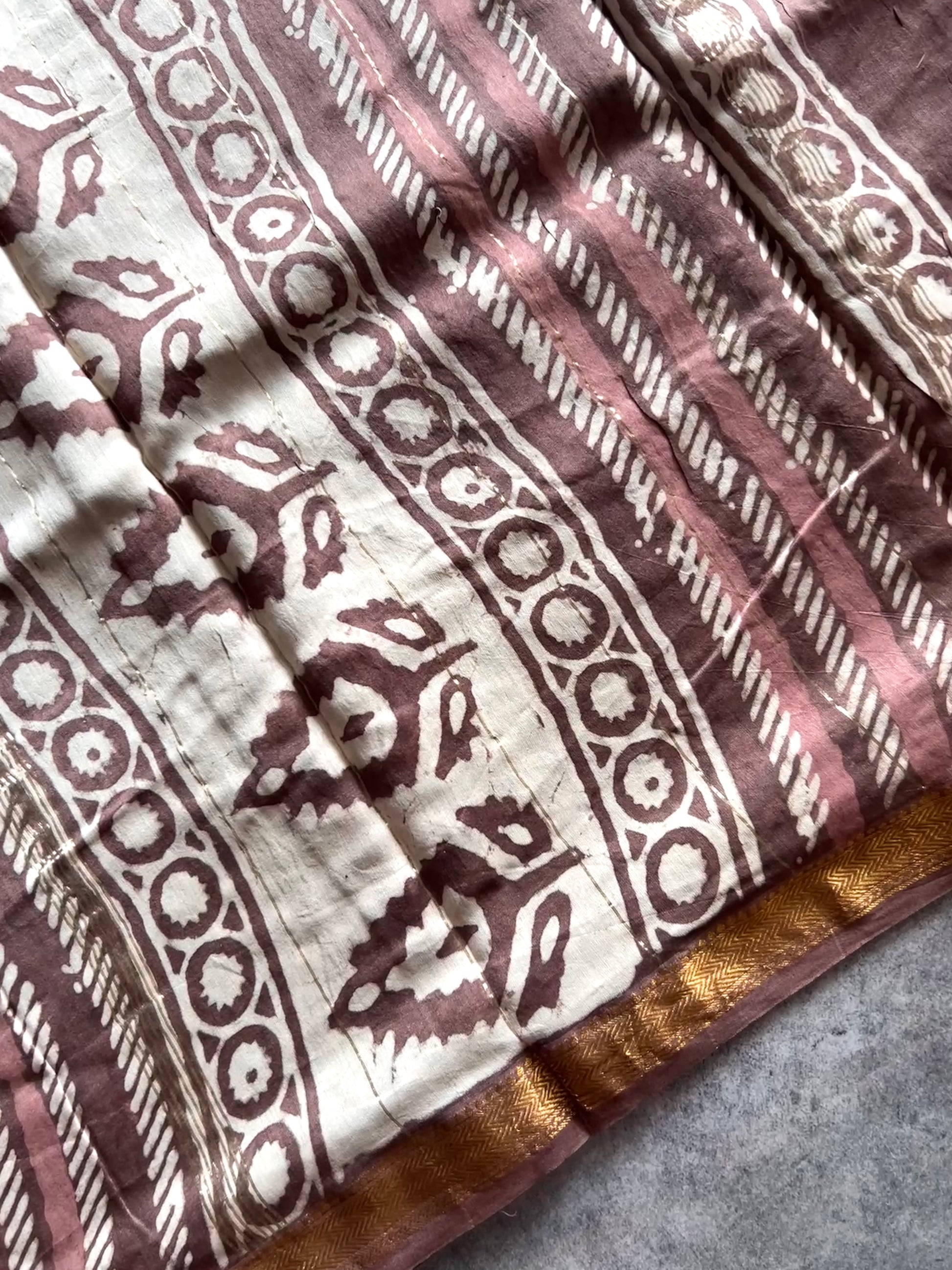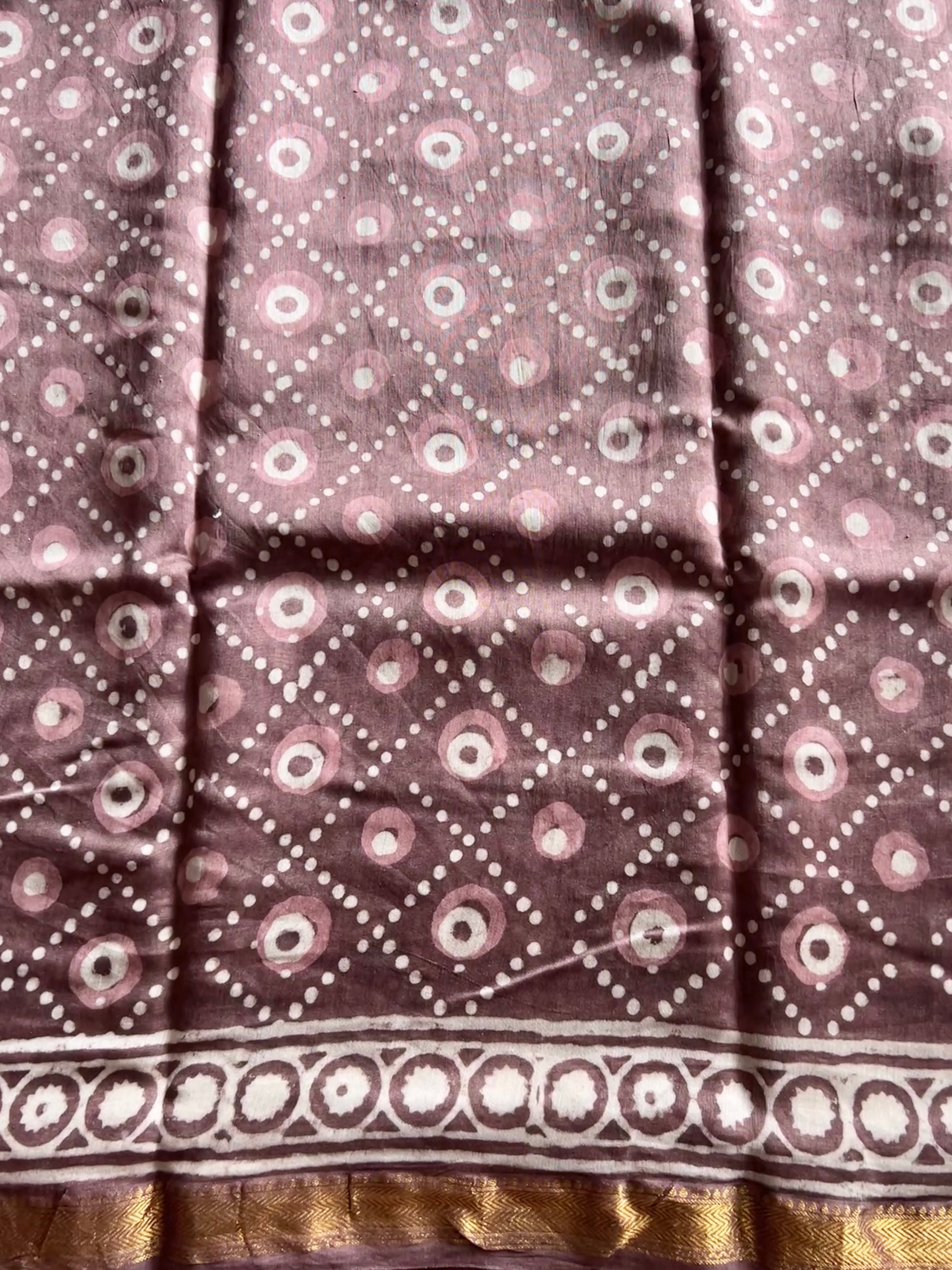 Elegant and classy handblock printed maheswari cotton silk saree. These exquisite pieces are very comfortable to wear and feels extremely soft and classy when draped.