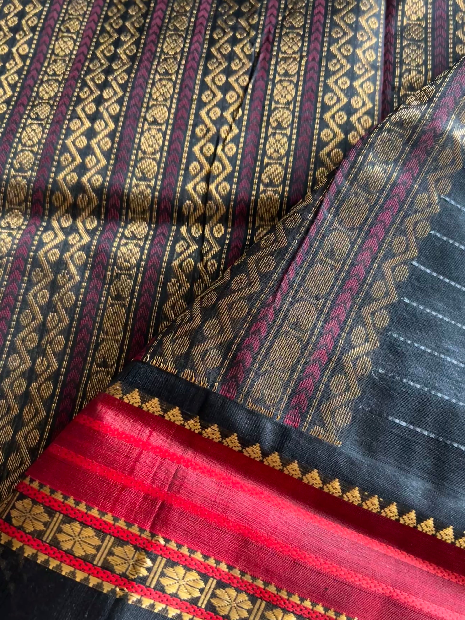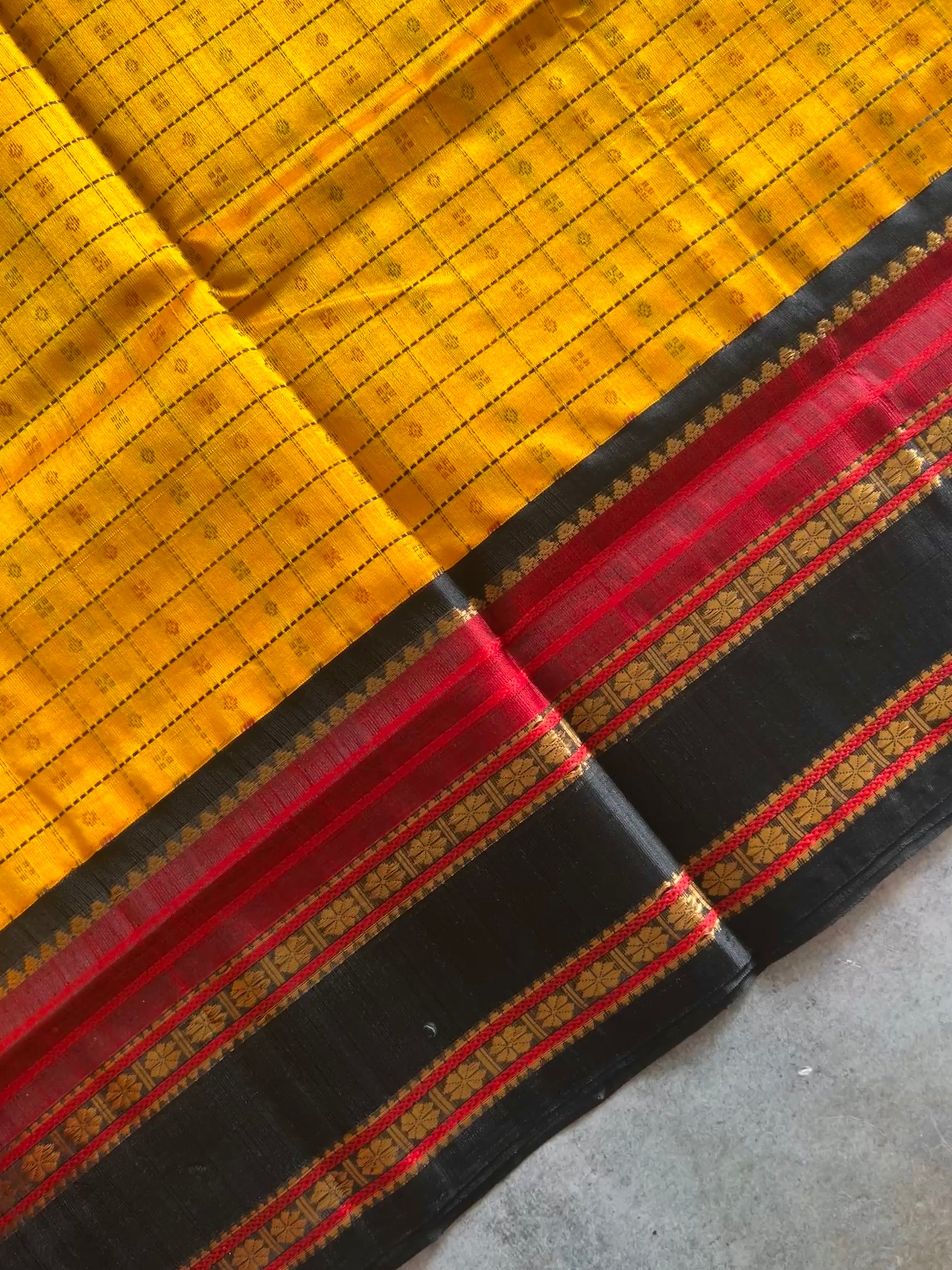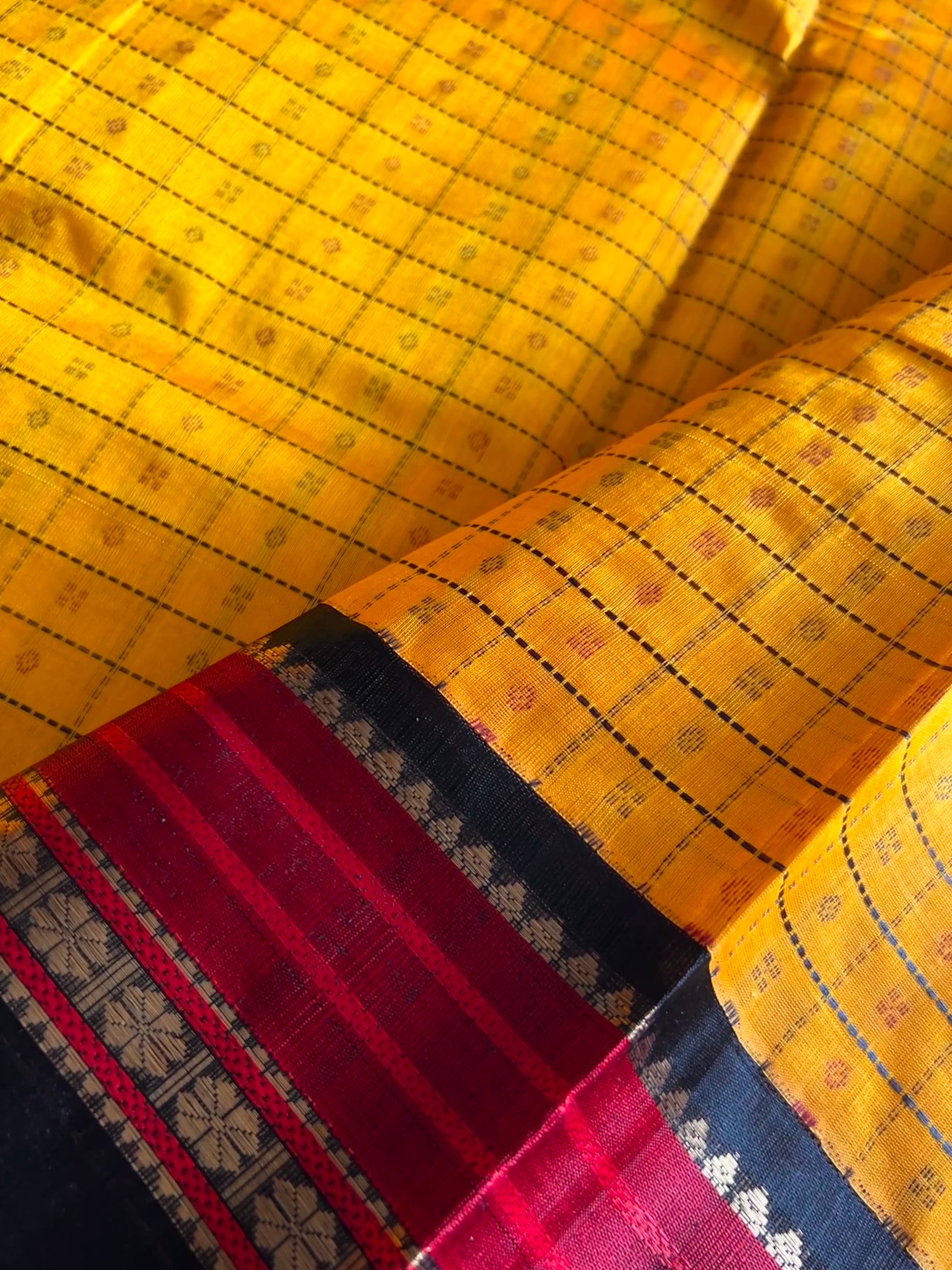 Known for their unique lightweight and breathable quality, the Kanchi silk cotton sarees are soft, comfortable, easy to carry and wrinkle-free. The fabric glistens because of its fine quality. The subtle shine of this saree makes it a distinctive ethnic wear especially in parties and traditional occasions.