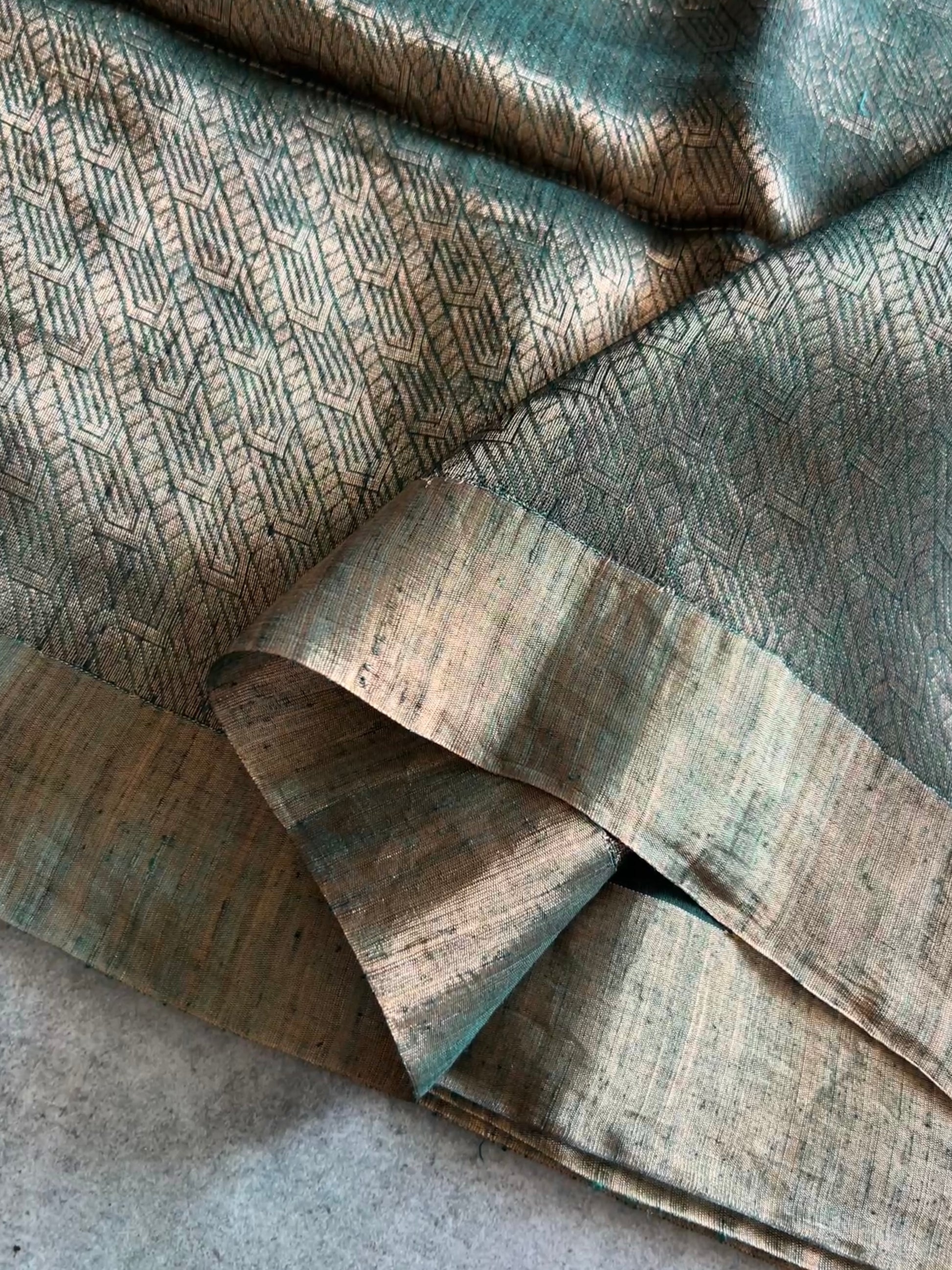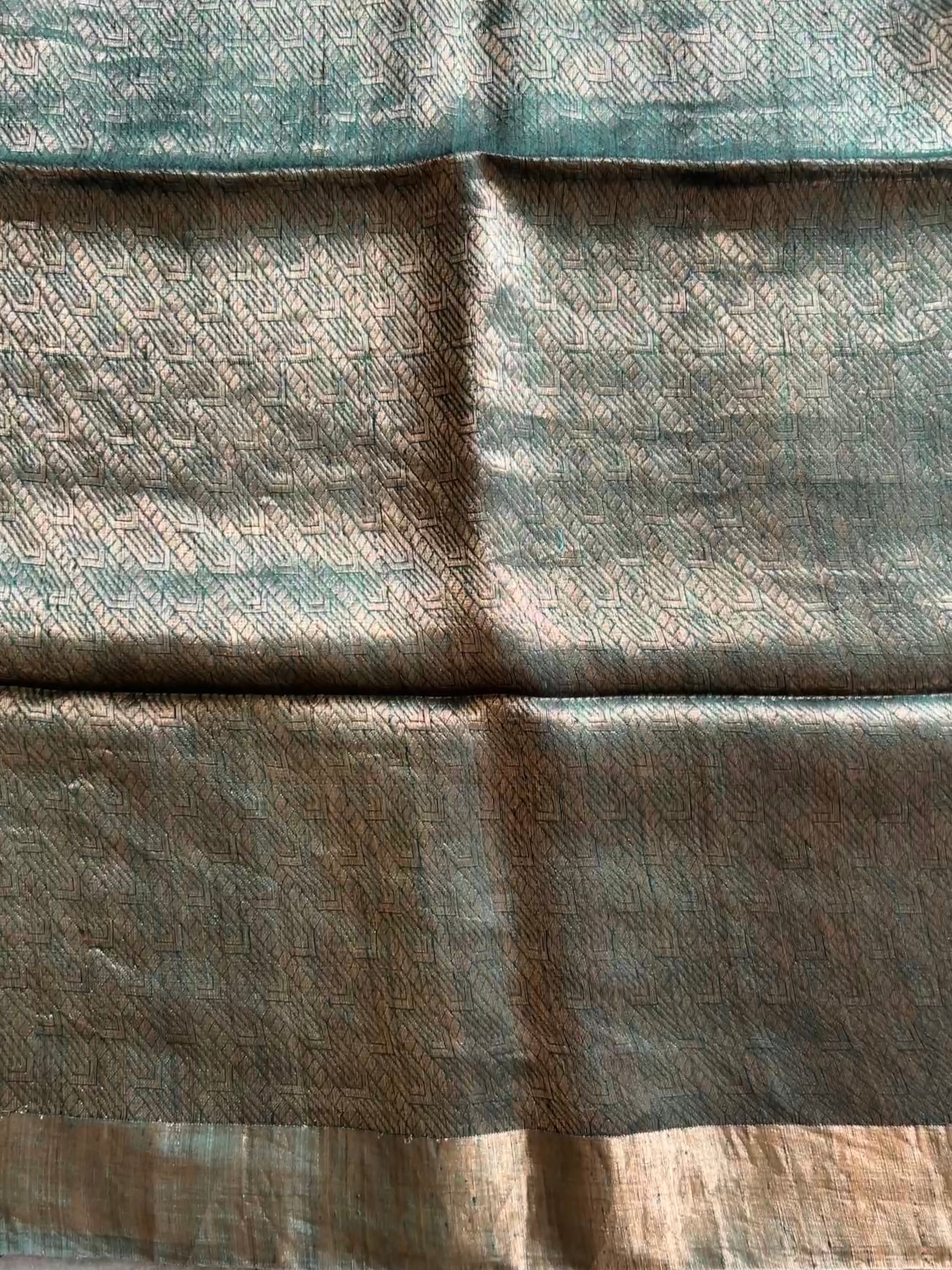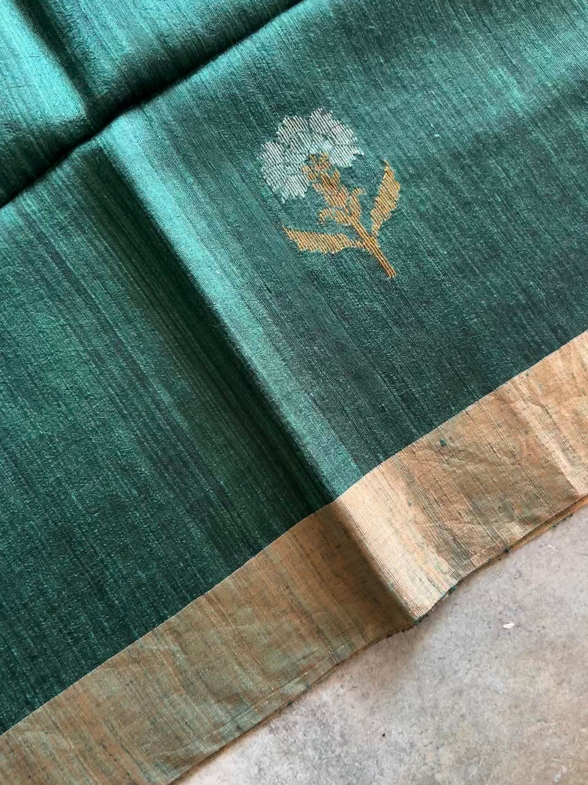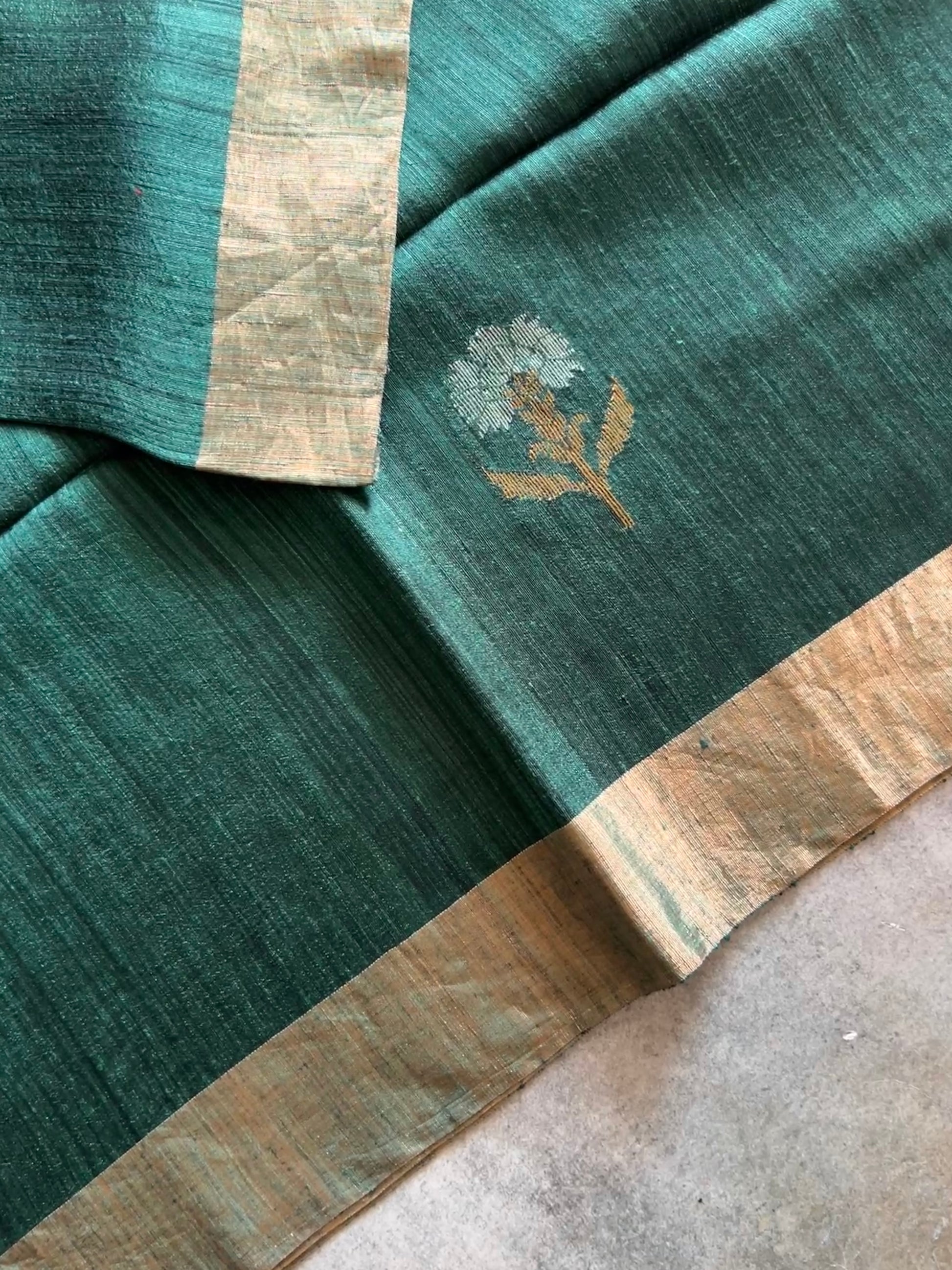 The textured richness of matka silk lends a natural, earthy charm, while the floral buttas add a graceful, feminine touch. The understated border frames the drape beautifully, and the zari pallu introduces a hint of opulence, making it perfect for both traditional occasions and artistic fashion statements. It's a saree that speaks softly but leaves a lasting impression.