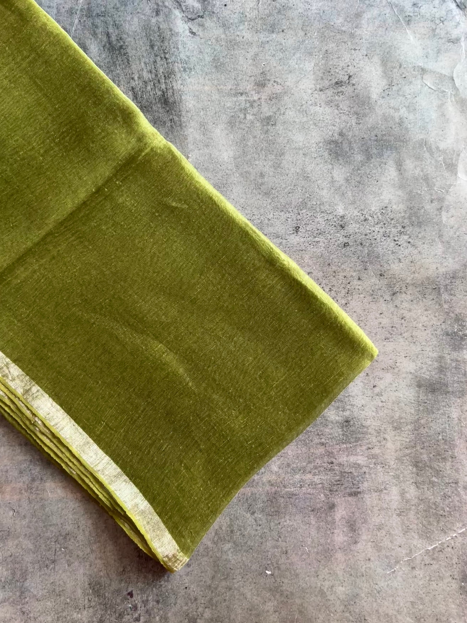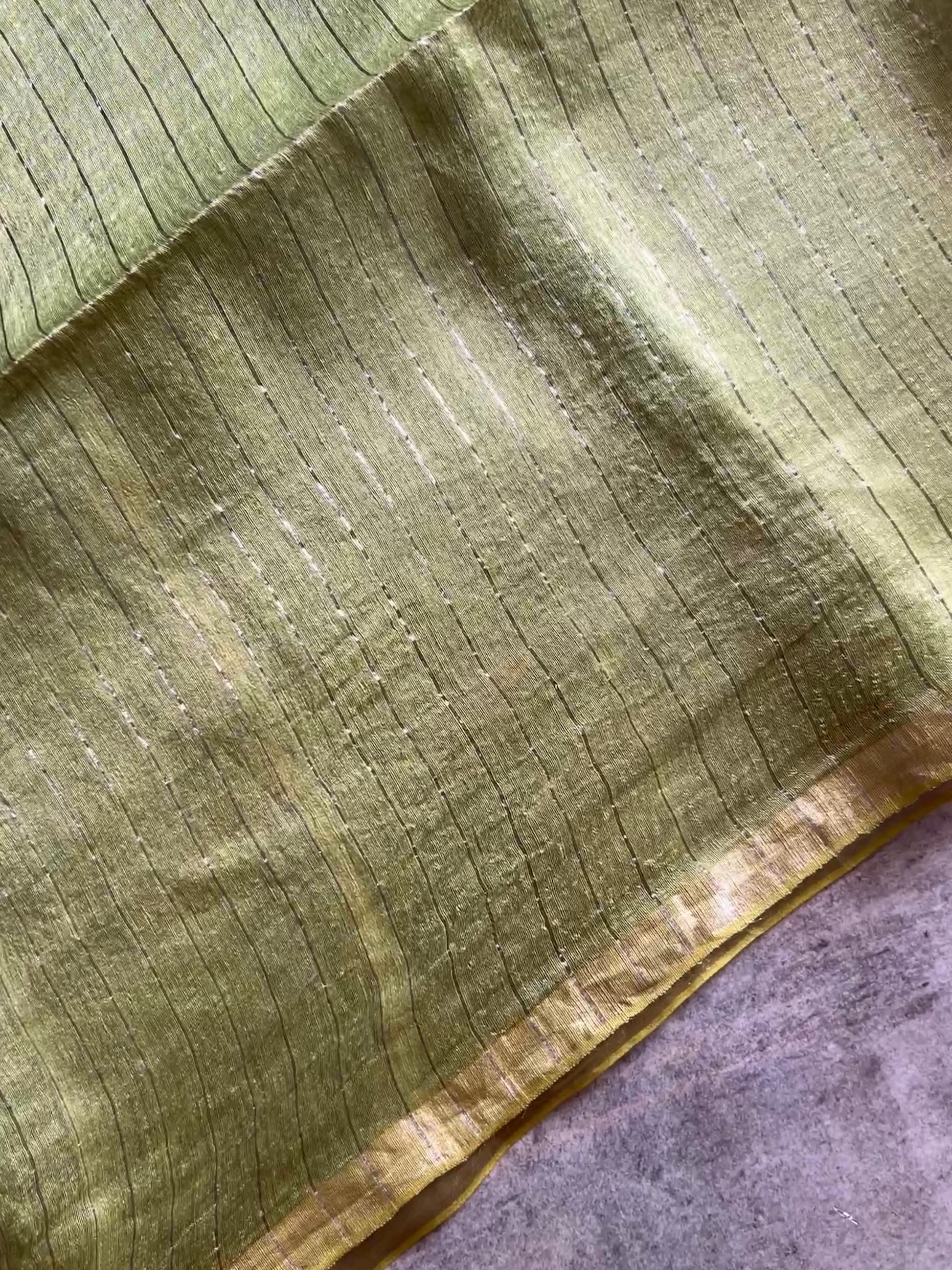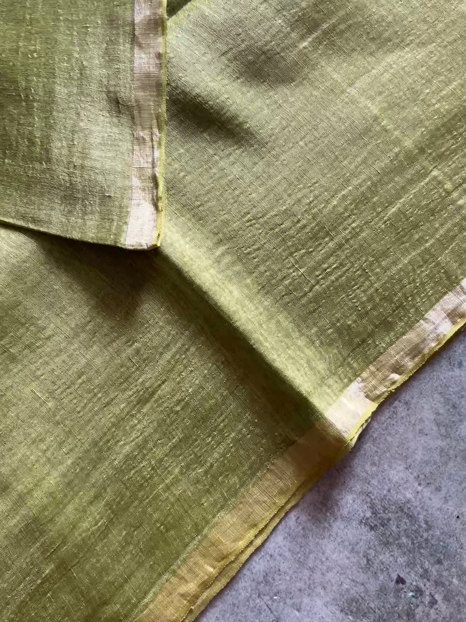 The linen silk fabric brings a perfect balance of softness and sheen, offering a lightweight yet luxurious feel. The Jamdhani work on the muslin pallu adds intricate, traditional handwoven motifs, elevating the saree with timeless beauty and cultural heritage. The gini work scattered across the saree adds a touch of opulence, with delicate metallic embroidery that catches the light. Together, these elements create a saree that exudes elegance, sophistication, and intricate craftsmanship, making it a stunning choice for special occasions.