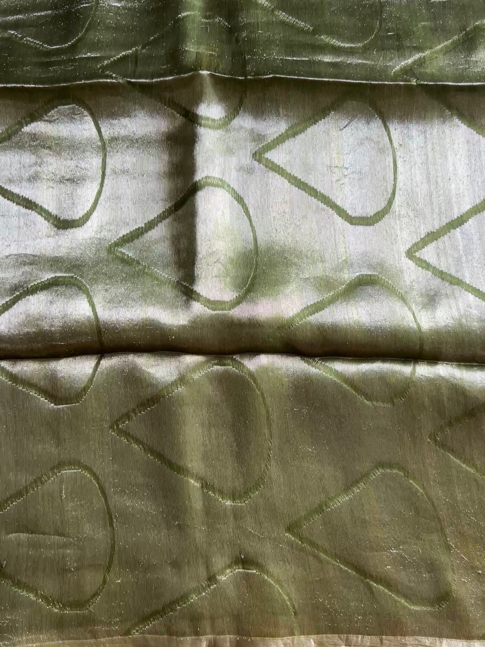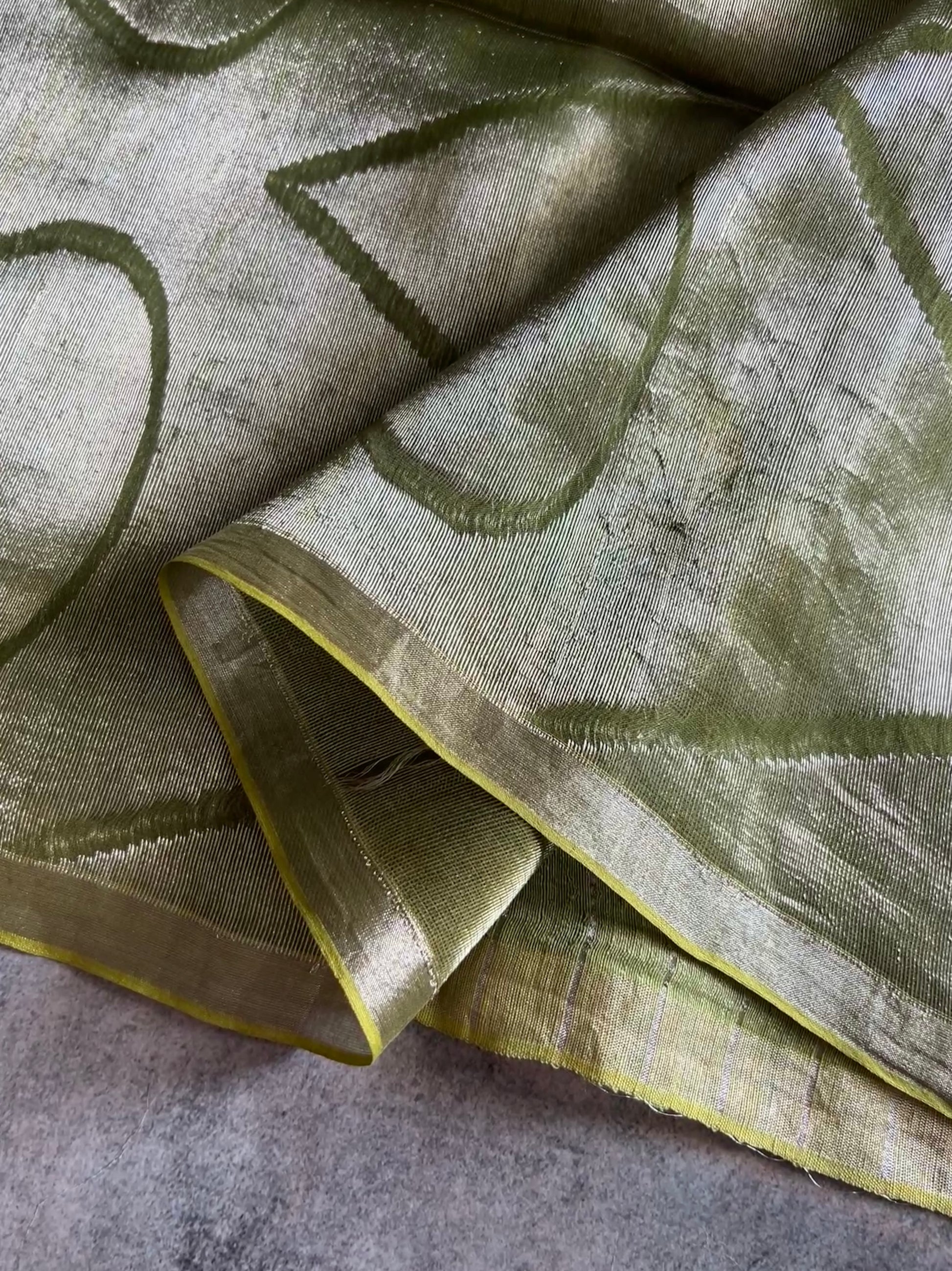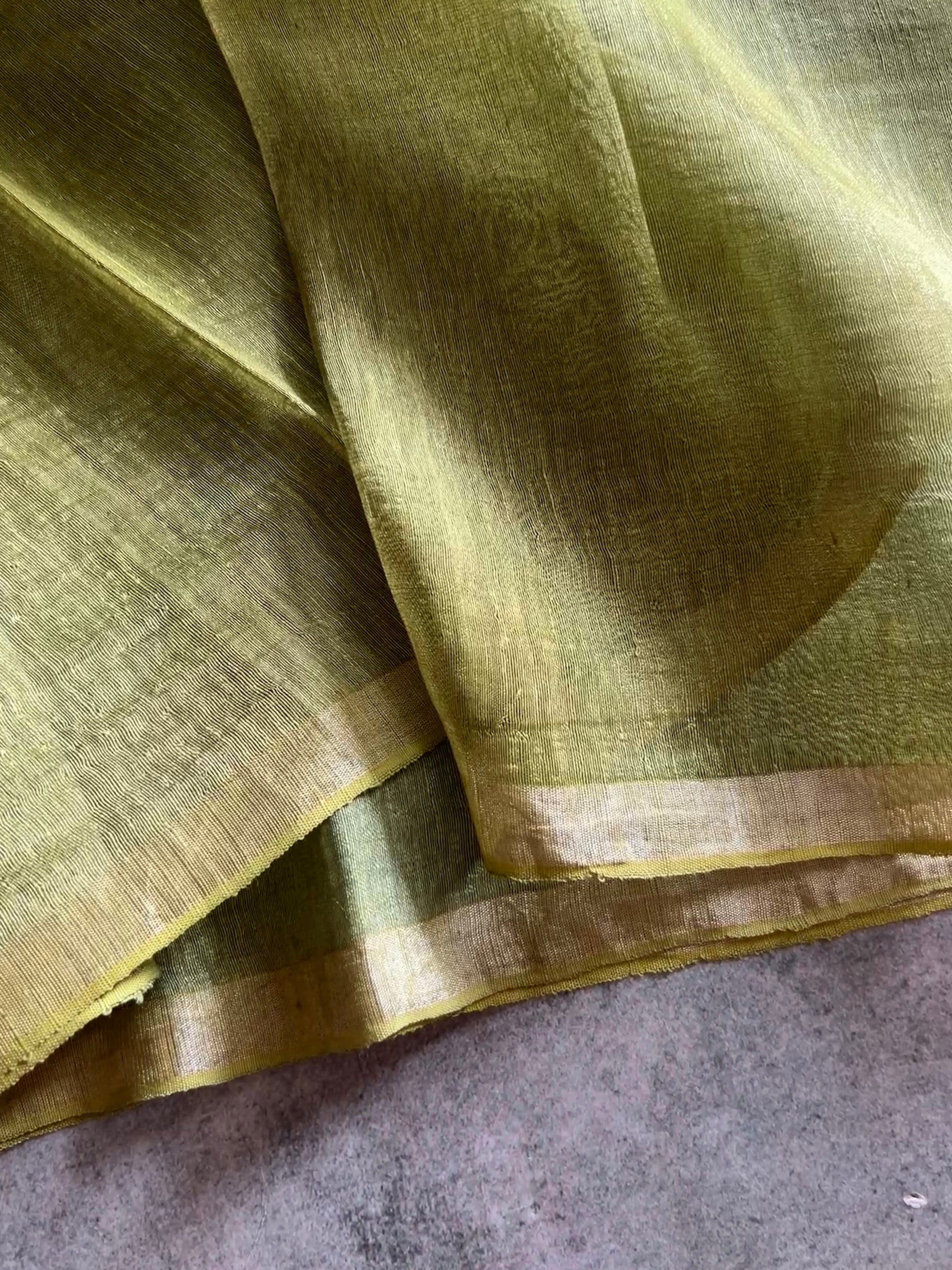 The linen silk fabric brings a perfect balance of softness and sheen, offering a lightweight yet luxurious feel. The Jamdhani work on the muslin pallu adds intricate, traditional handwoven motifs, elevating the saree with timeless beauty and cultural heritage. The gini work scattered across the saree adds a touch of opulence, with delicate metallic embroidery that catches the light. Together, these elements create a saree that exudes elegance, sophistication, and intricate craftsmanship, making it a stunning choice for special occasions.