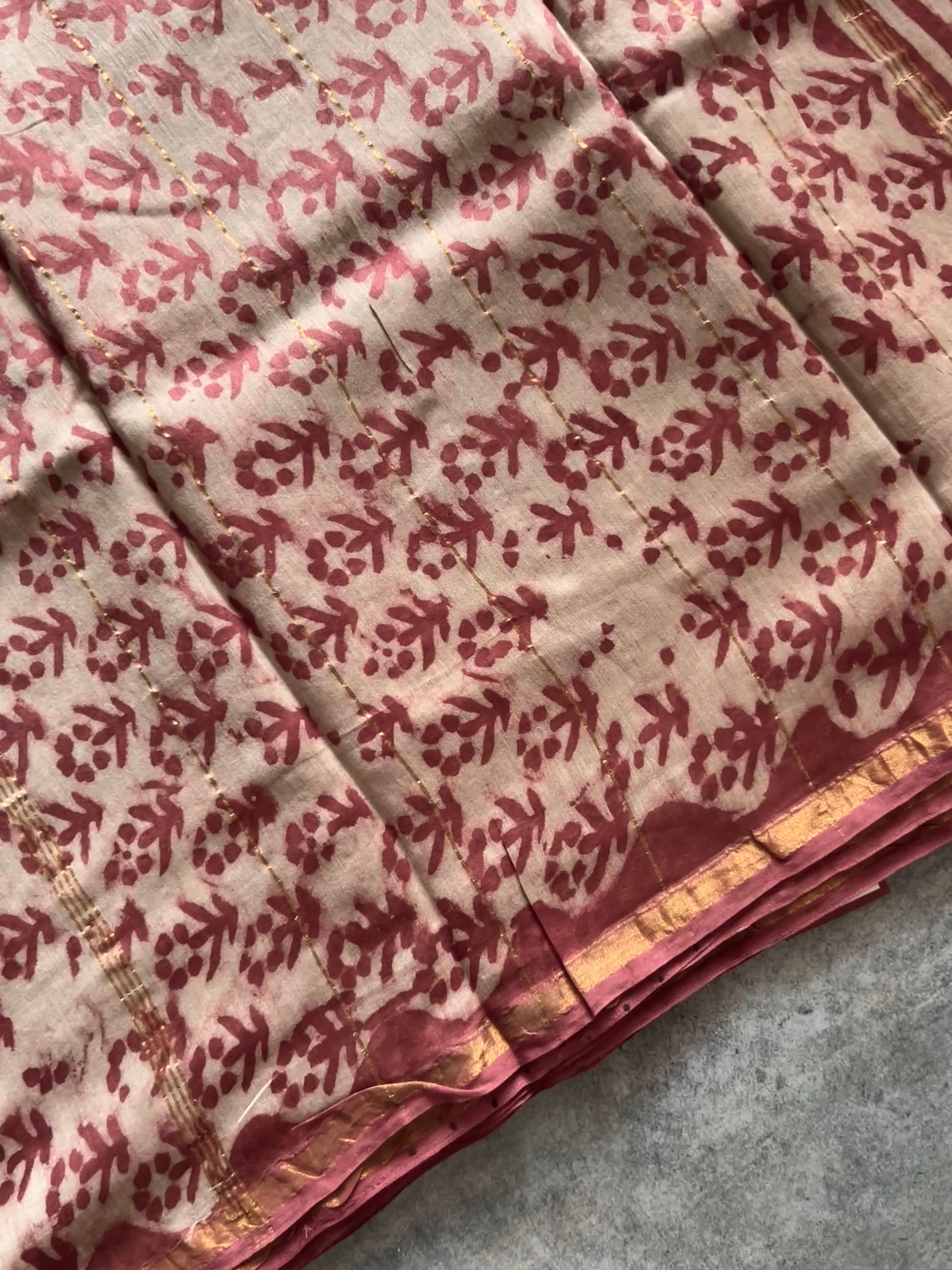 Elegant and classy hand block printed chandheri cotton silk saree. These exquisite pieces are very comfortable to wear and feel extremely soft and classy when draped.