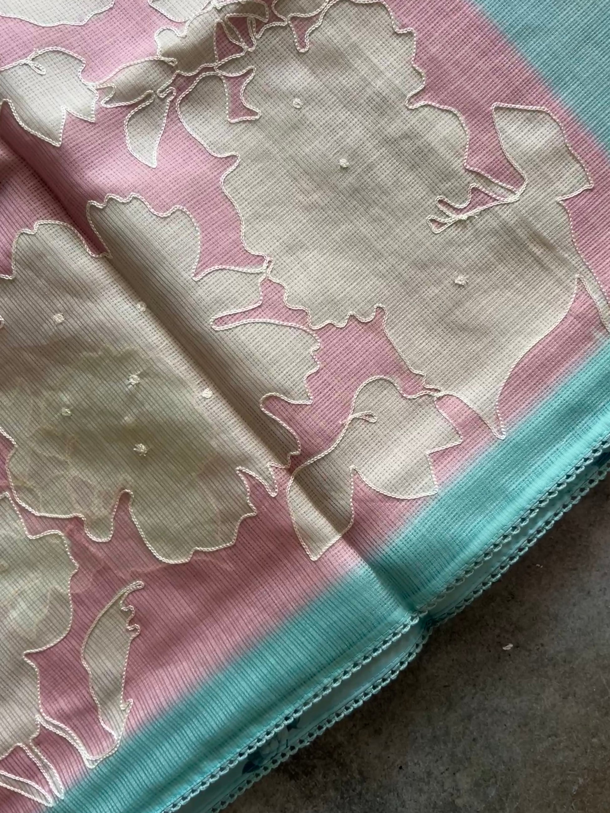 Printed Kota sarees with lace work borders exude a unique blend of simplicity and elegance. The airy, translucent texture of Kota fabric, combined with vibrant prints, creates a refreshing and graceful look. The delicate lace border adds a touch of sophistication, beautifully framing the saree with subtle charm.