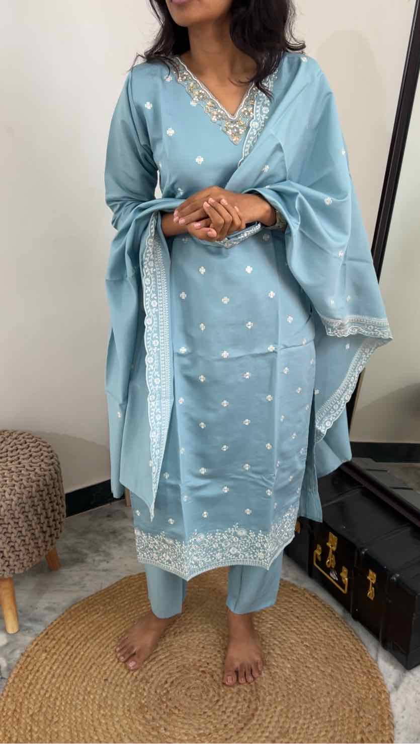 Ready-to-wear salwar sets with a coordinated top, dupatta, and pant bring together comfort and elegance in the most effortless way. The perfectly matched pieces create a polished, graceful look, while the thoughtful designs and flattering silhouettes make them suitable for any occasion. Stylish yet easy to carry, these sets beautifully balance tradition with modern convenience.