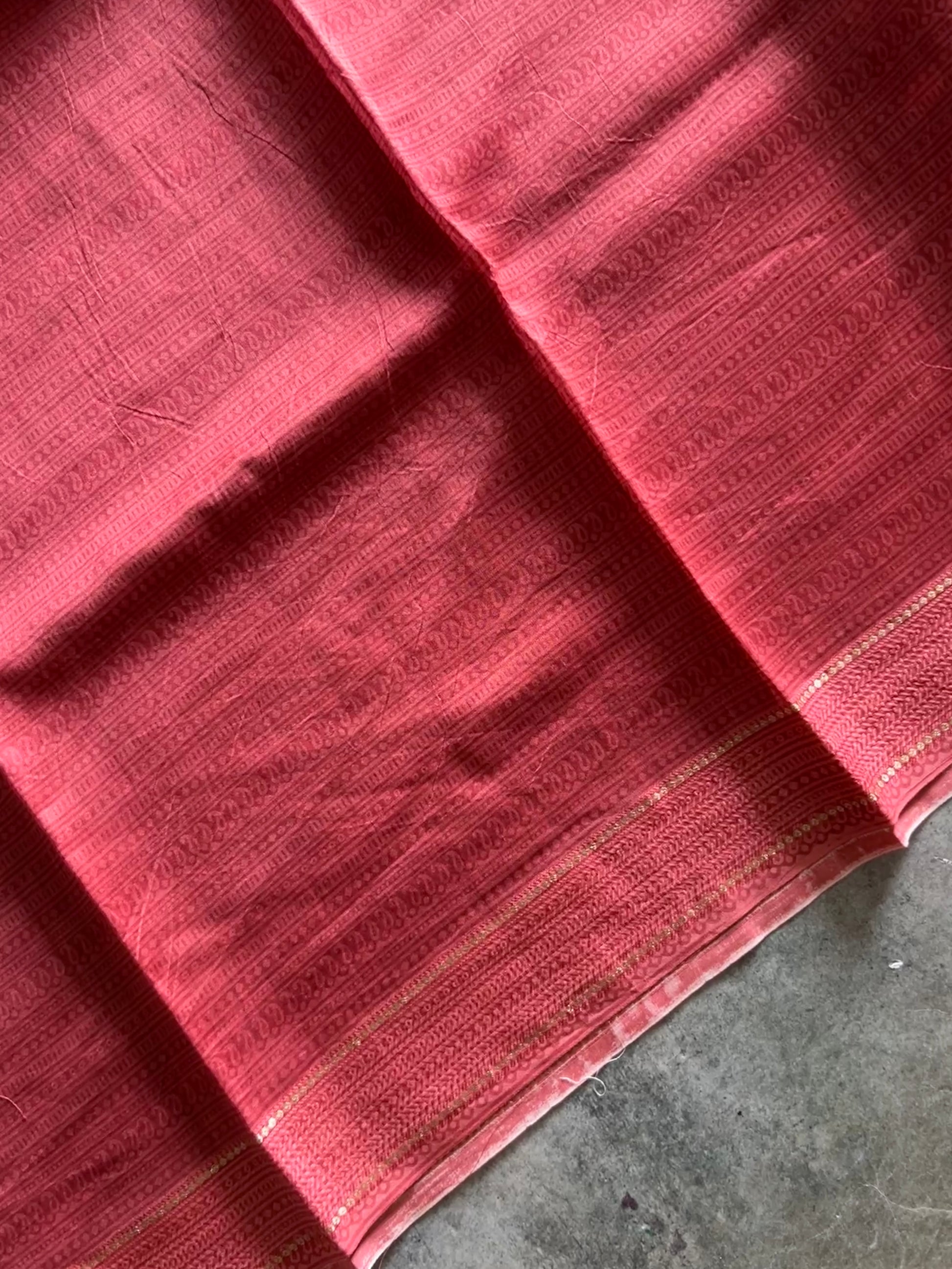 Chanderi butter silk epitomizes elegance and sophistication with its sheer, lightweight texture and natural sheen. This luxurious fabric seamlessly blends traditional charm with contemporary style, making it a timeless choice for any wardrobe. Its breathability and comfort further enhance its appeal, making Chanderi butter silk not just a fabric, but a work of art.