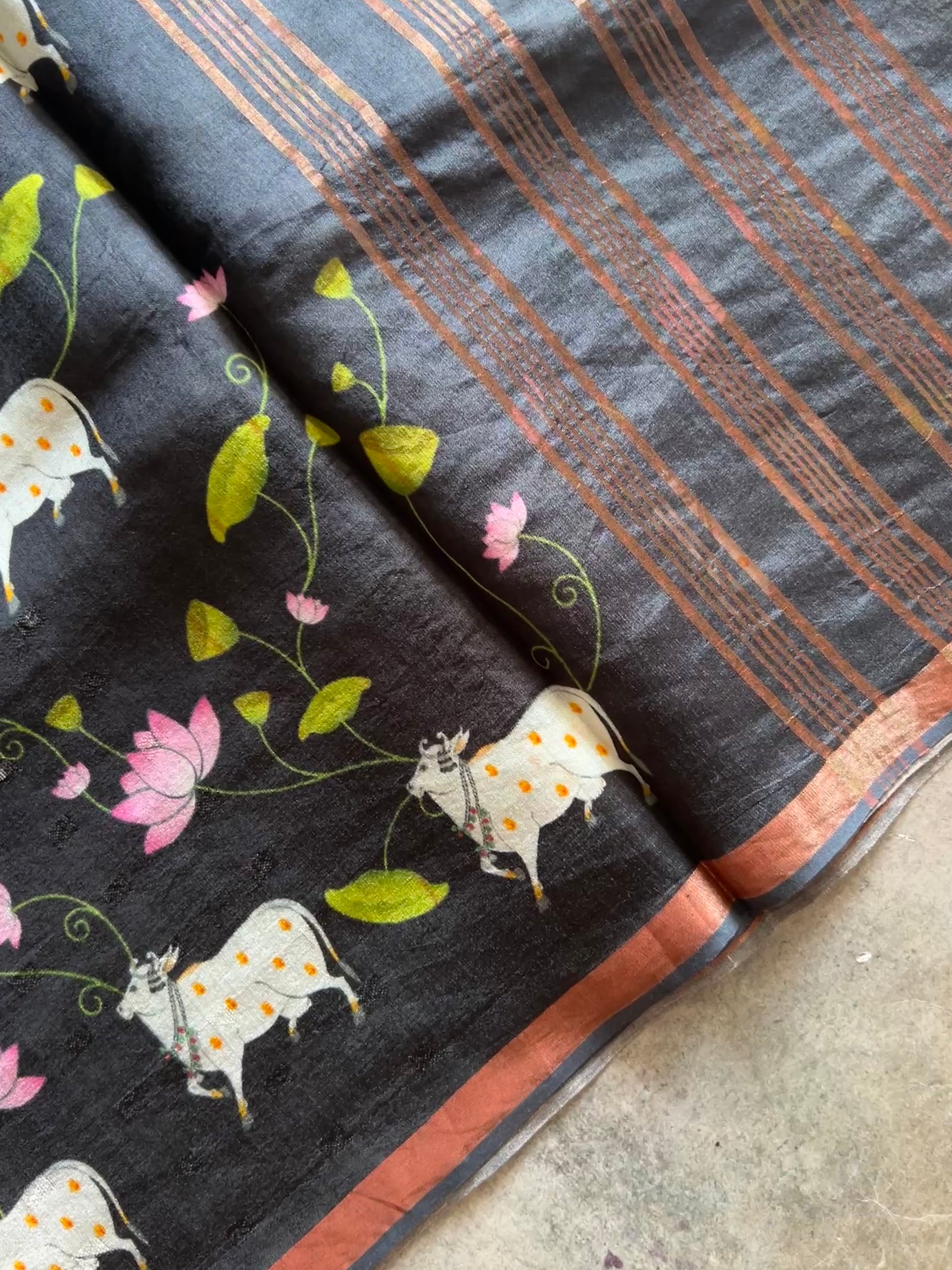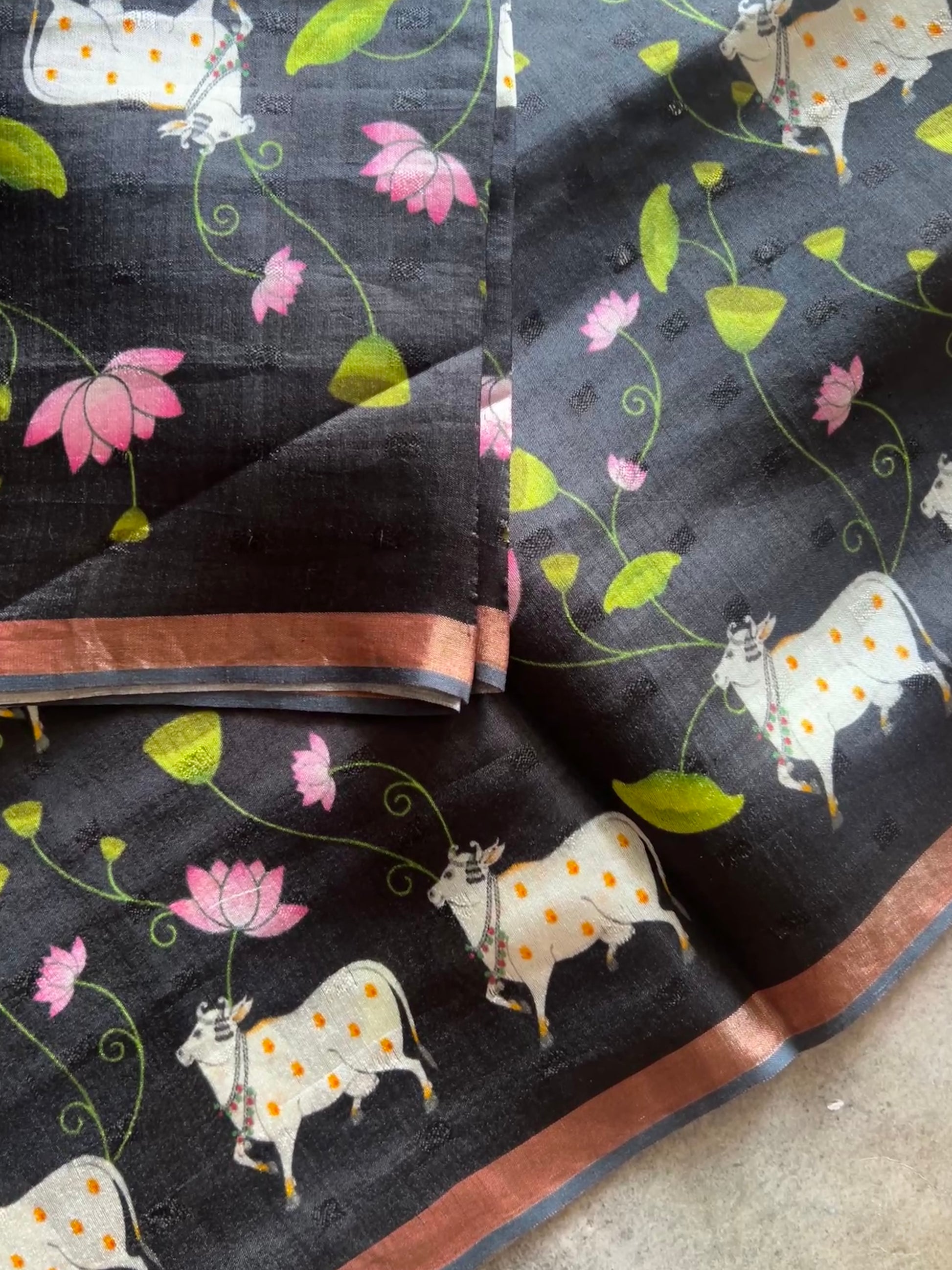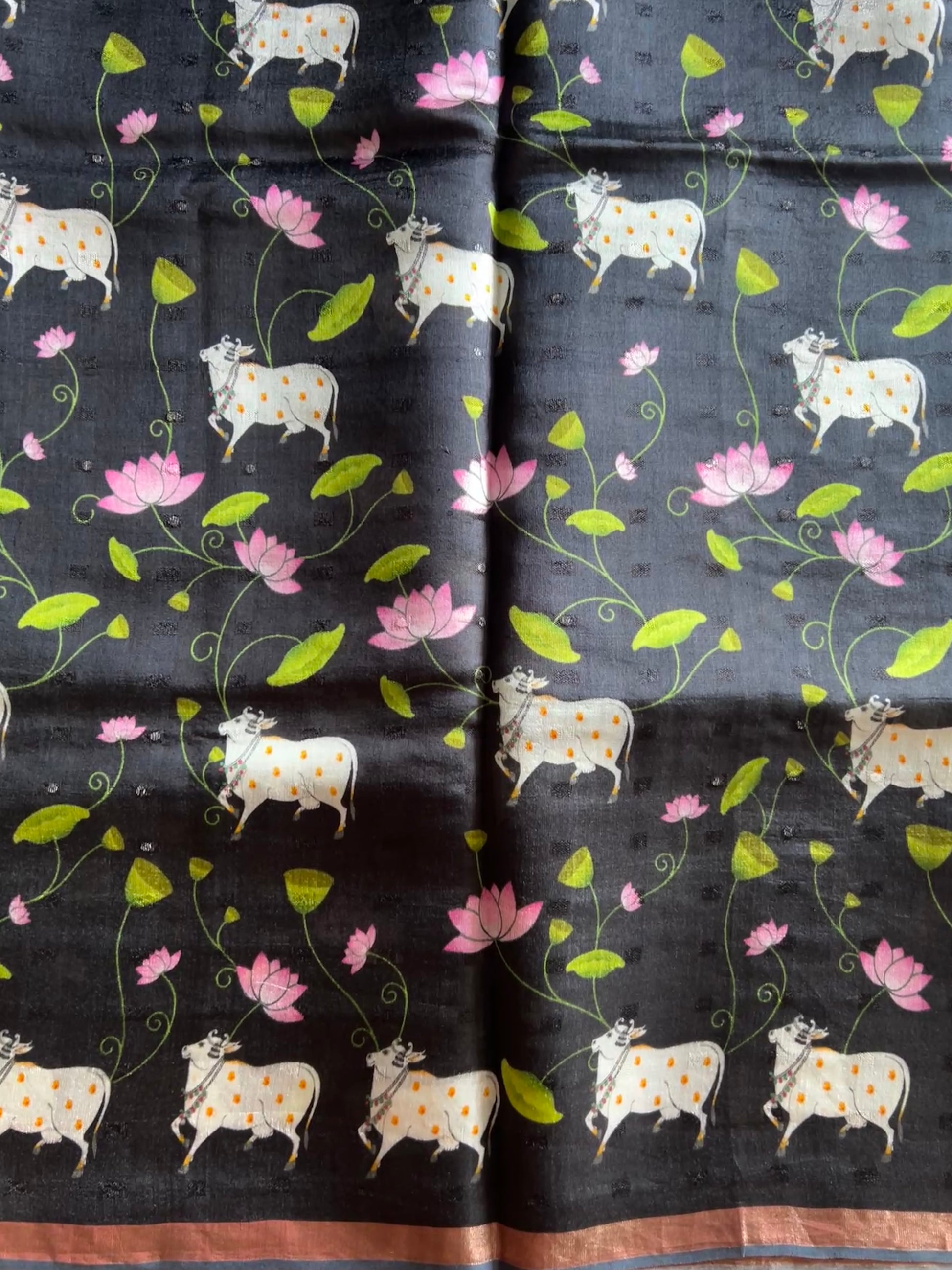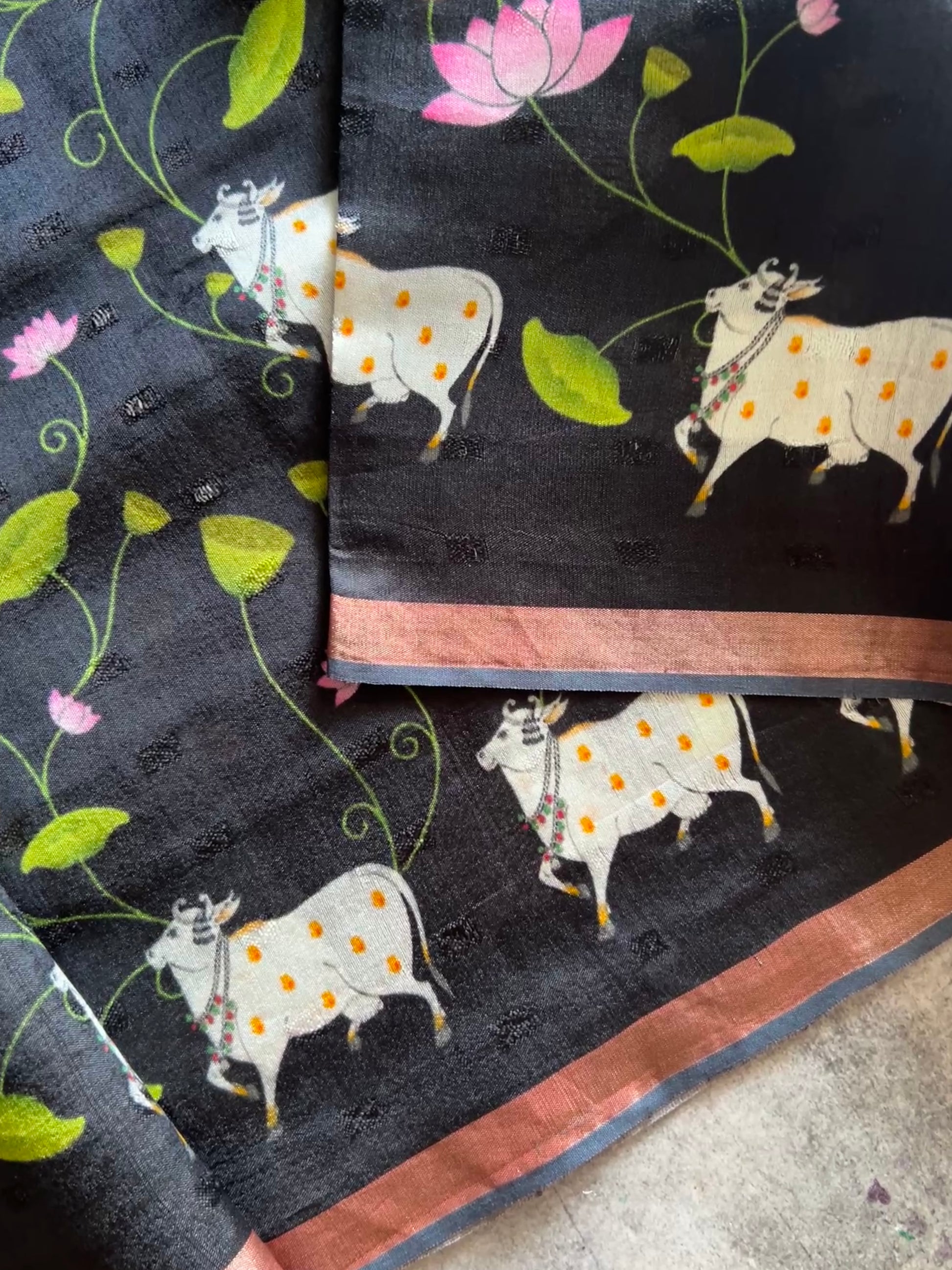 Muslin digital printed silk sarees beautifully blend tradition with modern elegance. The delicate, lightweight texture of muslin silk drapes gracefully, while the intricate digital prints add a contemporary flair with vivid colors and precise detailing. These sarees exude understated luxury — perfect for both casual sophistication and festive charm. Their timeless appeal lies in their fusion of heritage fabric and artistic innovation.