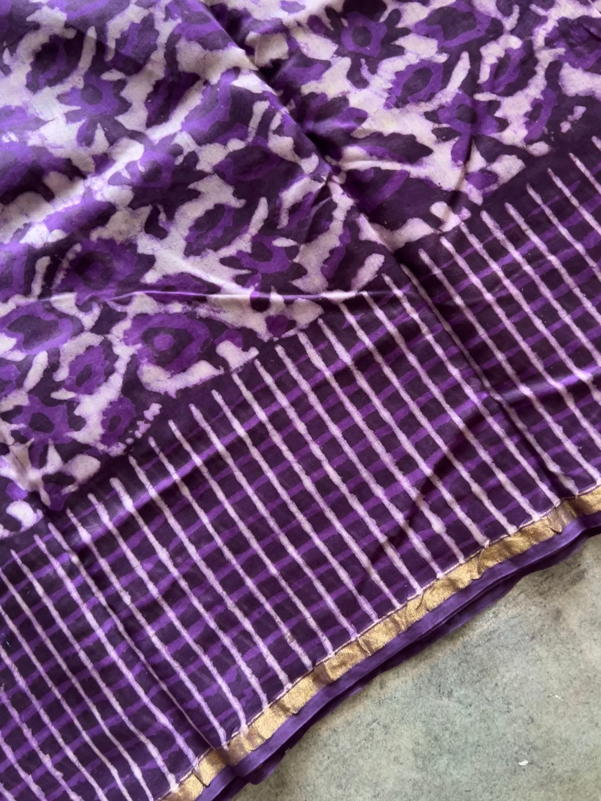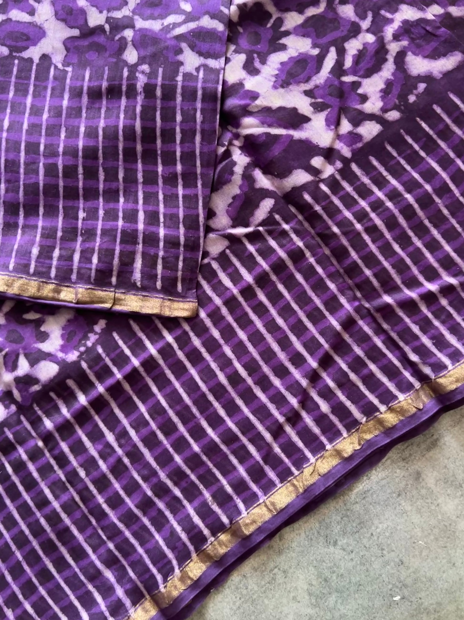 Elegant and classy hand block printed chandheri cotton silk saree. These exquisite pieces are very comfortable to wear and feel extremely soft and classy when draped.