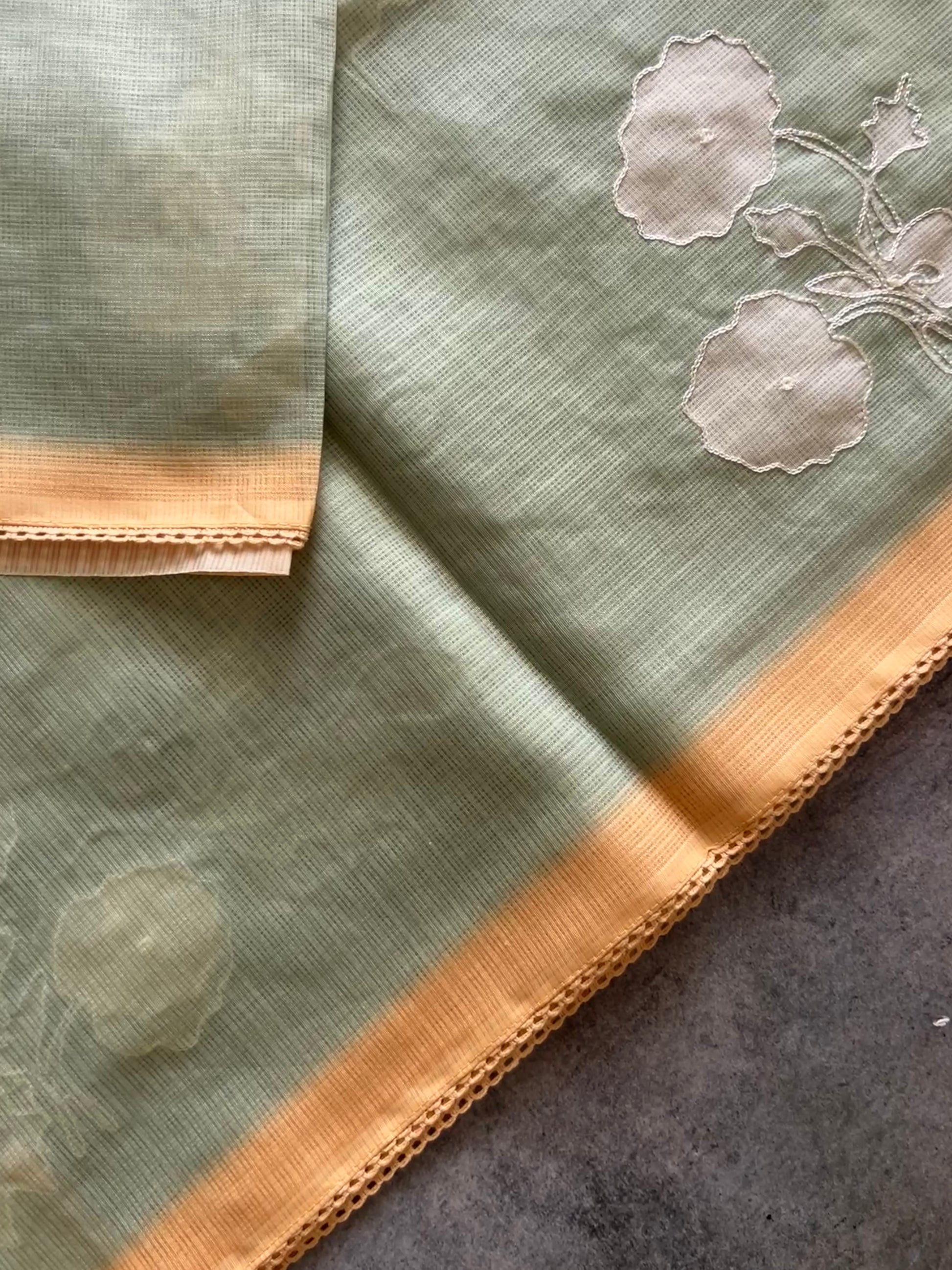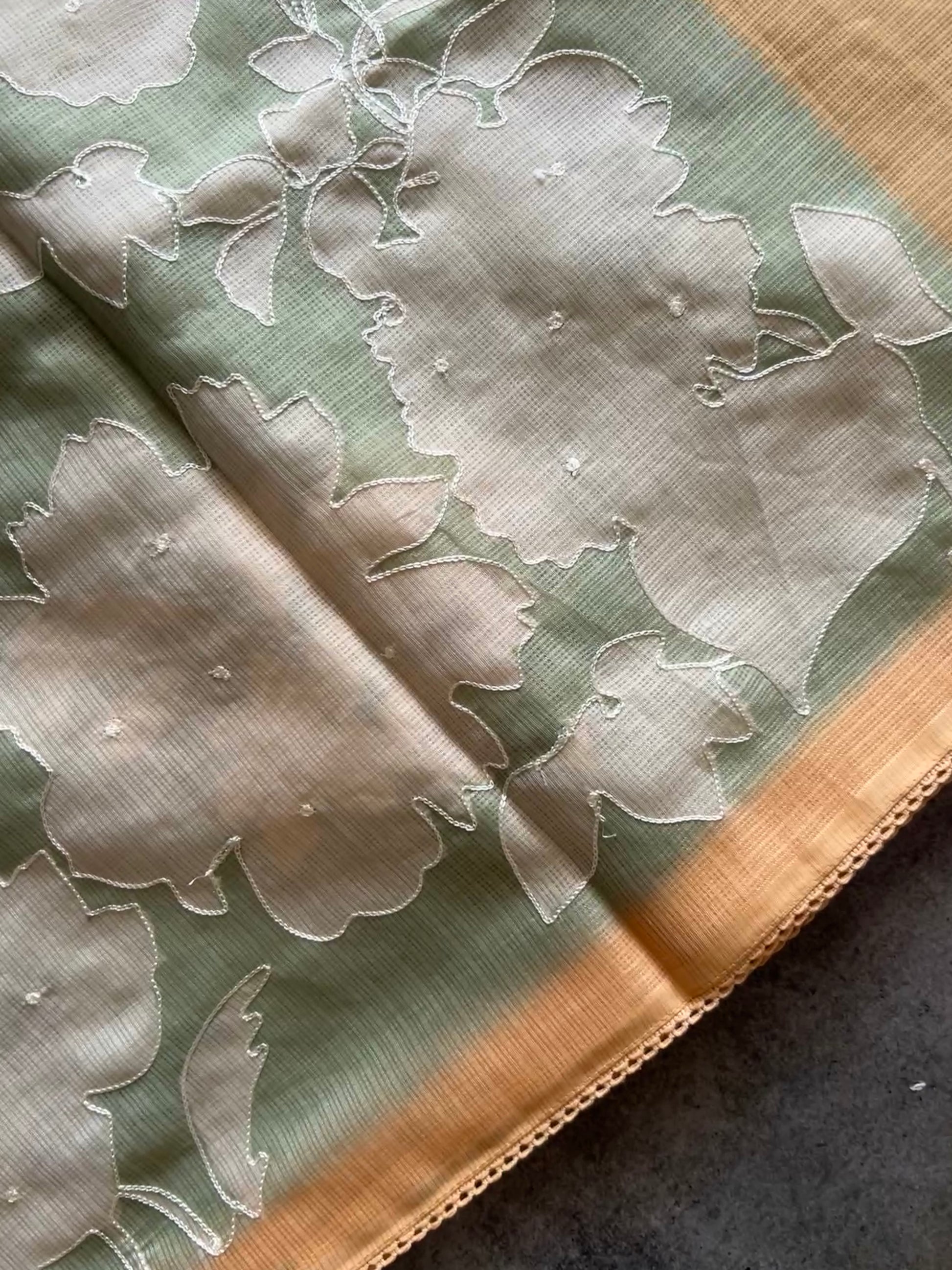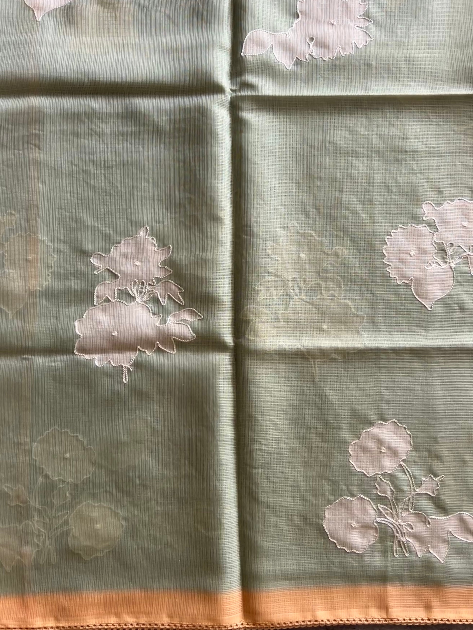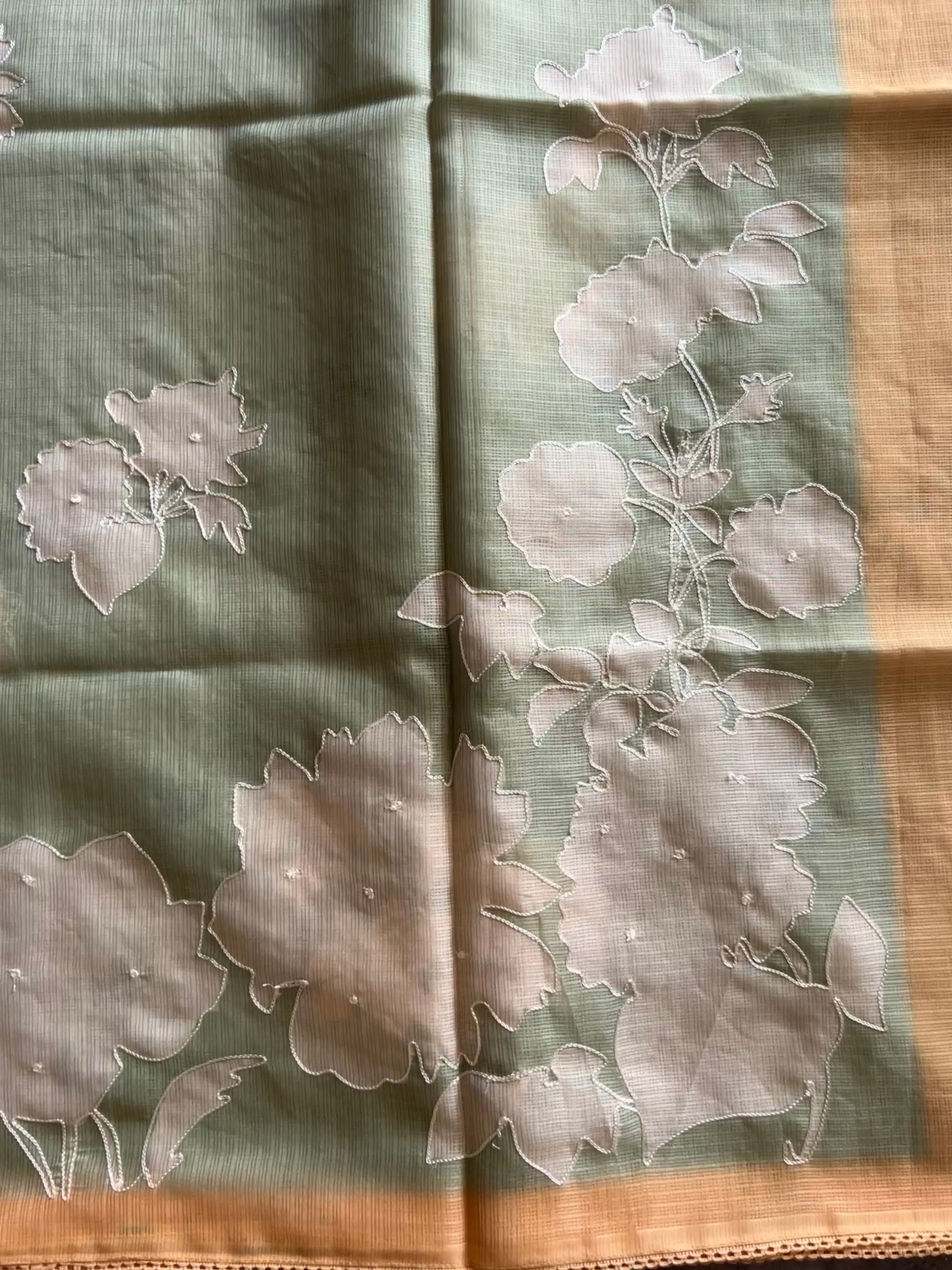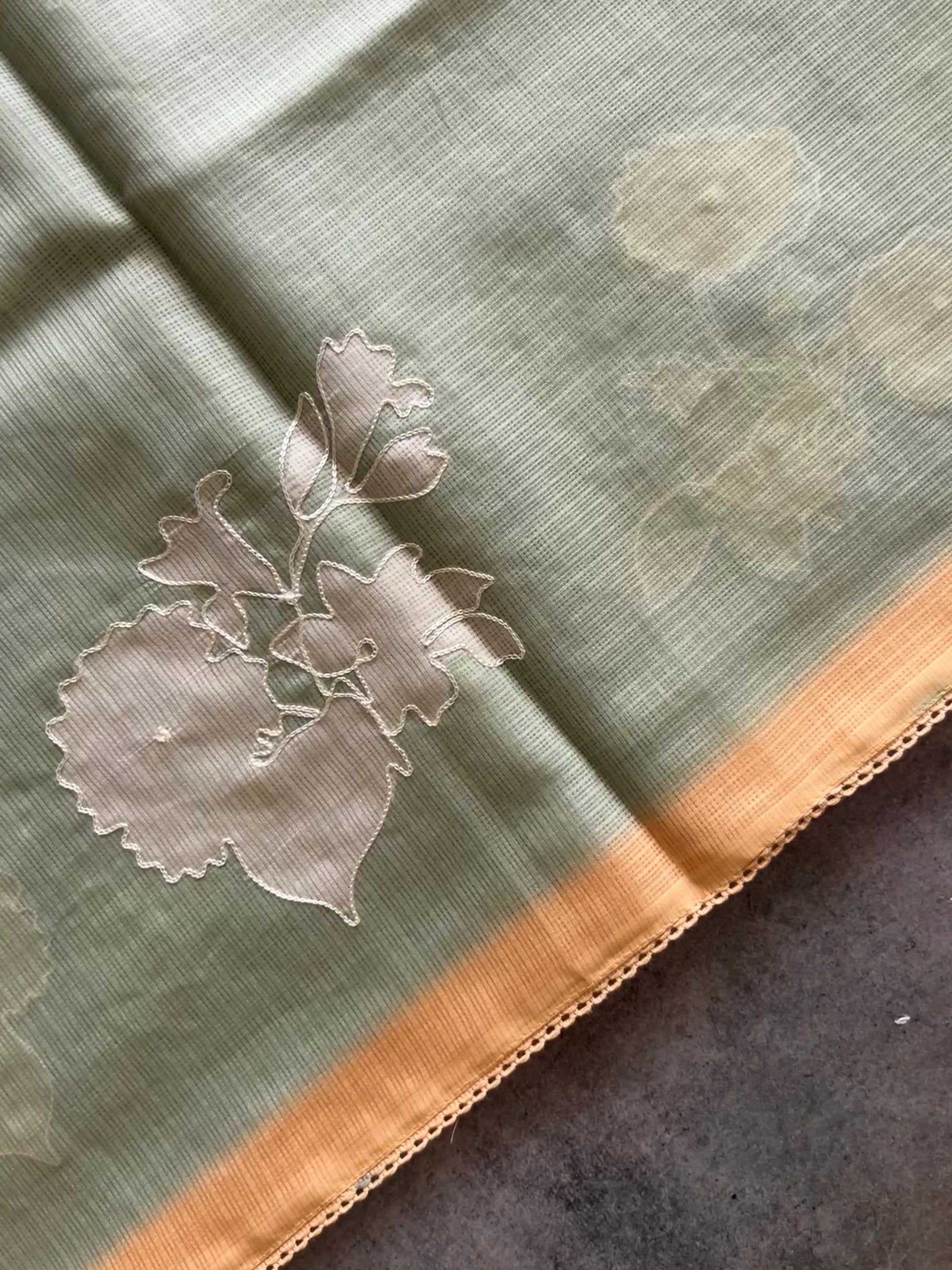 Printed Kota sarees with lace work borders exude a unique blend of simplicity and elegance. The airy, translucent texture of Kota fabric, combined with vibrant prints, creates a refreshing and graceful look. The delicate lace border adds a touch of sophistication, beautifully framing the saree with subtle charm.