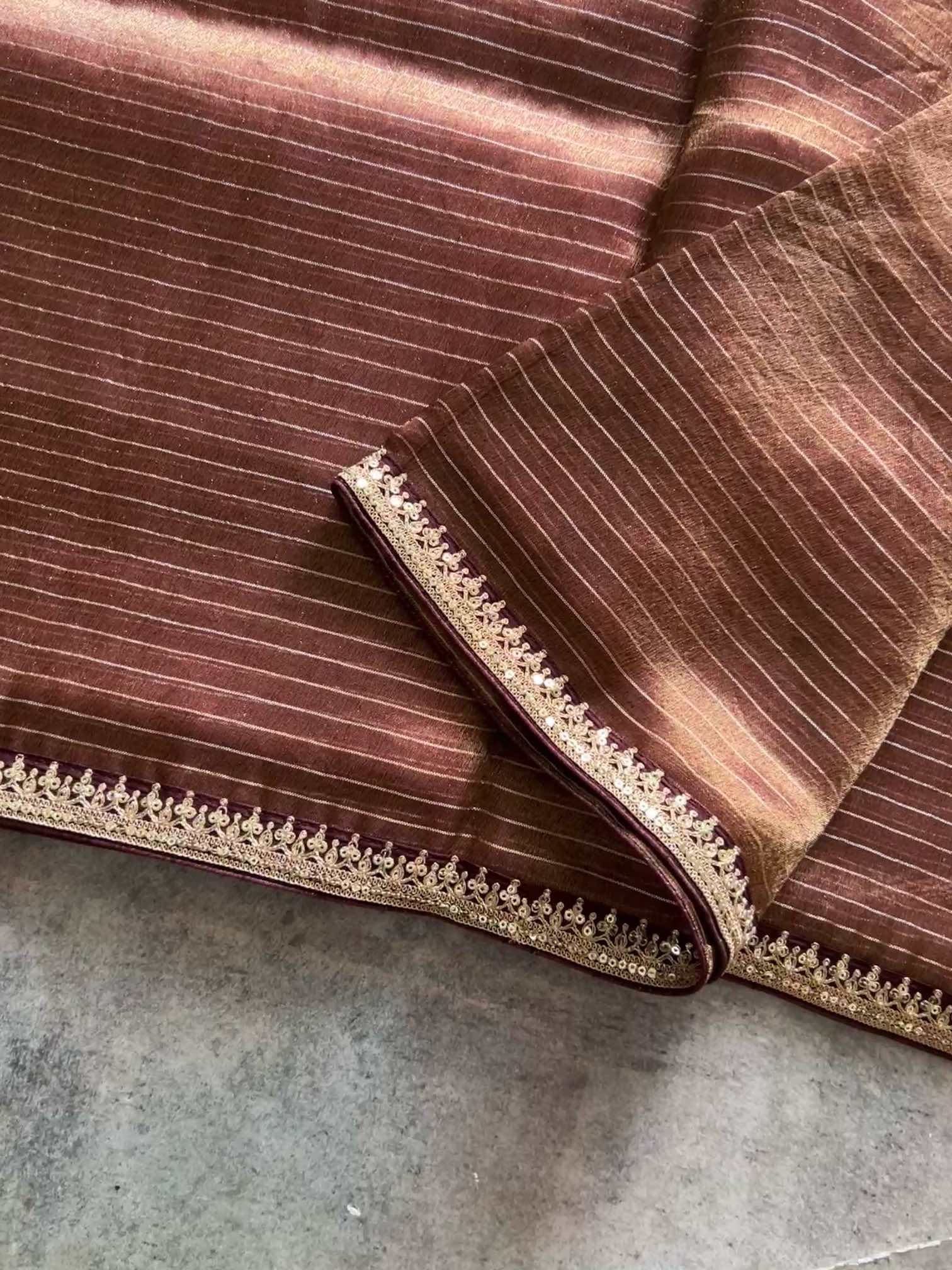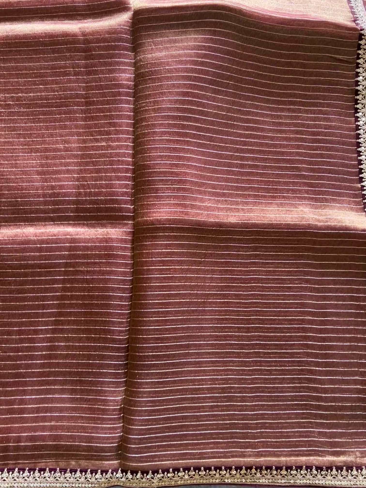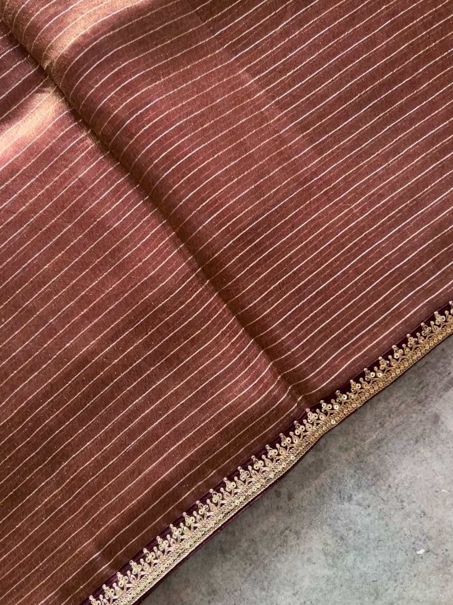 The organza silk lends a sheer, lightweight grace to the saree, giving it a delicate, ethereal charm. Complementing this is the appliqué border work, which brings artistic detail and texture, elevating the saree into a unique statement piece. Together, this combination makes the saree perfect for festive occasions, weddings, or elegant evening events—where timeless style meets artistic expression.