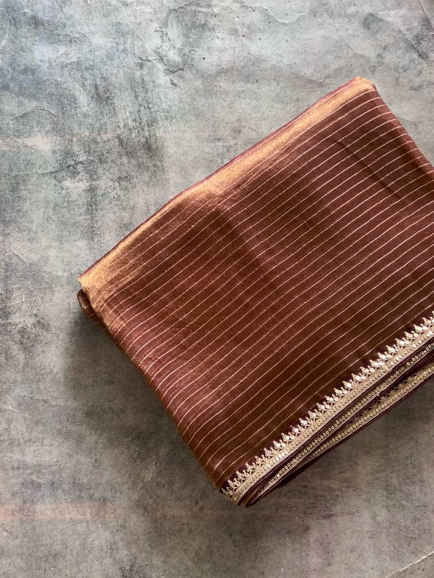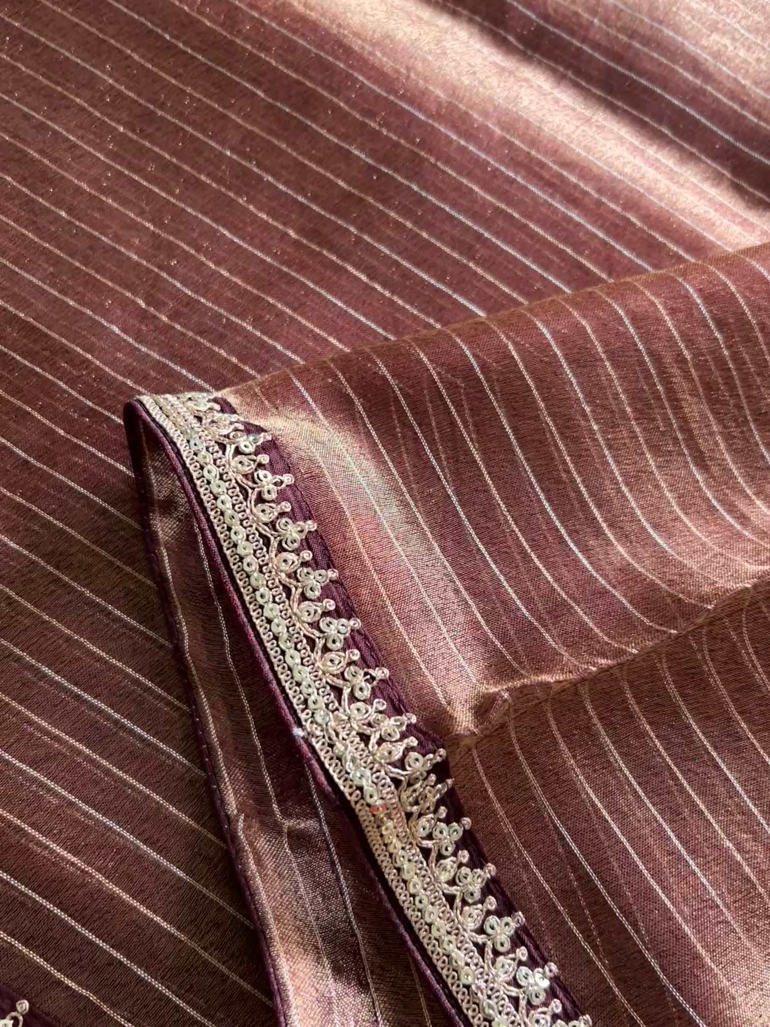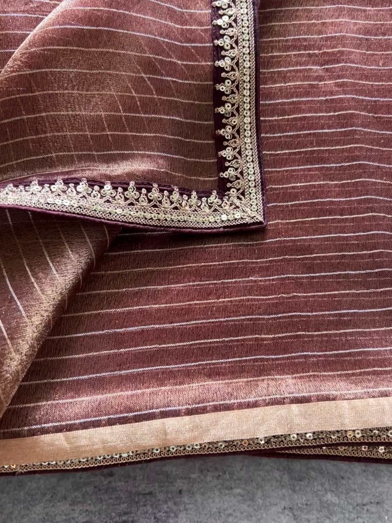 The organza silk lends a sheer, lightweight grace to the saree, giving it a delicate, ethereal charm. Complementing this is the appliqué border work, which brings artistic detail and texture, elevating the saree into a unique statement piece. Together, this combination makes the saree perfect for festive occasions, weddings, or elegant evening events—where timeless style meets artistic expression.