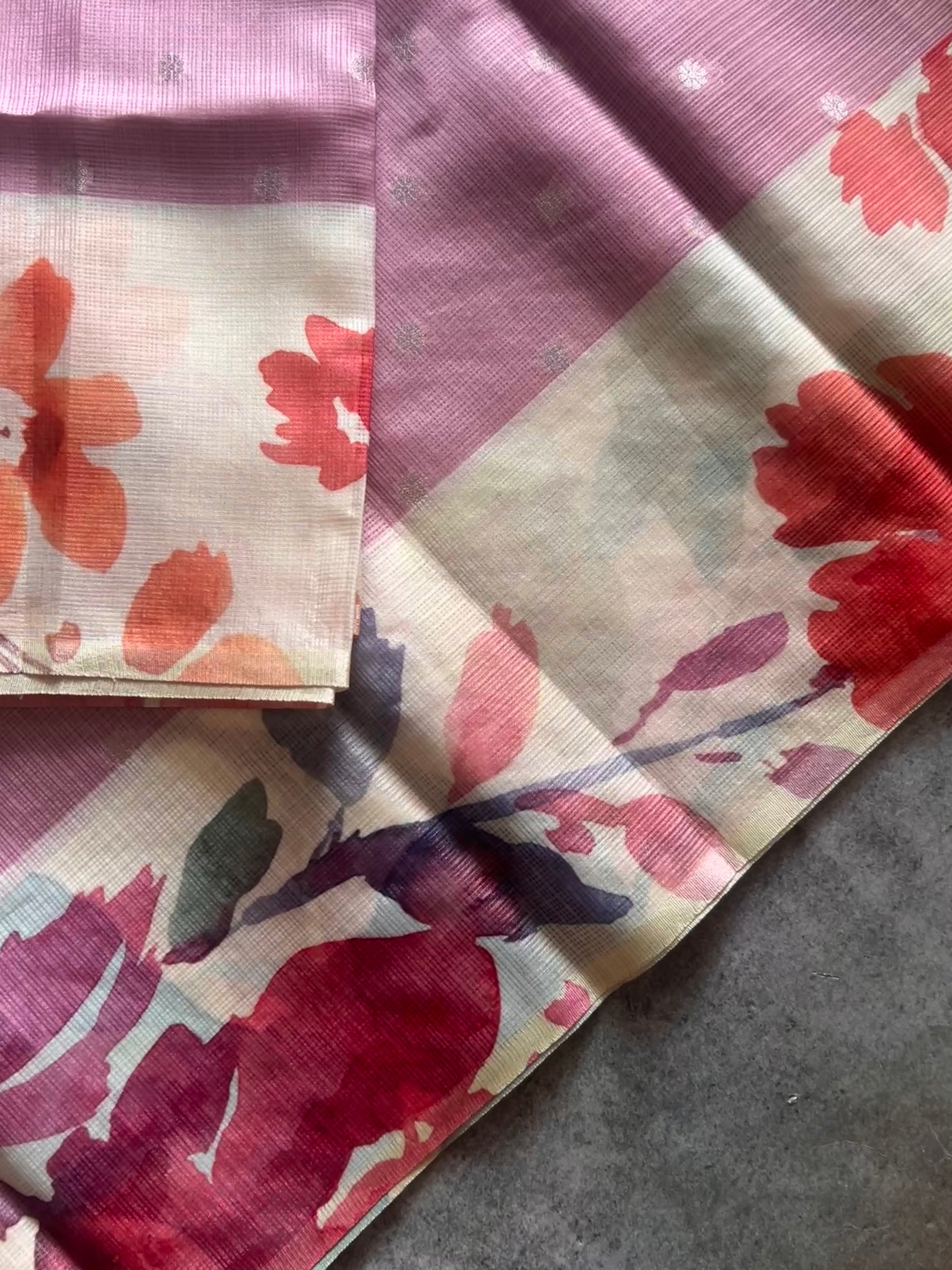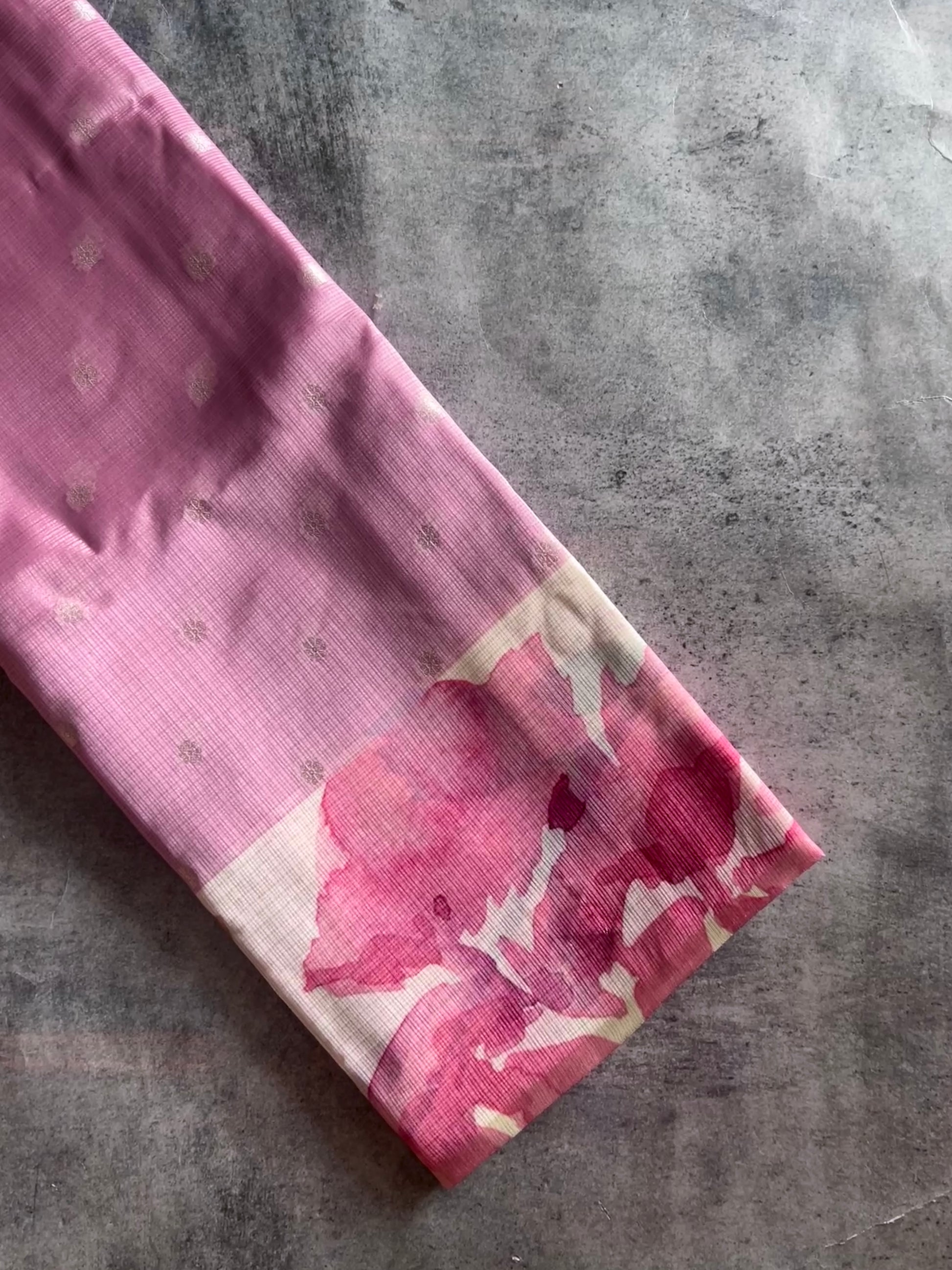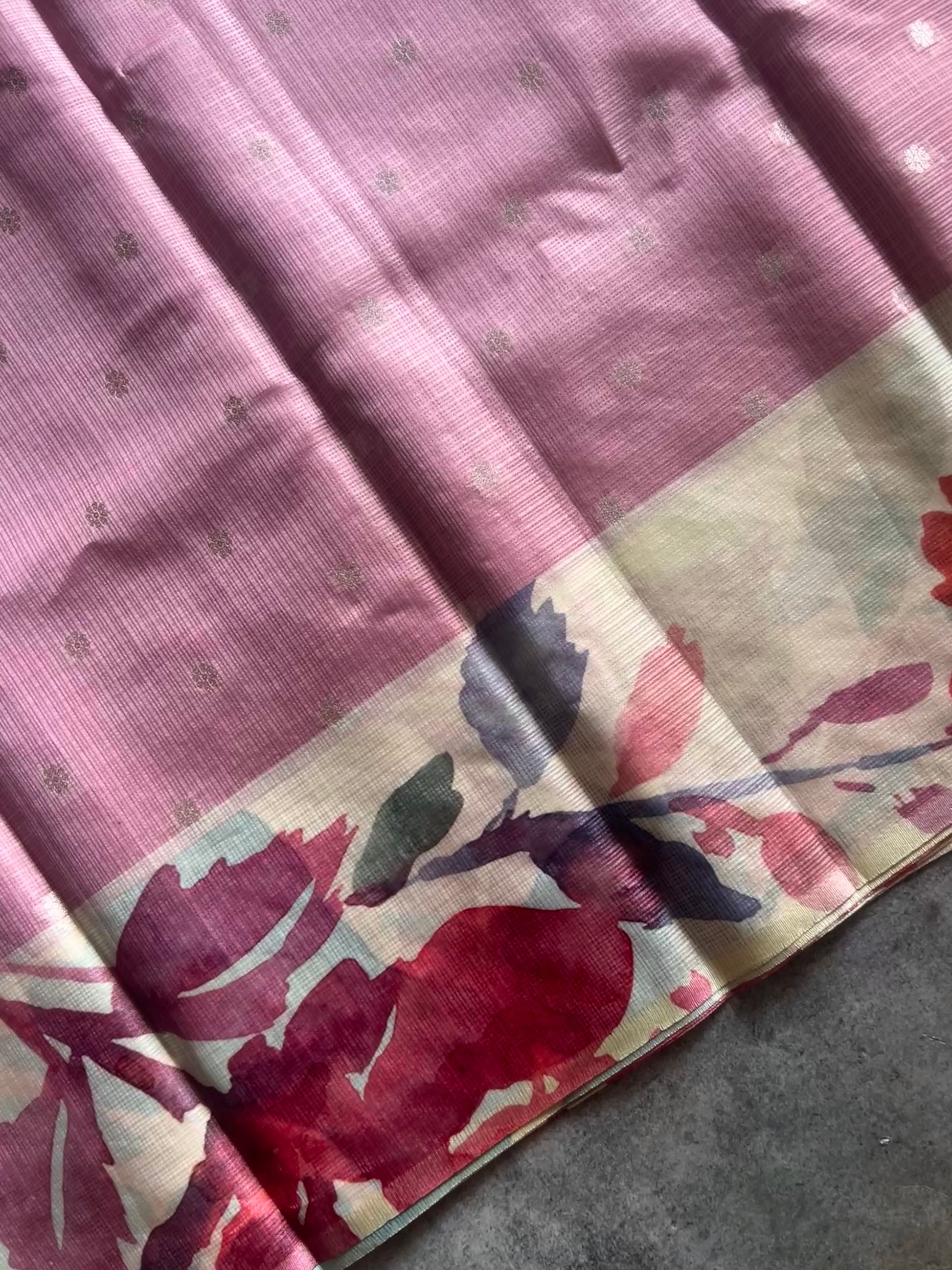 Zari Kota sarees are a timeless blend of elegance and tradition. The intricate zari work, often in gold or silver, enhances the delicate, lightweight cotton fabric of the Kota weave, creating a sophisticated texture. Printed borders introduce modern motifs and colors, providing a contemporary flair to the classic weave. This fusion results in a versatile garment suitable for various occasions, from casual gatherings to festive celebrations, embodying both timeless tradition and modern sophistication.