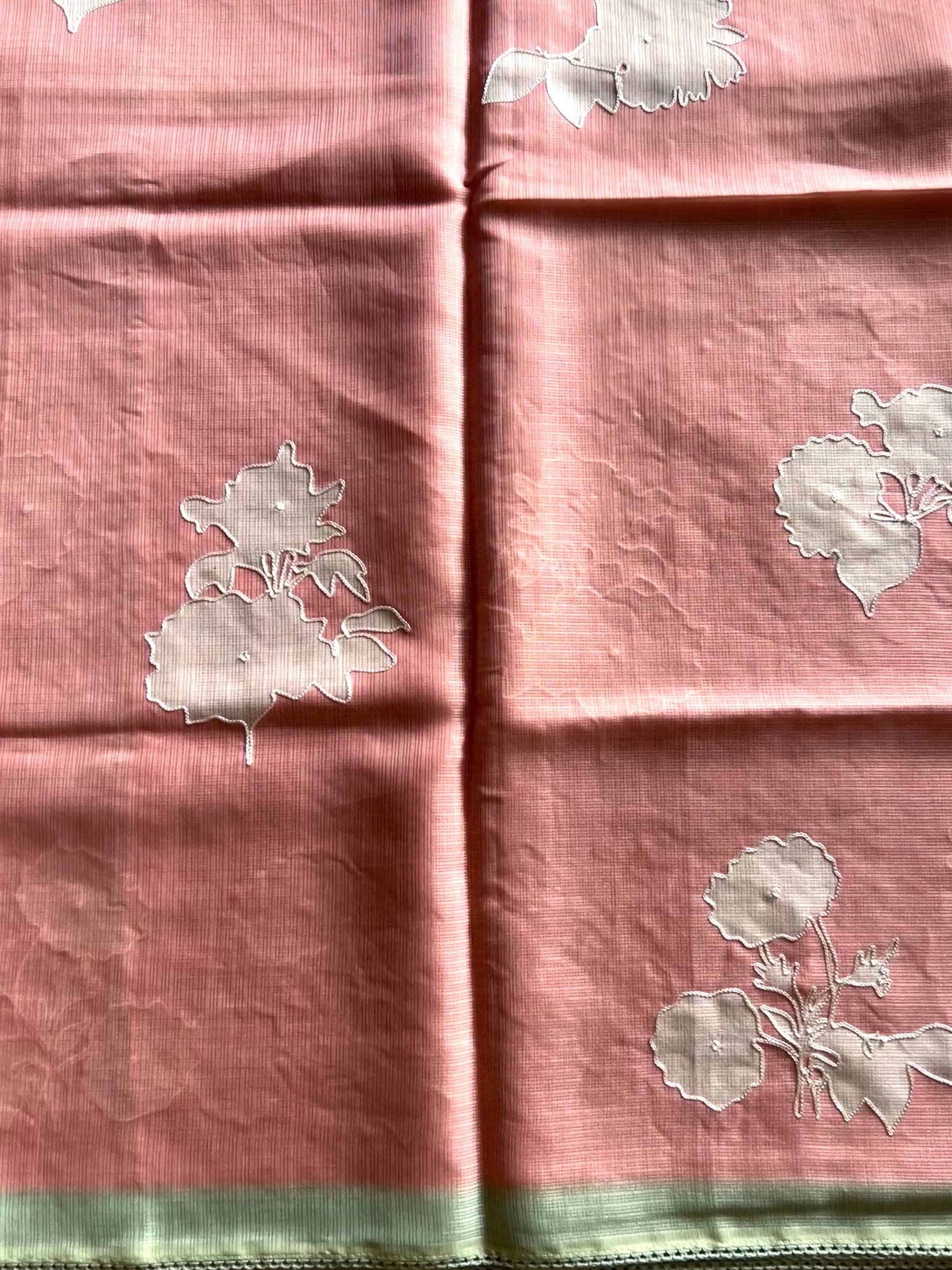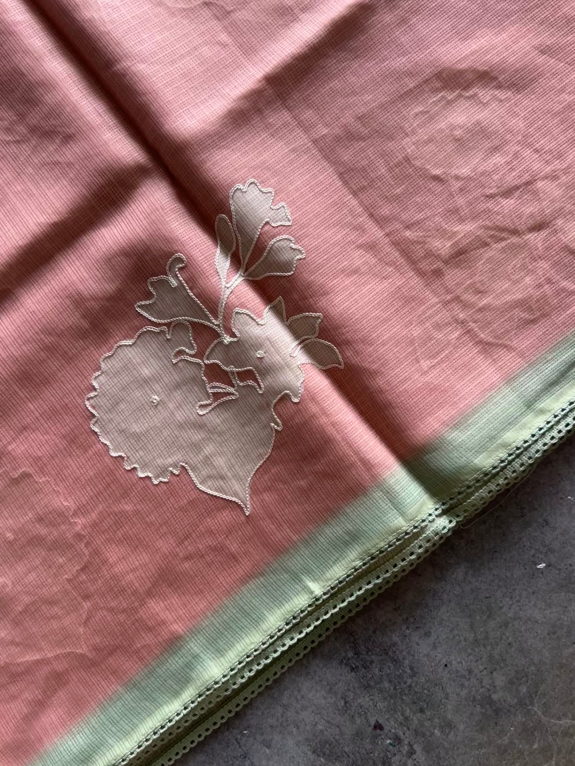 Printed Kota sarees with lace work borders exude a unique blend of simplicity and elegance. The airy, translucent texture of Kota fabric, combined with vibrant prints, creates a refreshing and graceful look. The delicate lace border adds a touch of sophistication, beautifully framing the saree with subtle charm.