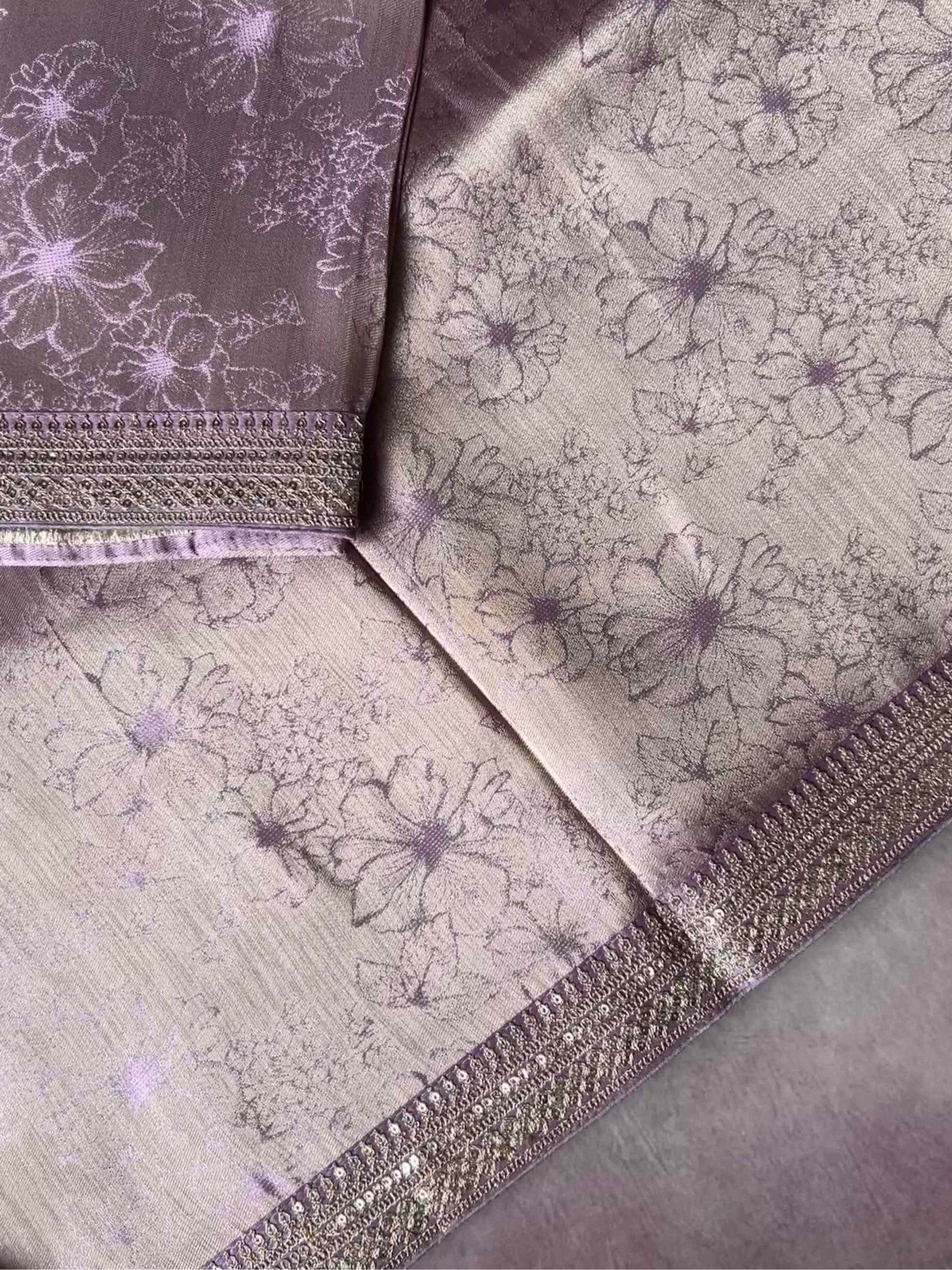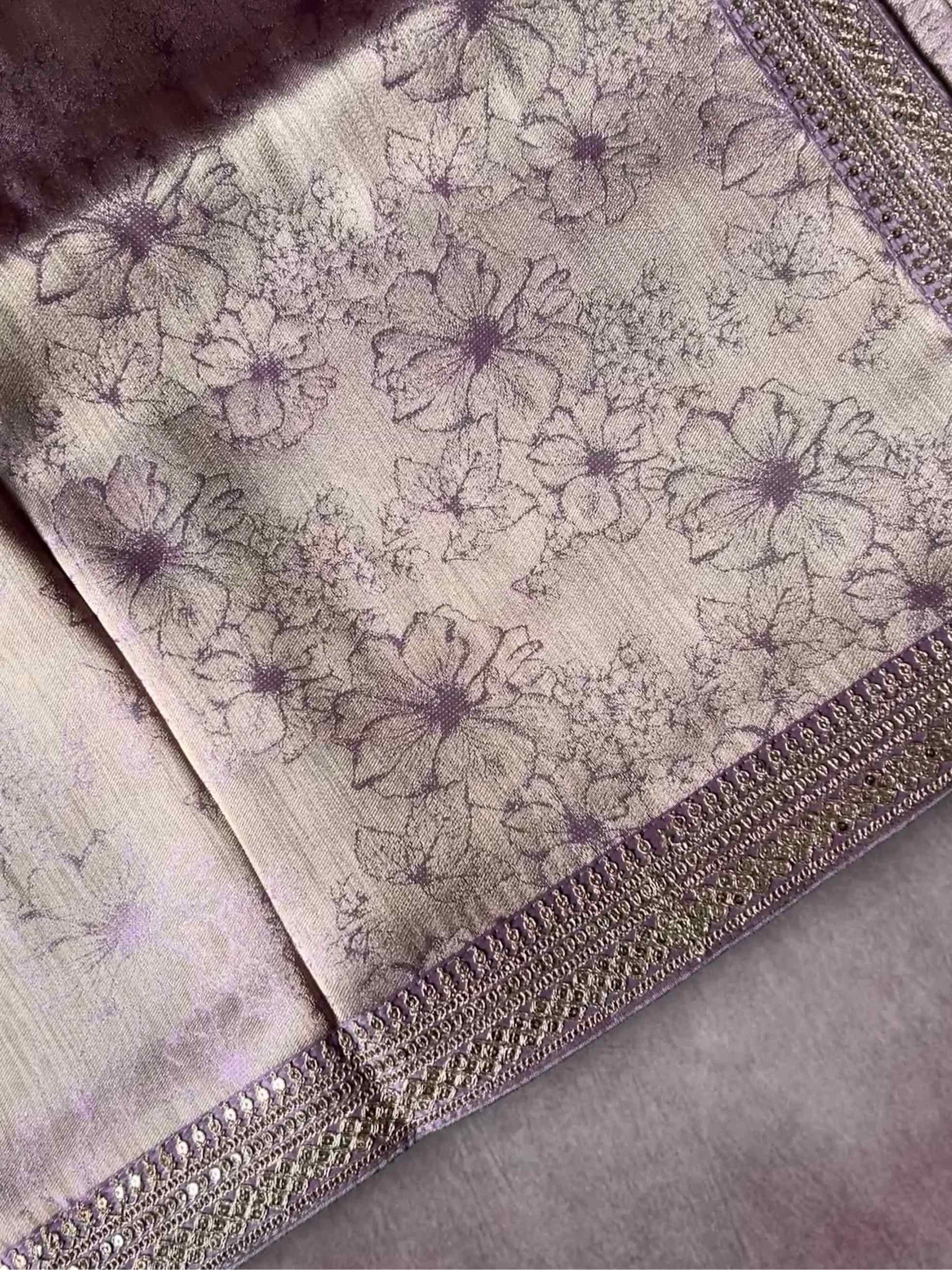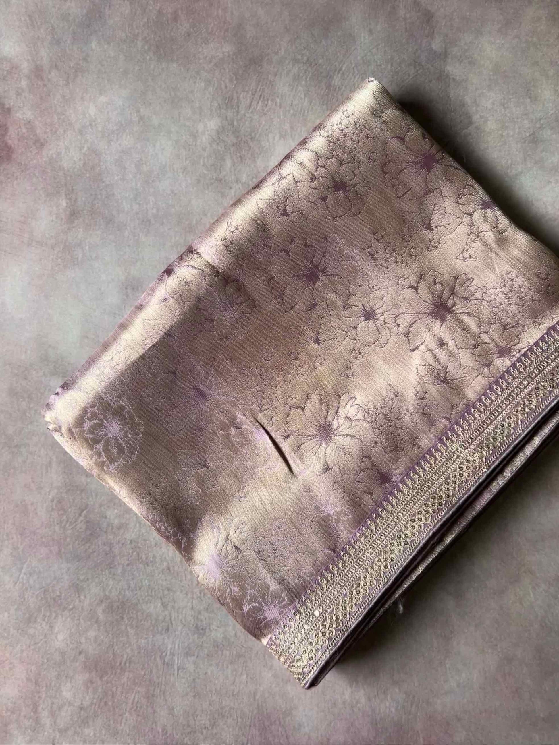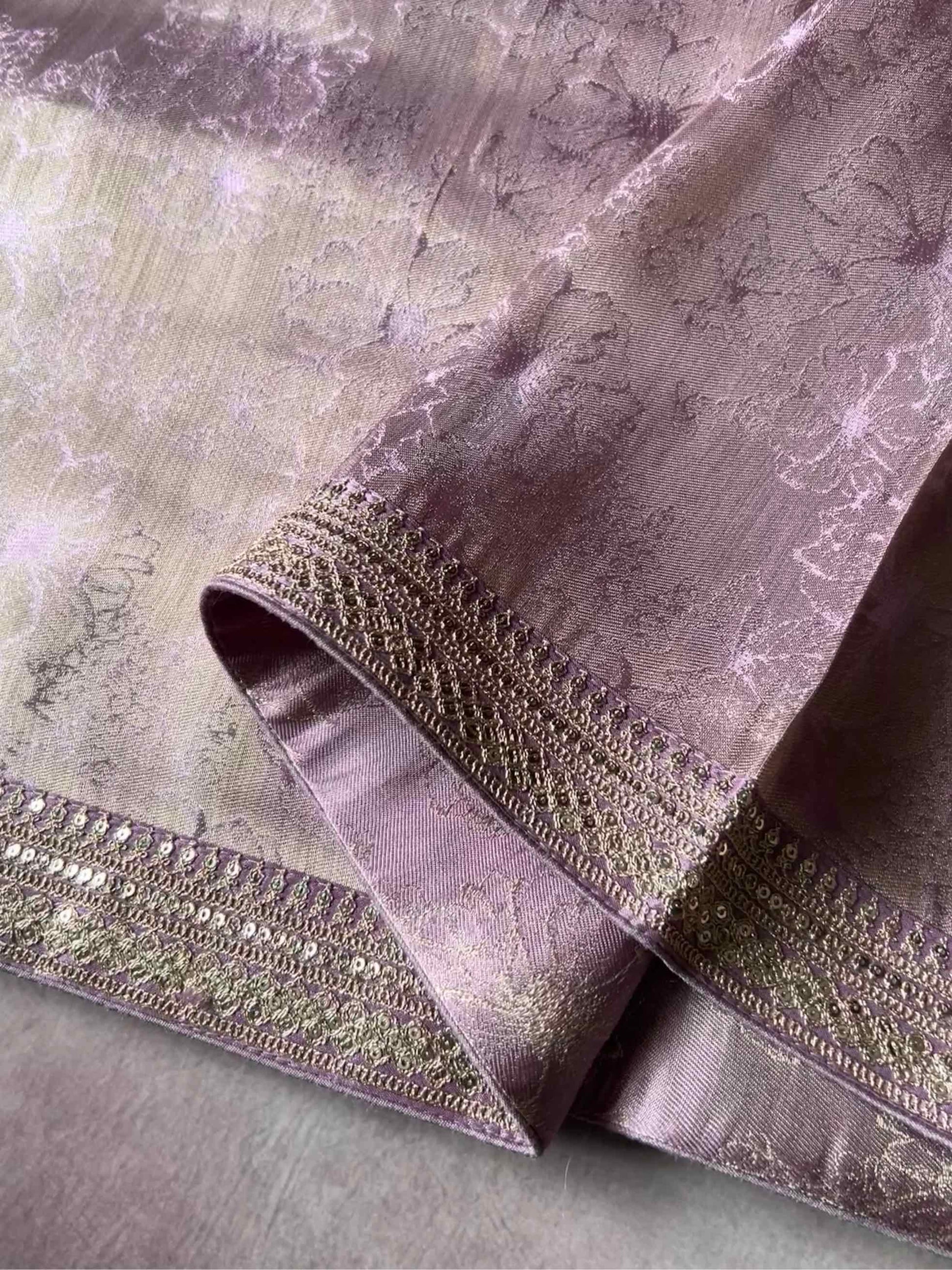 The Banaras brocade saree is a timeless symbol of Indian elegance, known for its luxurious silk fabric and intricate zari work. When adorned with embroidery appliqué work along the border, it becomes a true masterpiece. The rich brocade weaves — often featuring floral and Mughal motifs — are beautifully complemented by the detailed appliqué, adding texture, contrast, and an artisanal charm. This fusion of tradition and craftsmanship creates a saree that is both regal and expressive — perfect for grand occasions where grace meets heritage.