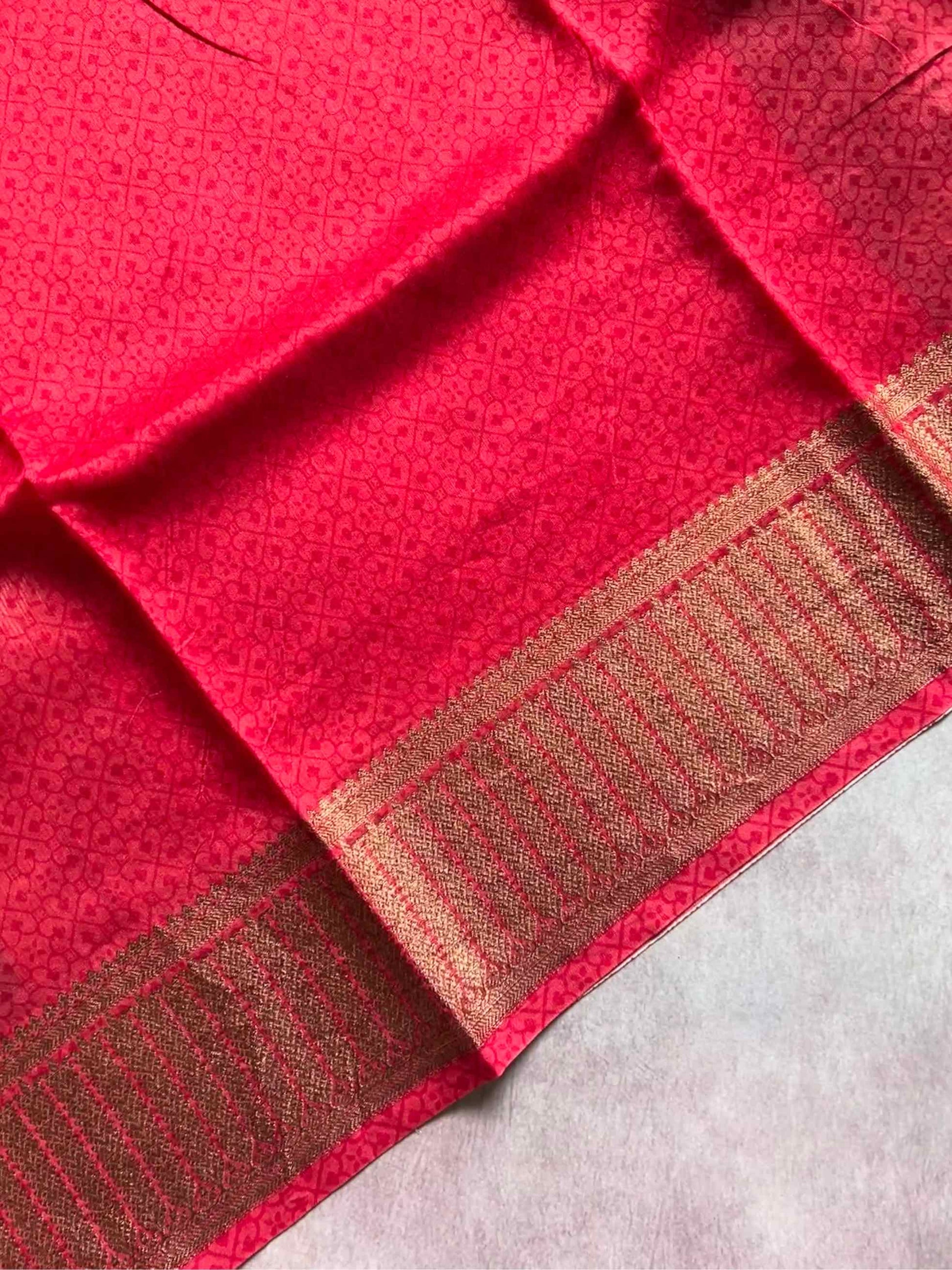 Chanderi butter silk epitomizes elegance and sophistication with its sheer, lightweight texture and natural sheen. This luxurious fabric seamlessly blends traditional charm with contemporary style, making it a timeless choice for any wardrobe. Its breathability and comfort further enhance its appeal, making Chanderi butter silk not just a fabric, but a work of art.